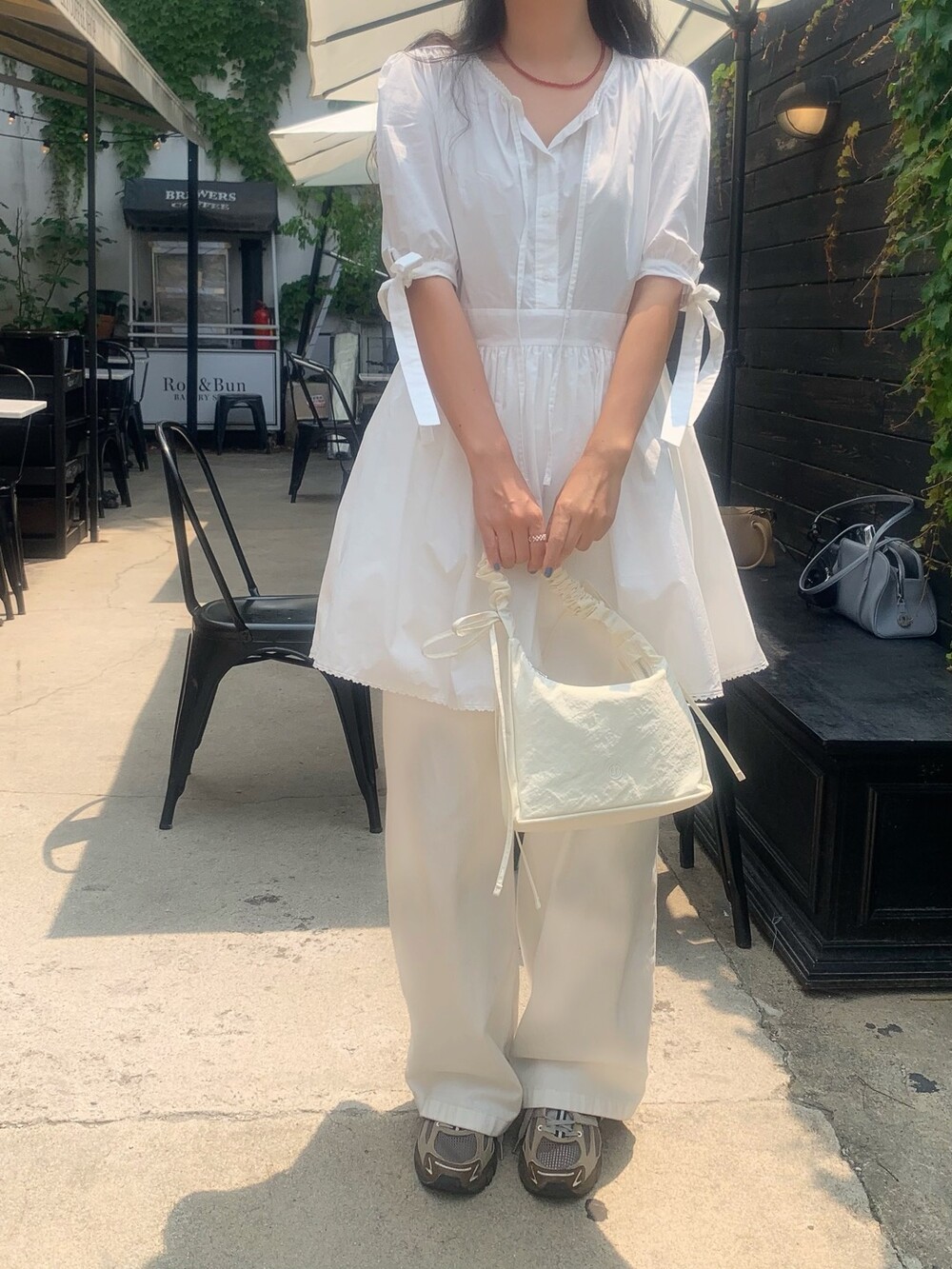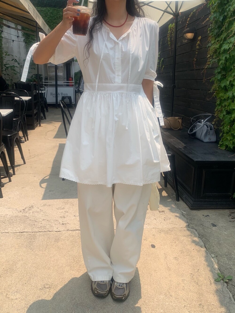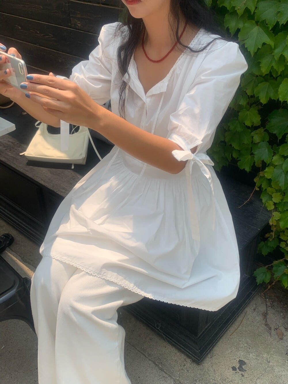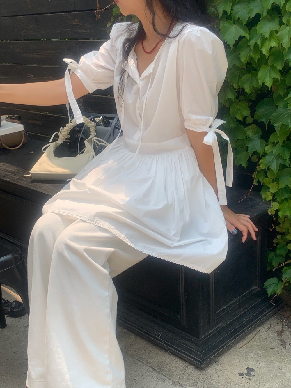 소매라인에 리본 디테일까지 더해지니 러블리한 무드가 너무 예쁘지요?