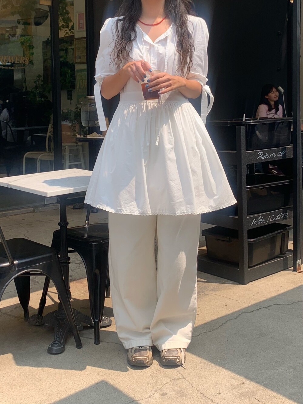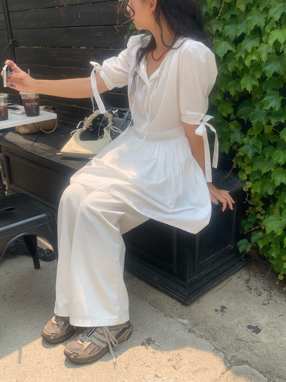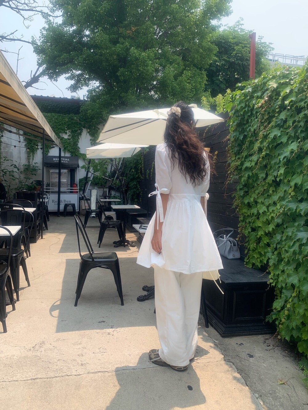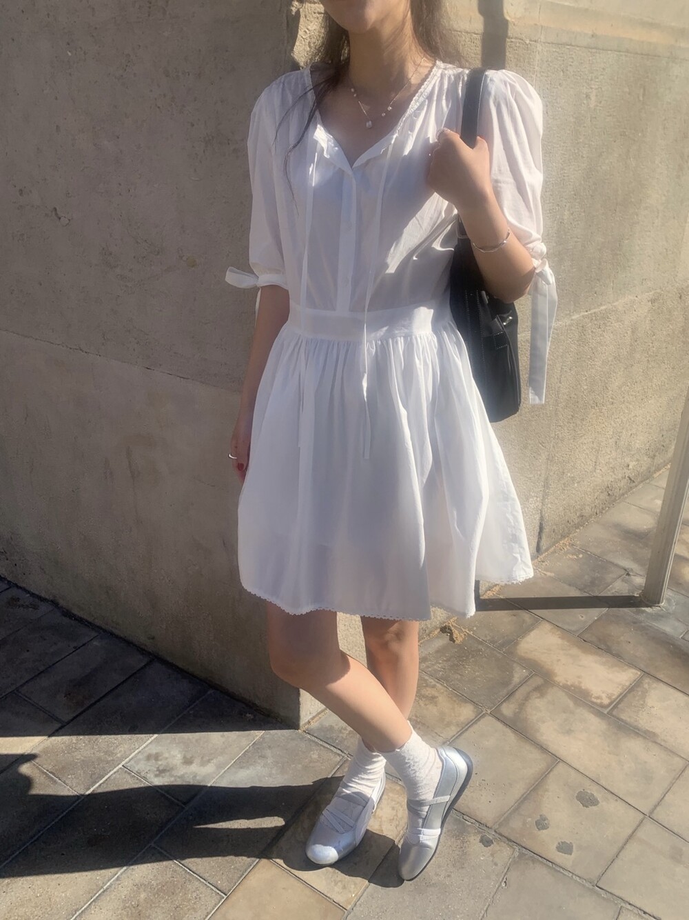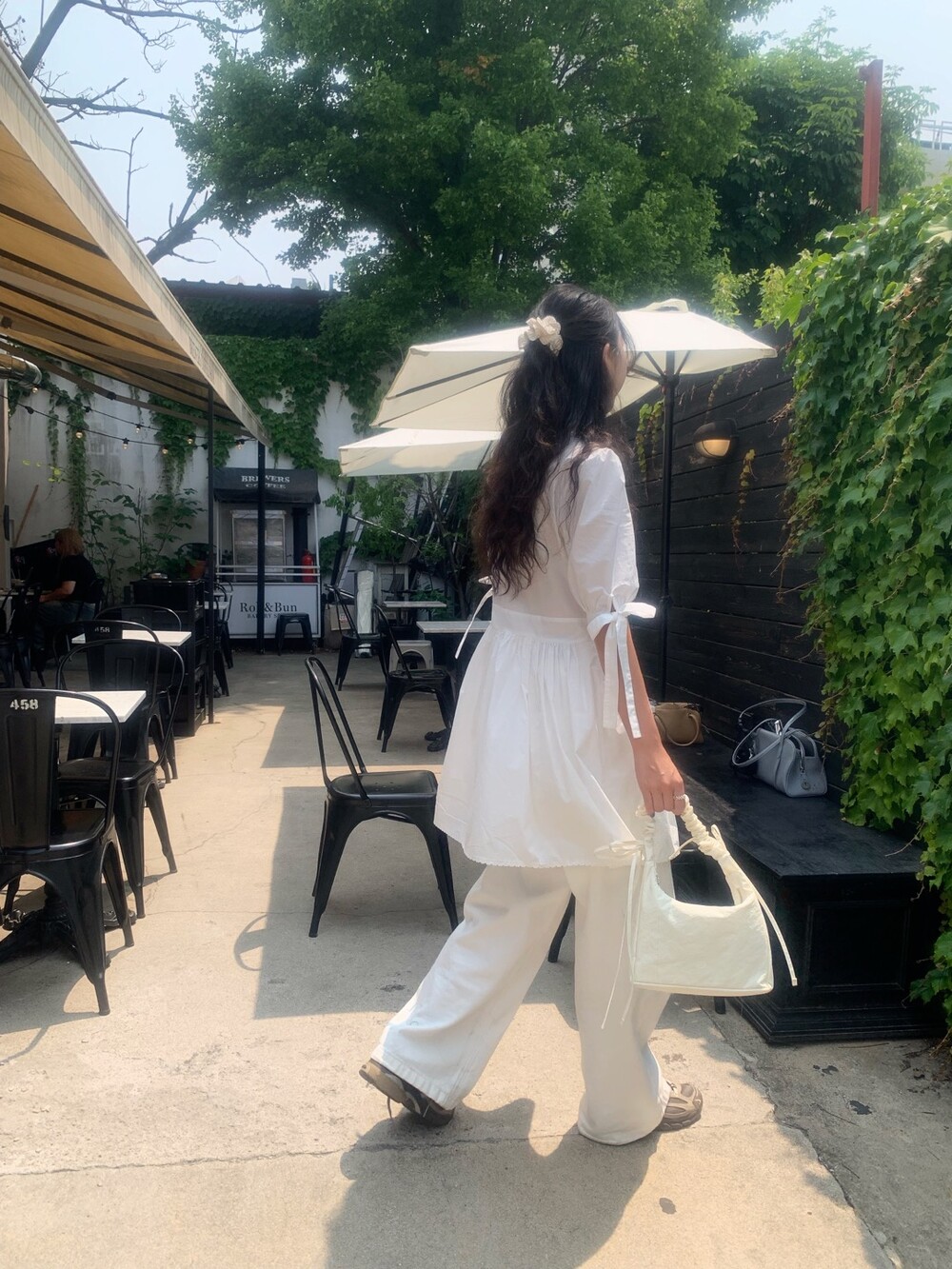 소매라인에 리본 디테일까지 더해지니 러블리한 무드가 너무 예쁘지요?