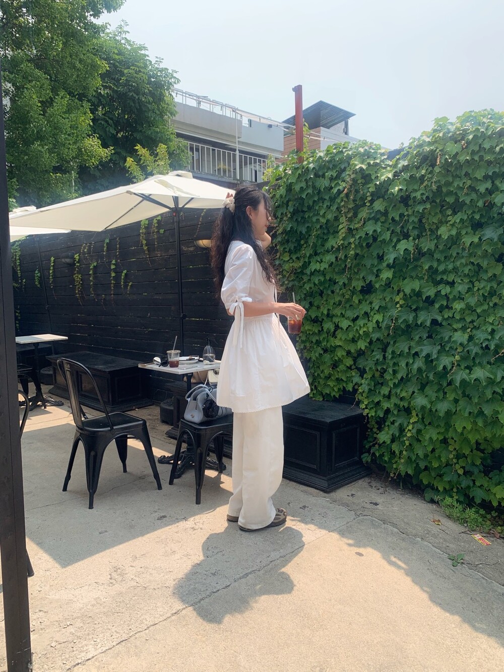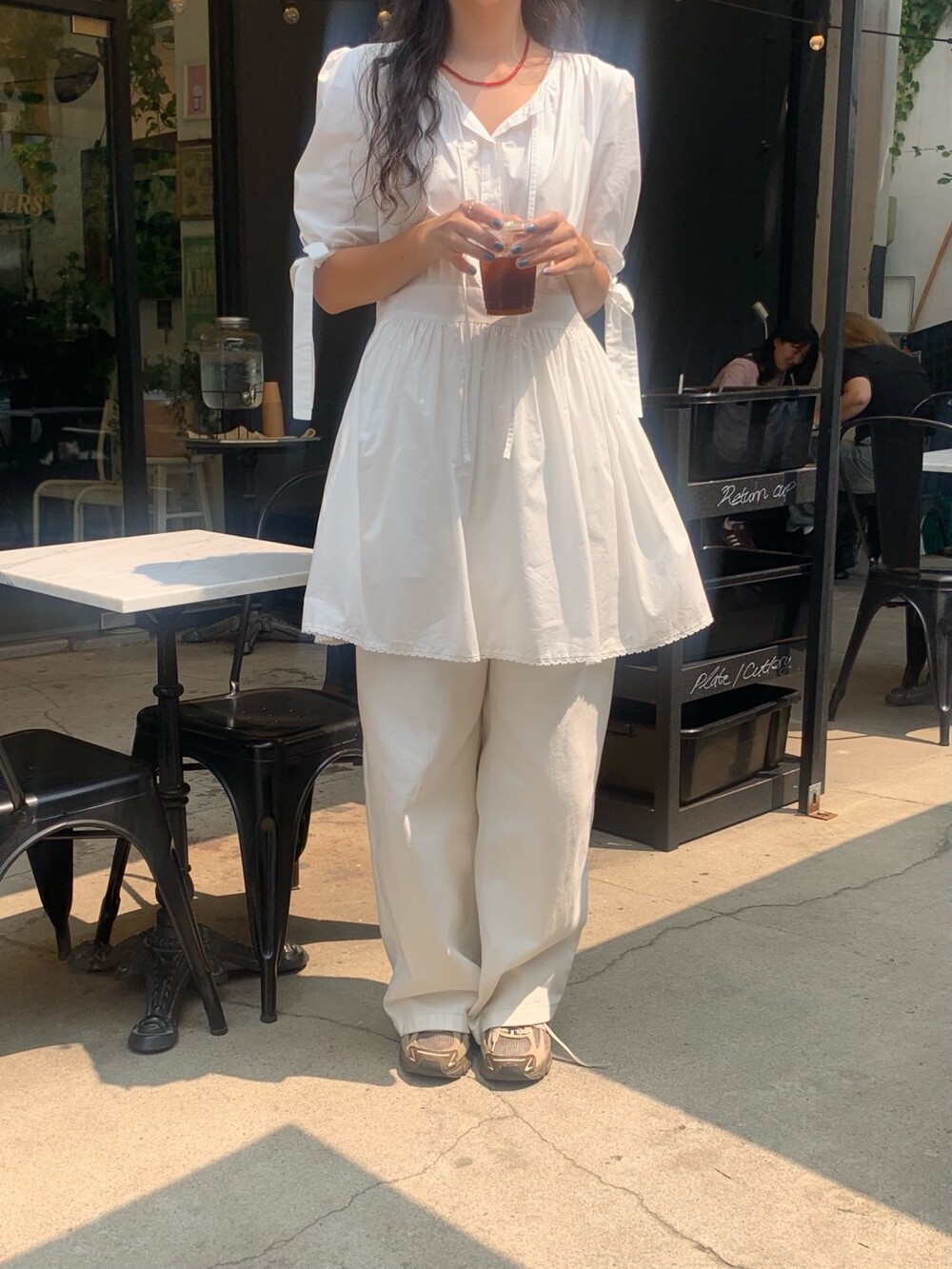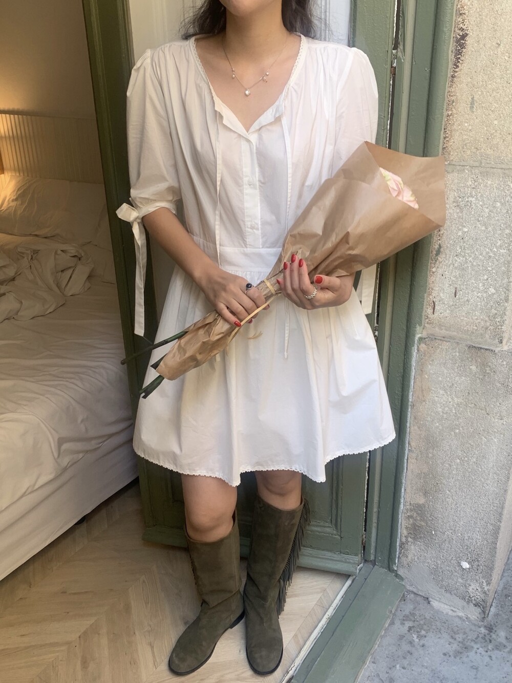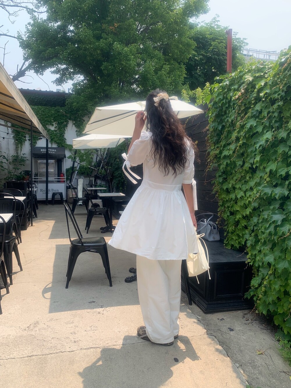 소매라인에 리본 디테일까지 더해지니 러블리한 무드가 너무 예쁘지요?