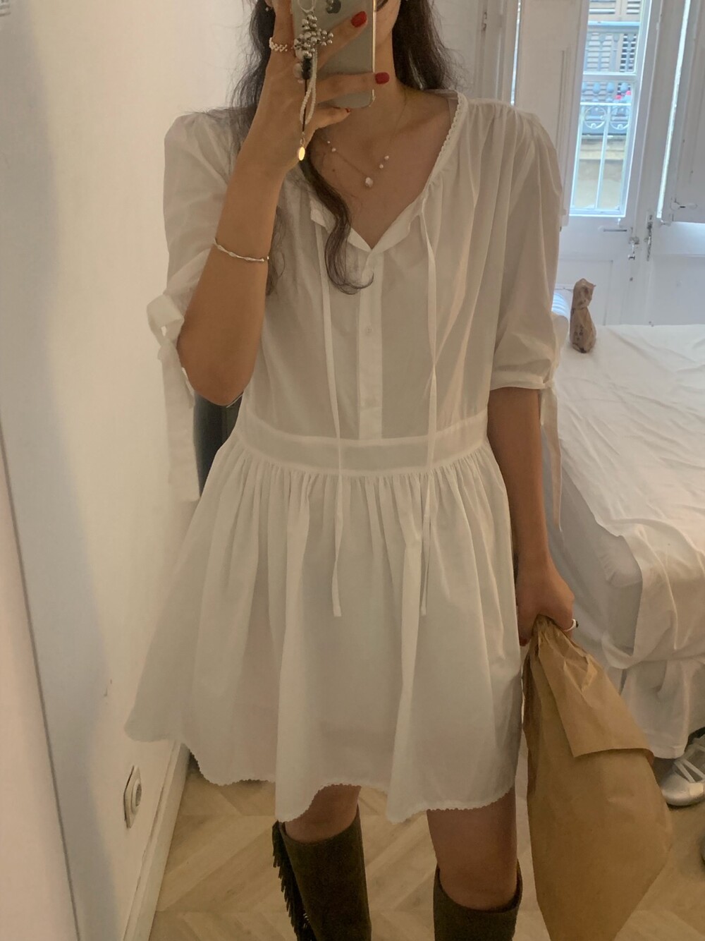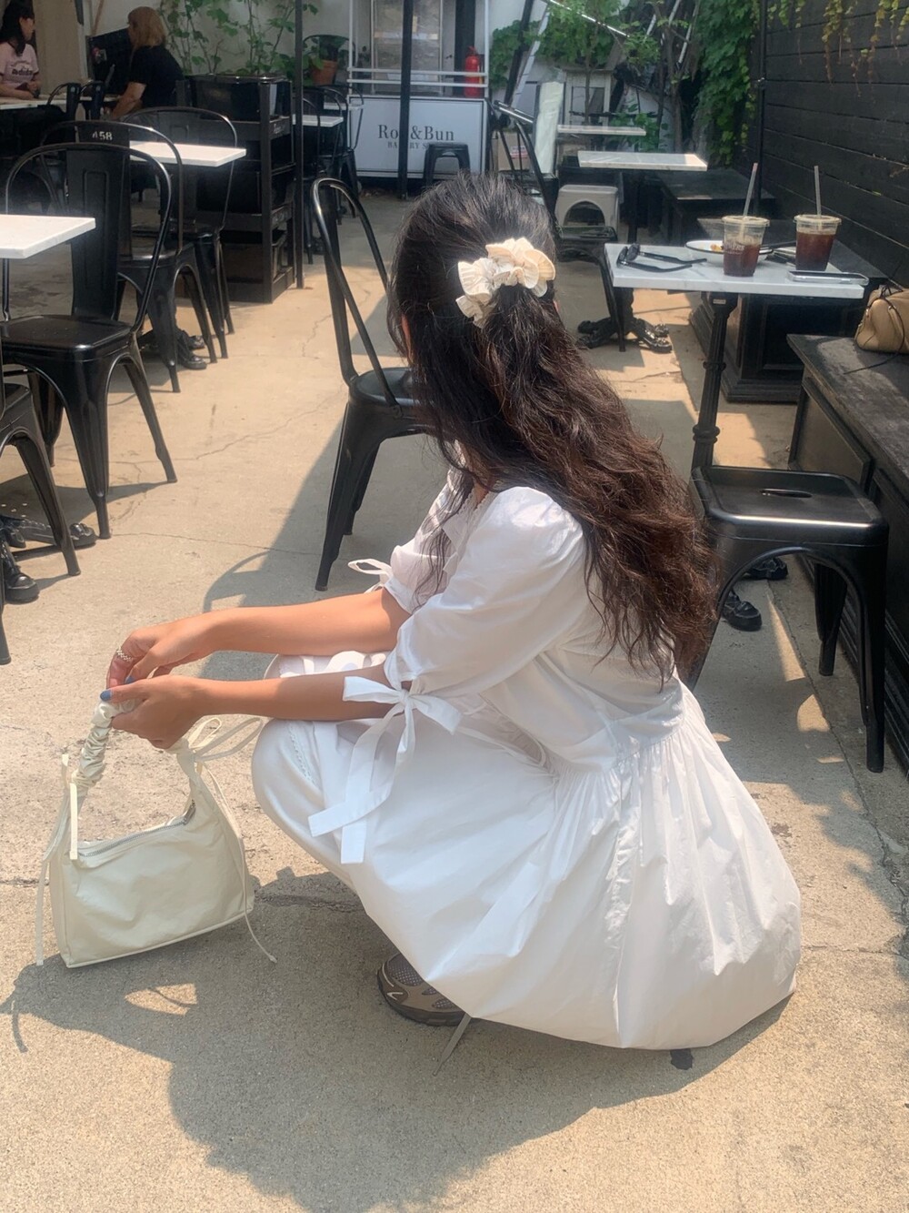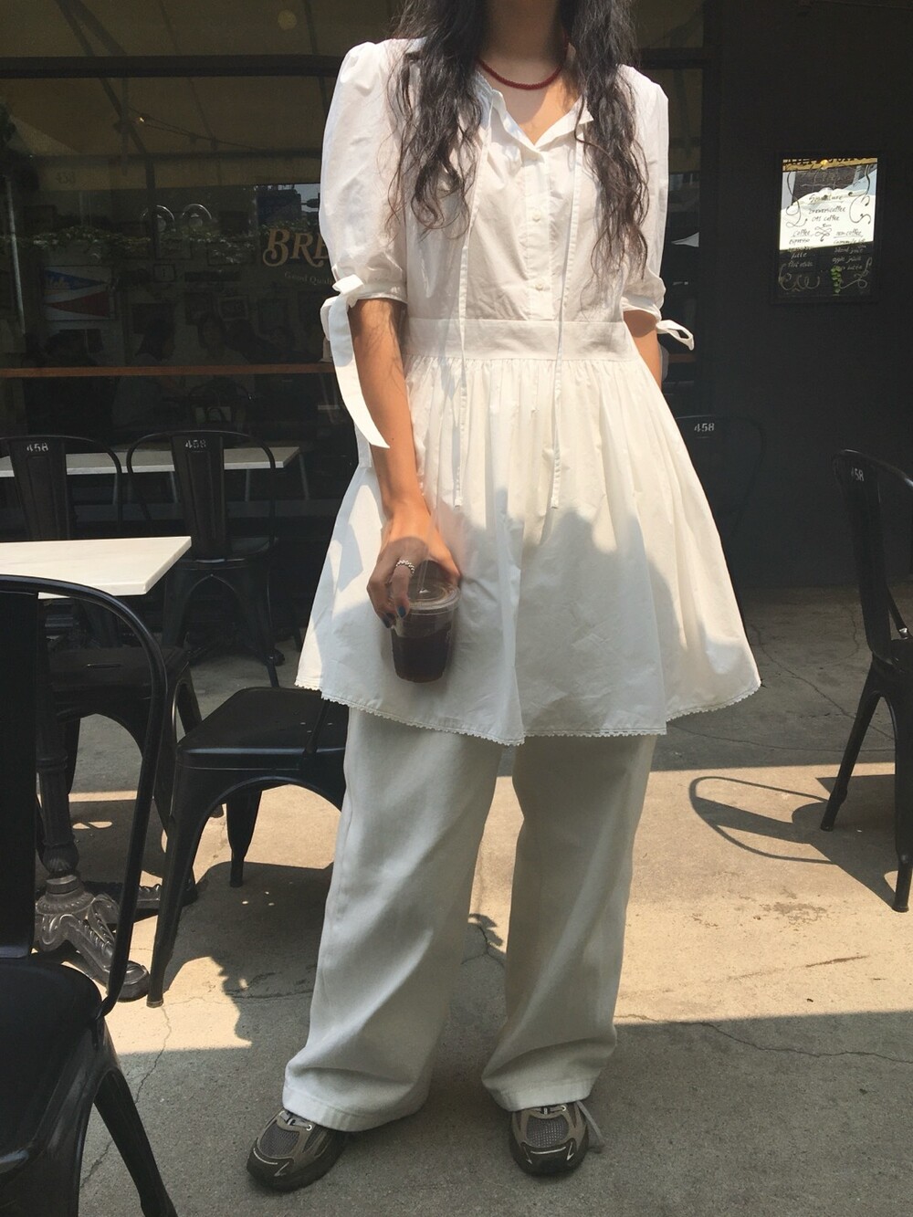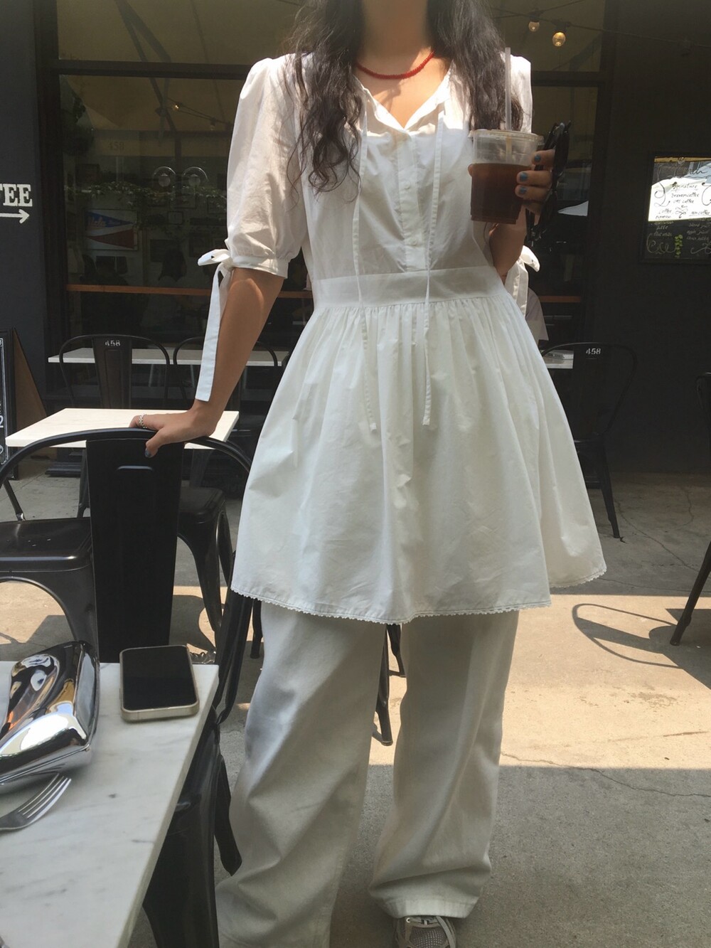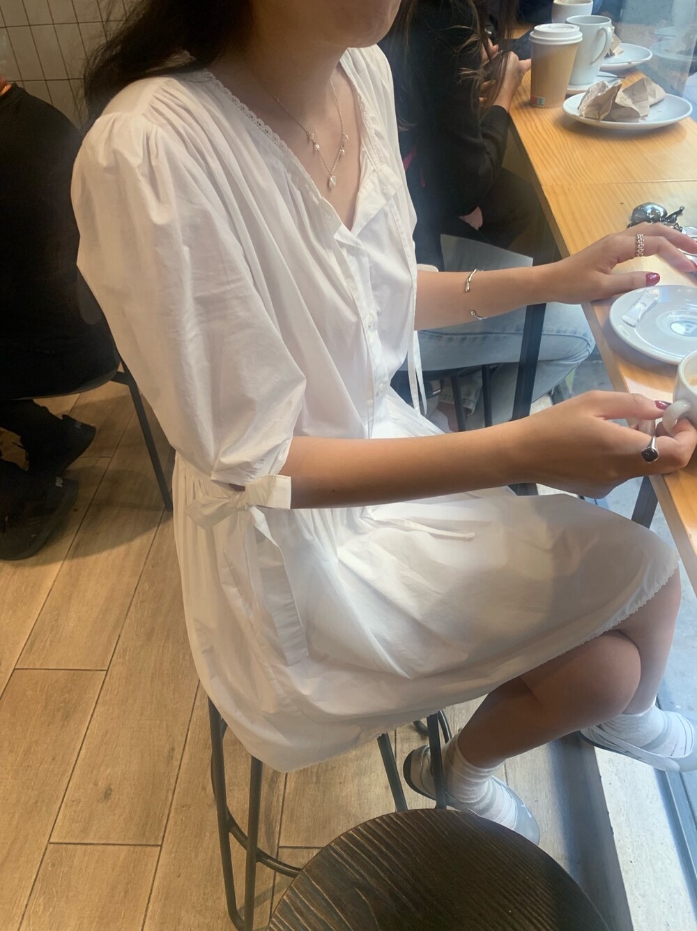 소매라인에 리본 디테일까지 더해지니 러블리한 무드가 너무 예쁘지요?
