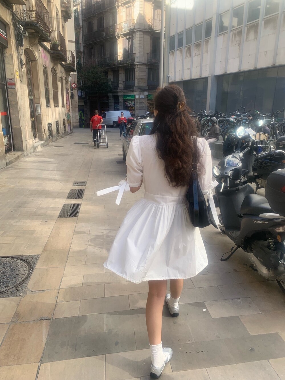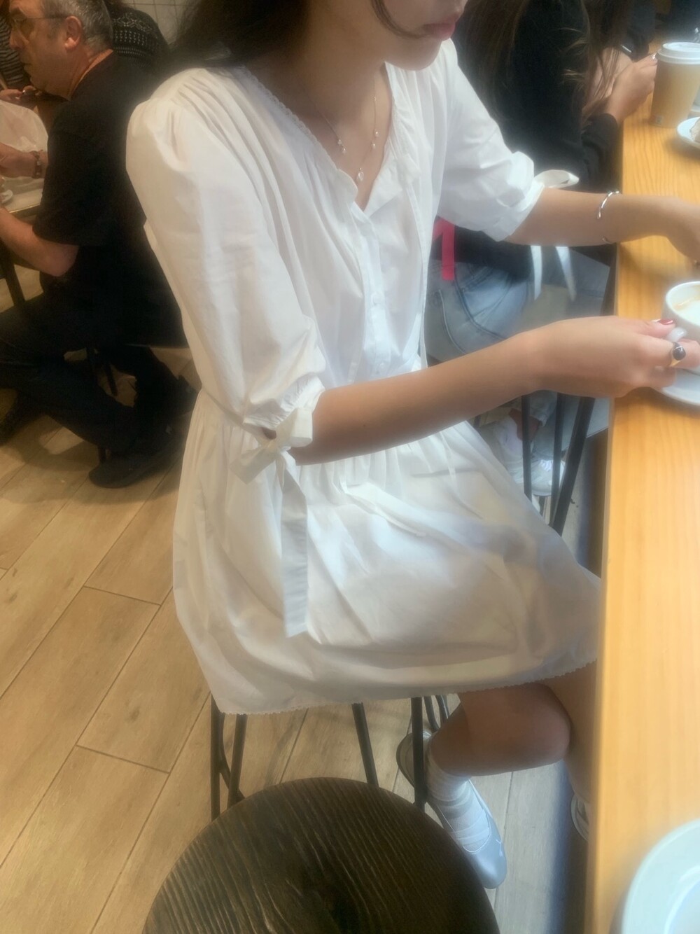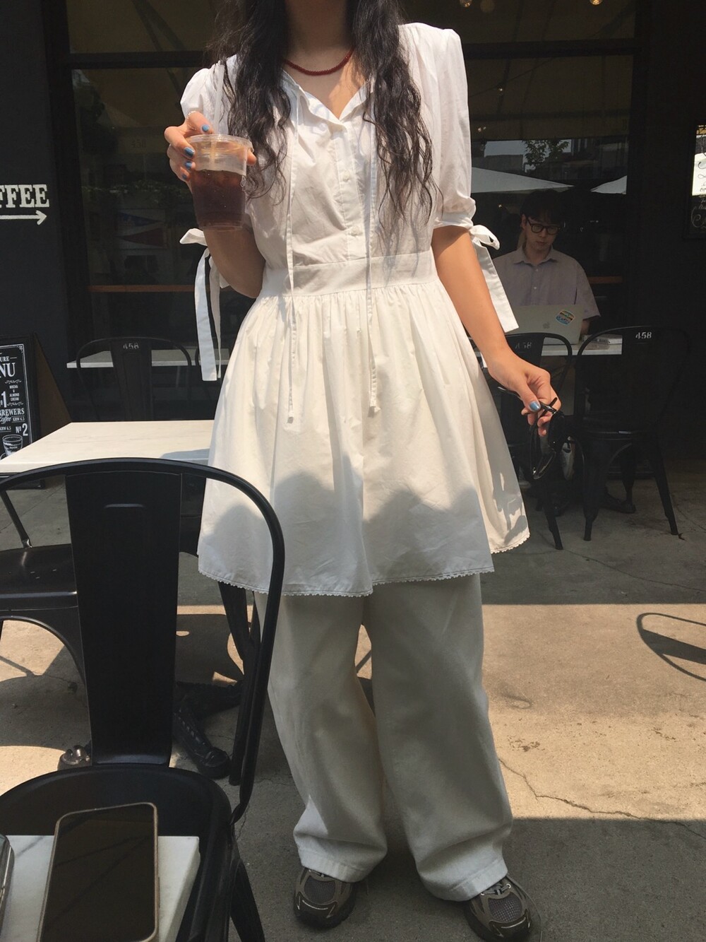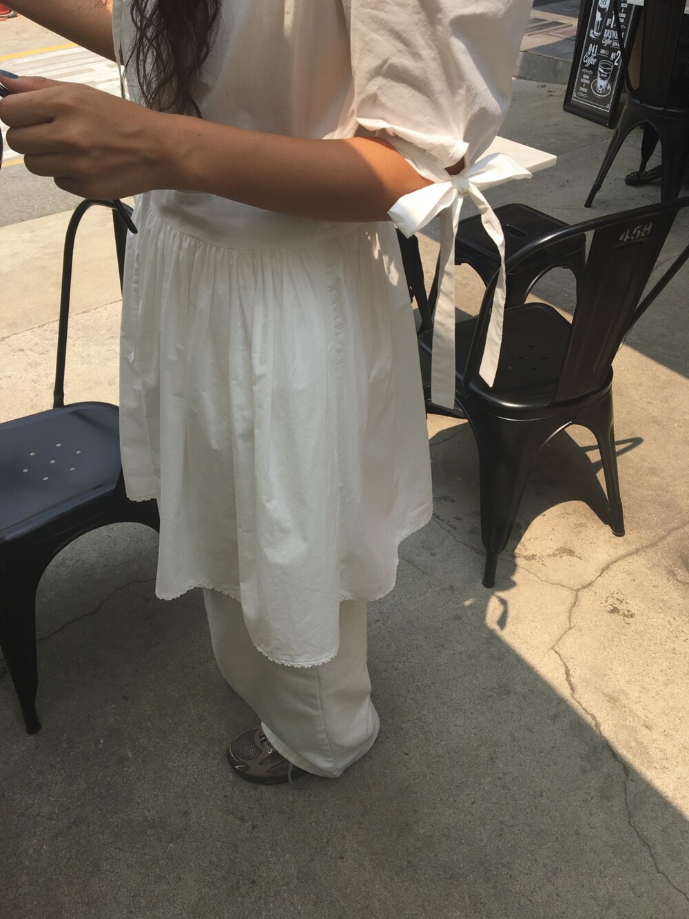 소매라인에 리본 디테일까지 더해지니 러블리한 무드가 너무 예쁘지요?