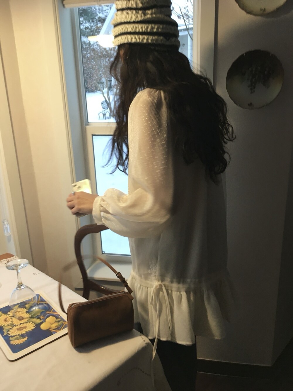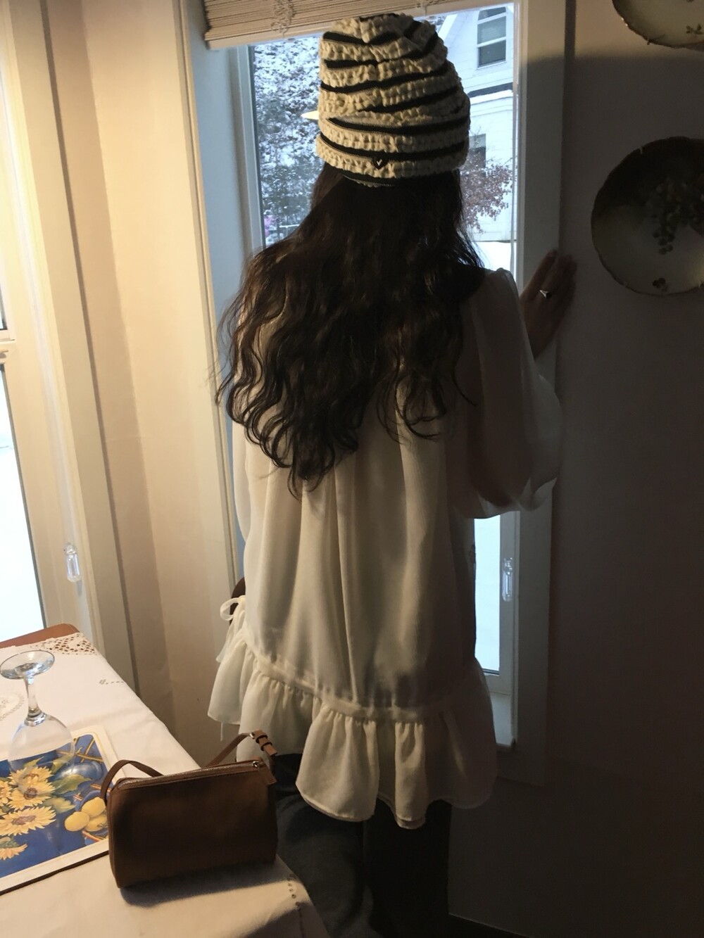 소매라인은 팔라인이 자연스럽게 드러나서 더욱 여리해보이는 것 같아요