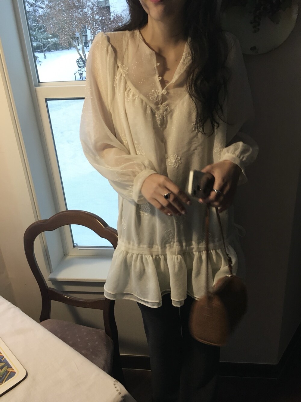 상판에는 안감이 들어가있지만, 전반적으로 시스루한 원단이에요!