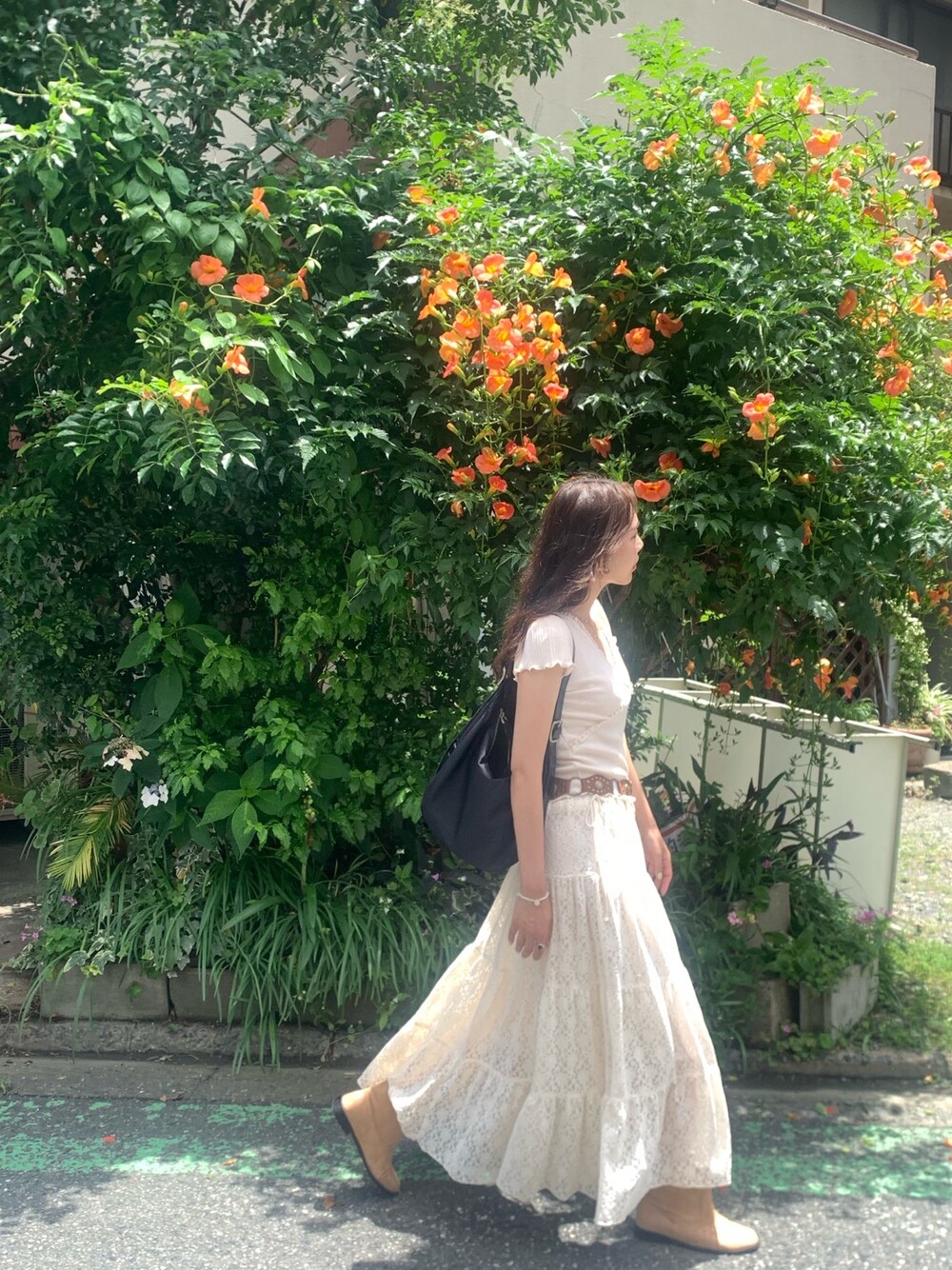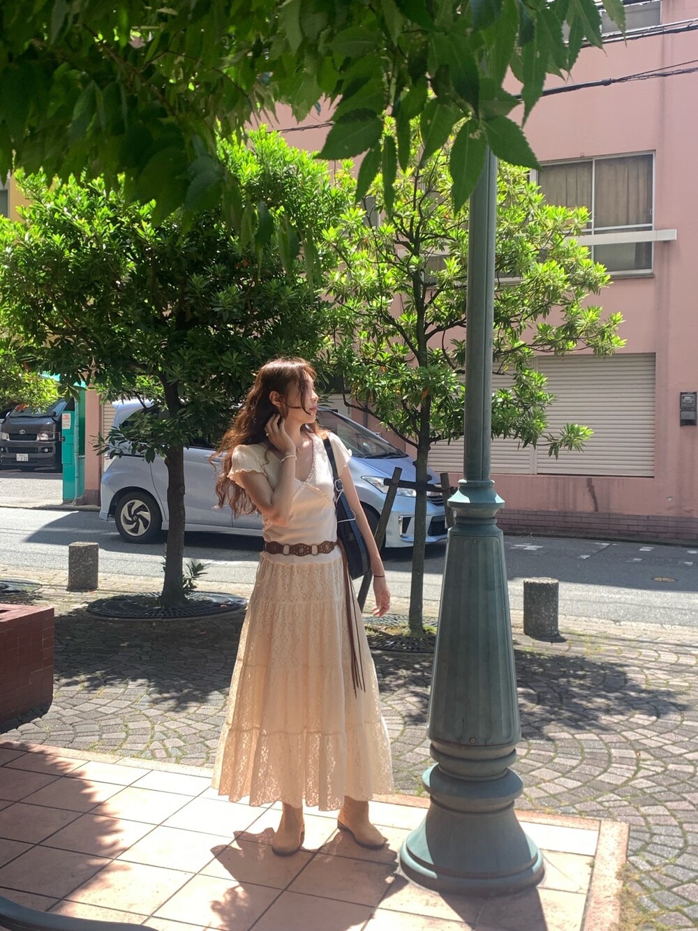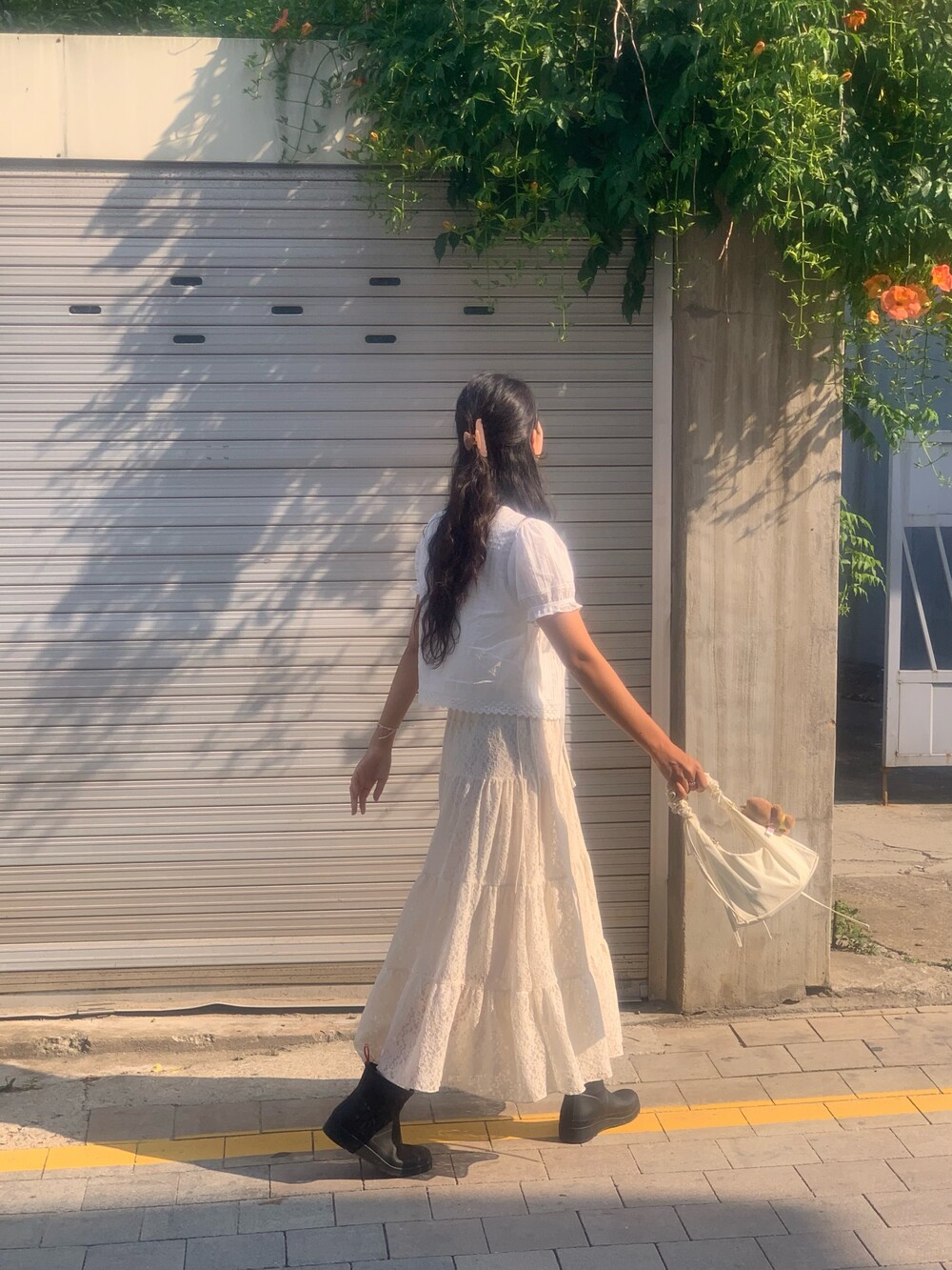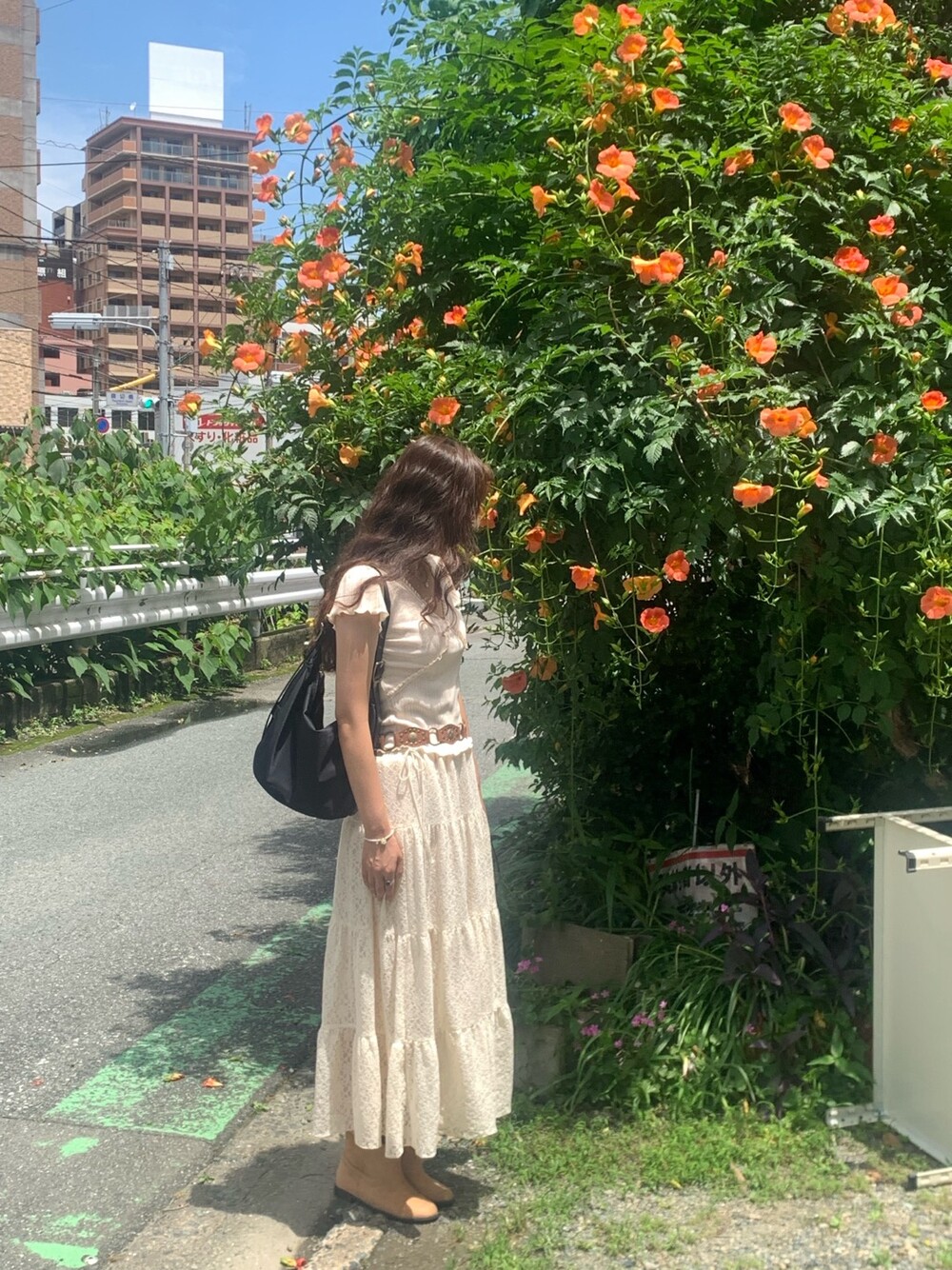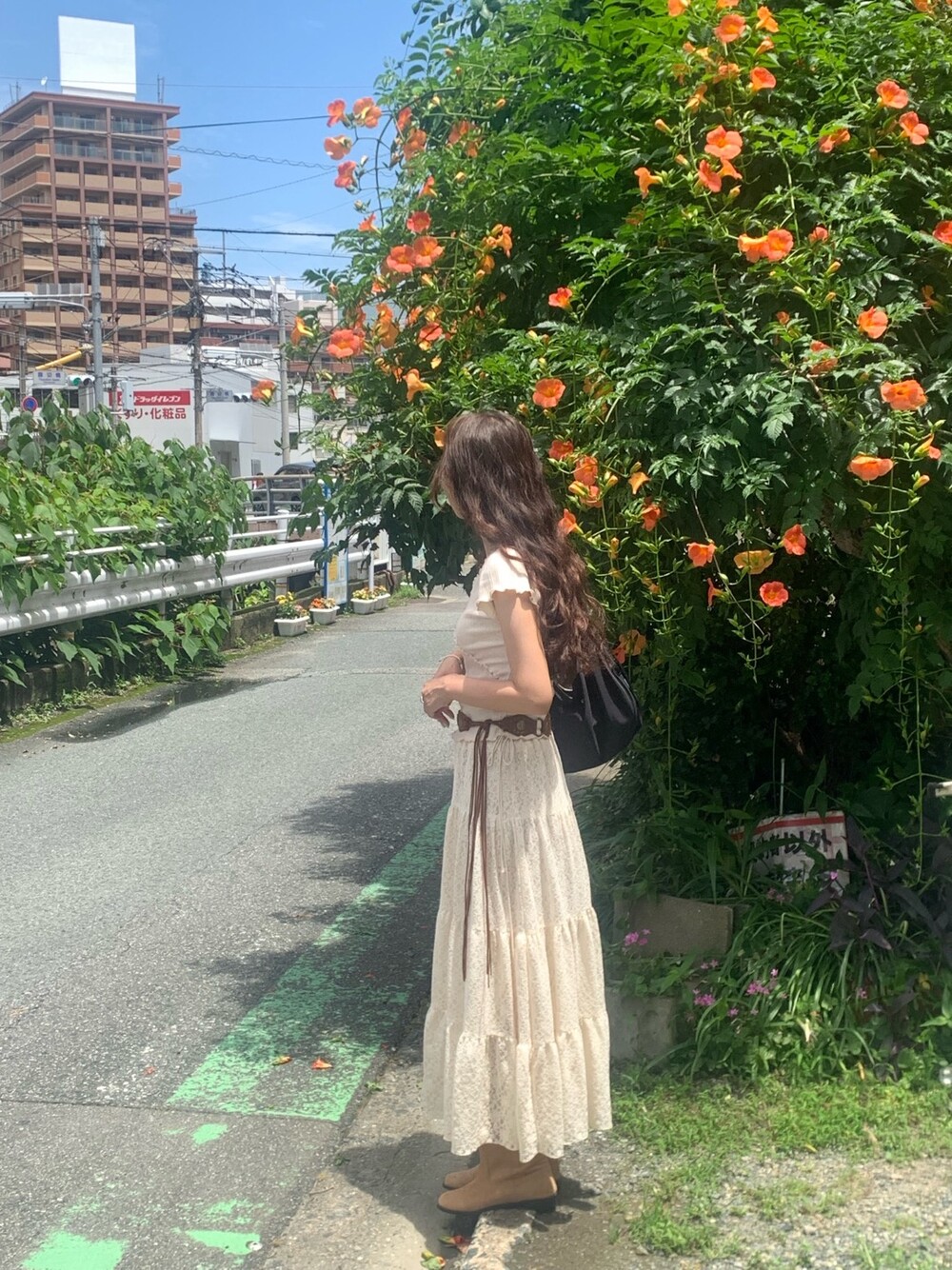 가볍고 여리여리한 소재감이 바람에 살랑이며, 마치 꽃잎이 흩날리는 듯한 실루엣을 만들어 준답니다 :)