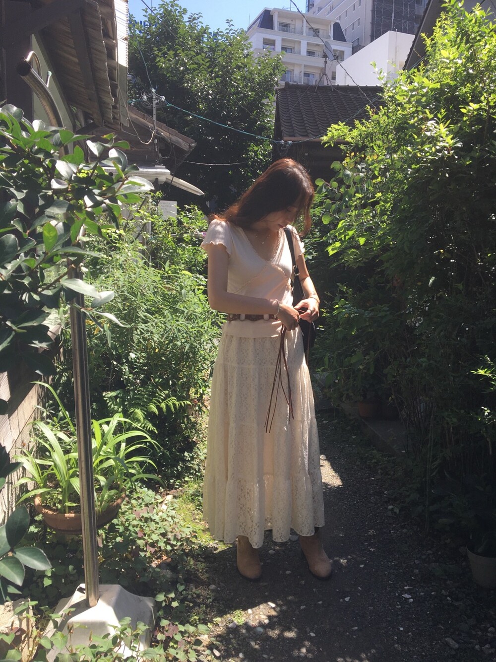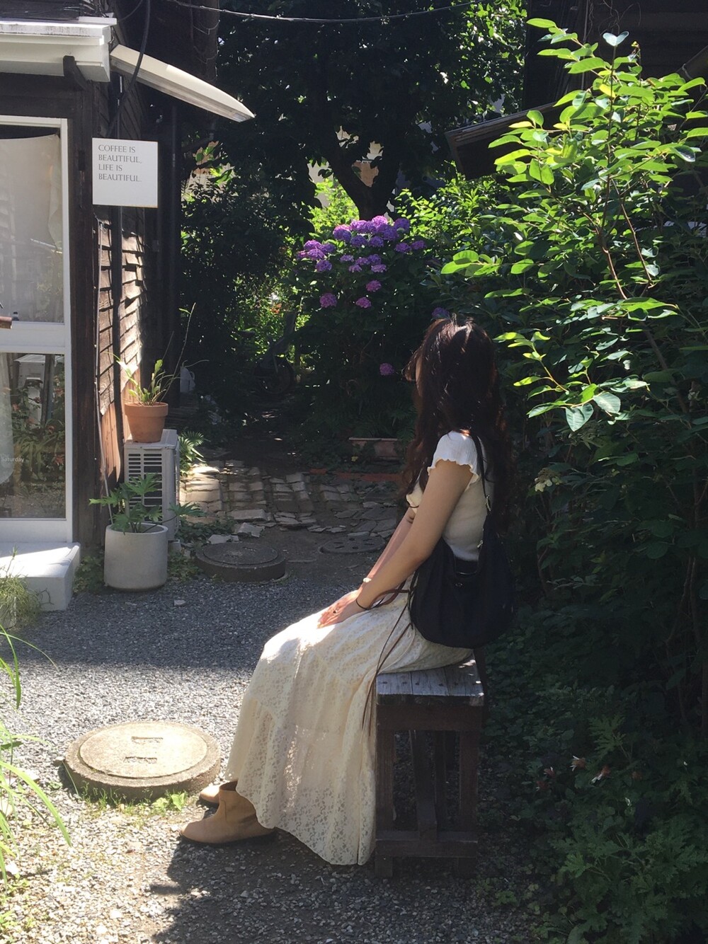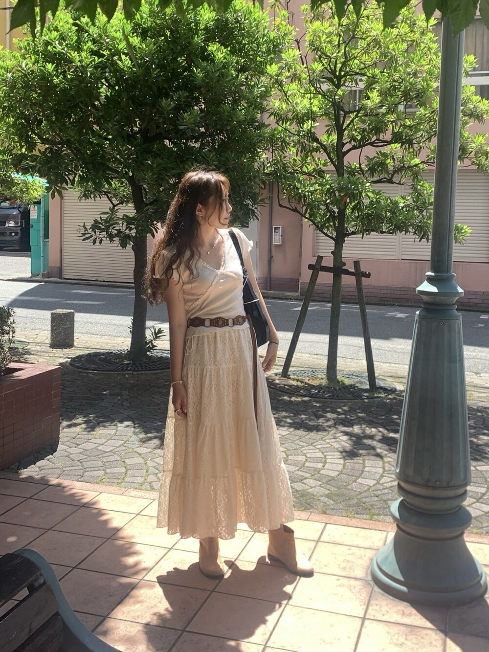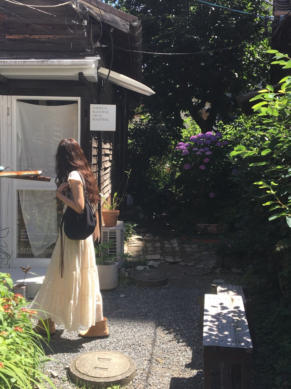 가볍고 여리여리한 소재감이 바람에 살랑이며, 마치 꽃잎이 흩날리는 듯한 실루엣을 만들어 준답니다 :)