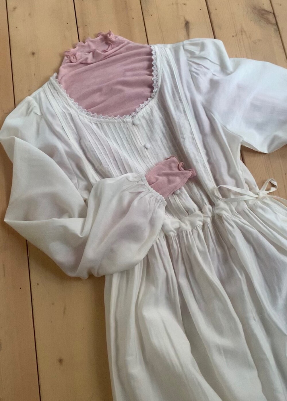 피부에 닿는 느낌이 부드럽고 가벼운 소재이지만, 이 티셔츠 하나만으로 체온은 몇도가 올라가요 ! 목·소매·밑단의 잔잔한 물결 디테일로 러블리함이 강조된답니다 !