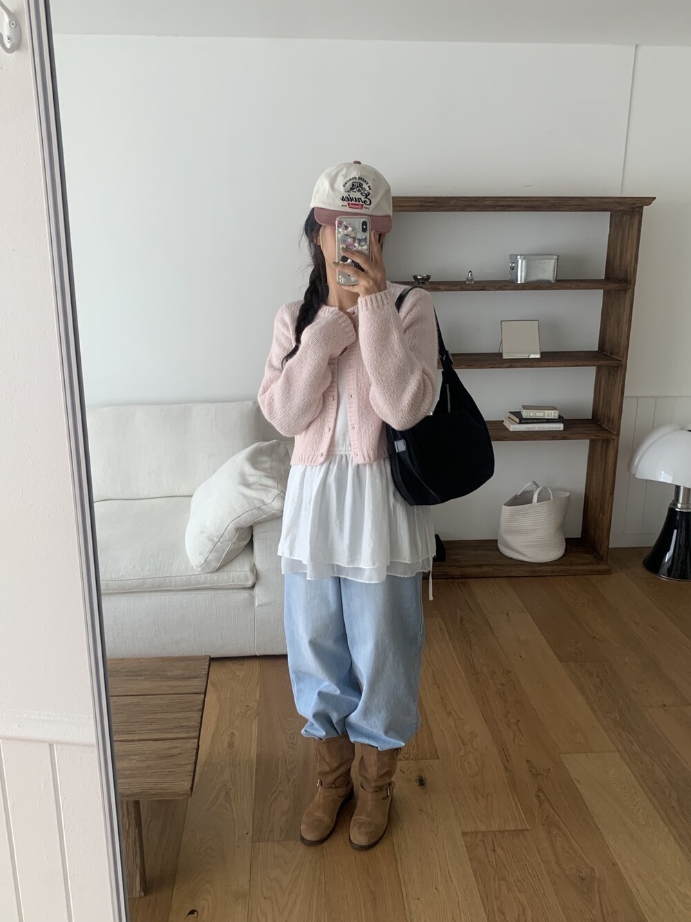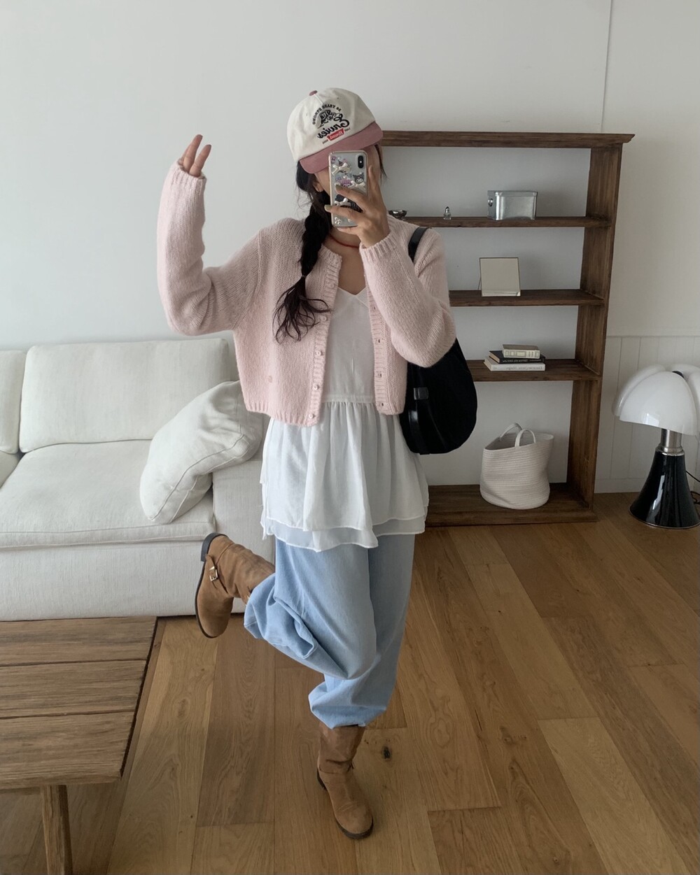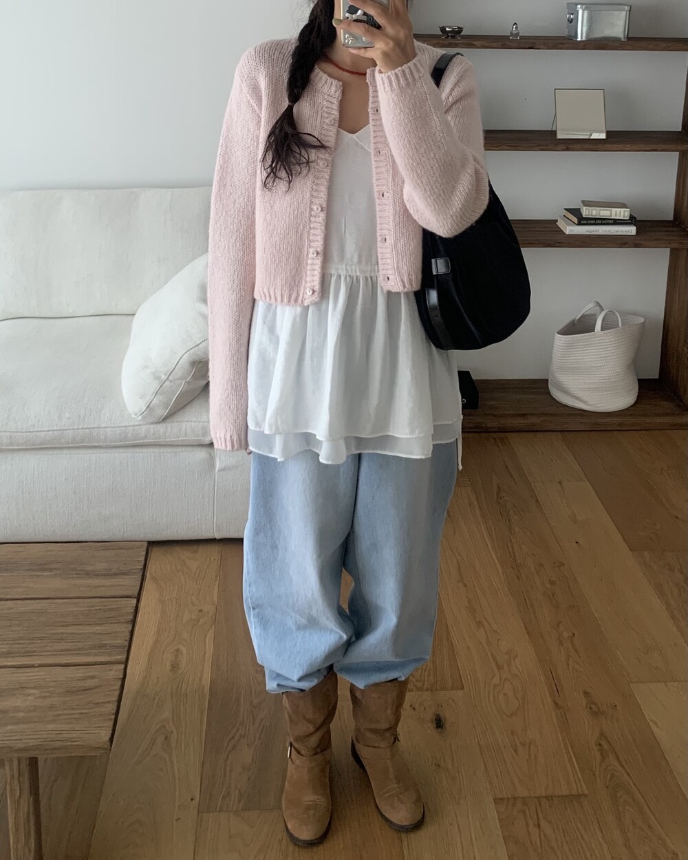 엉덩이를 가려주는 기장이라 슬림해보이는 효과가 있어서 만족스러웠어요!