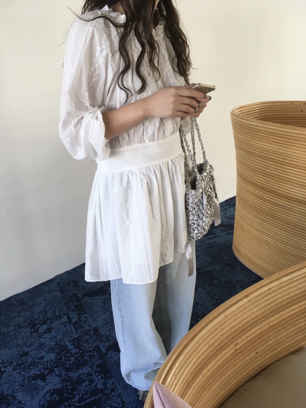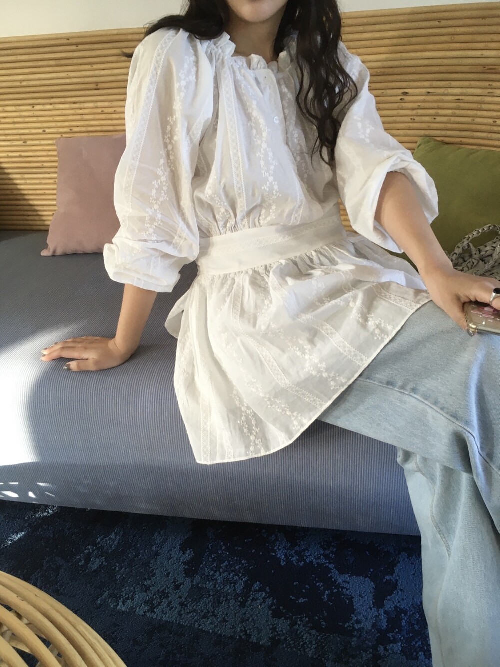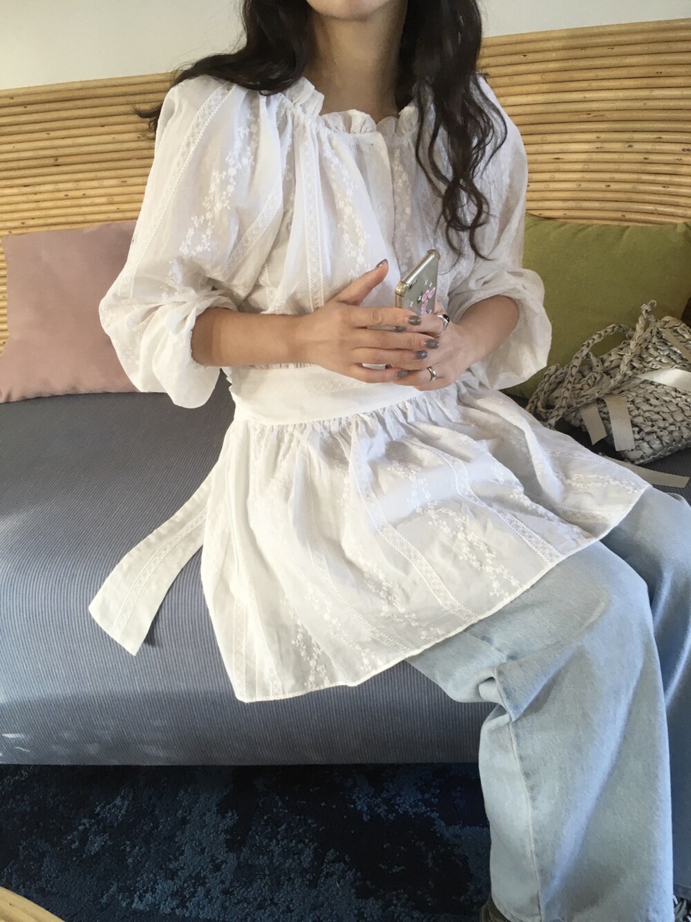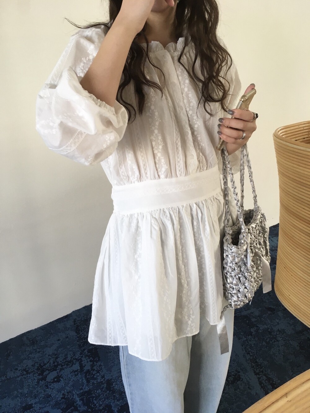 잔잔한 자수 패턴과 은은한 텍스처가 더해져 단독으로도 충분히 포인트가 되는 아이템입니다.