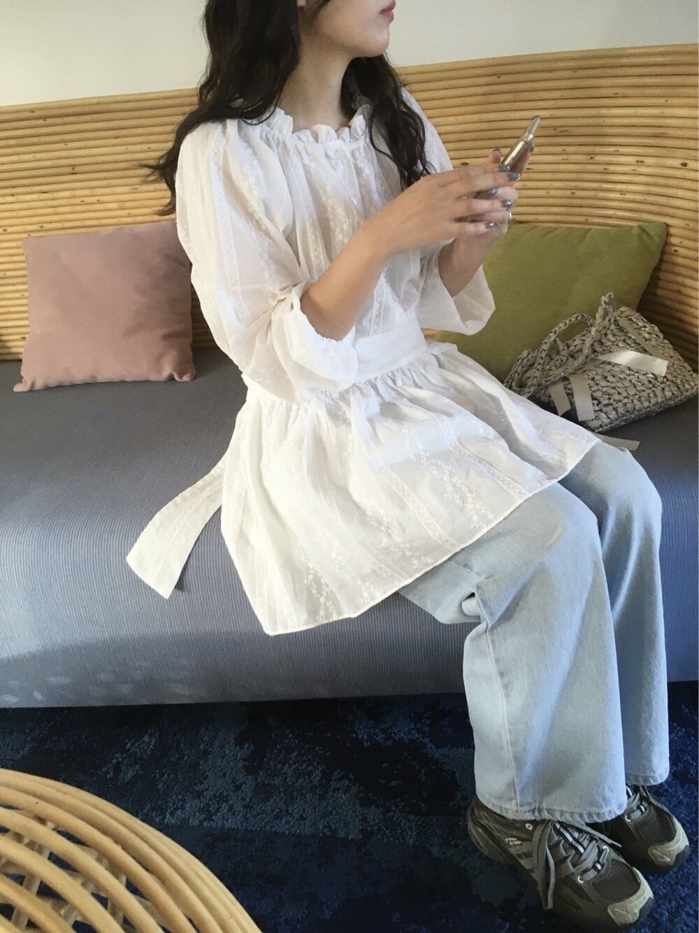 *원단의 잡사, 제거가능한 초크/ 수성펜 자국, 실밥, 주머니의 돌, 신발의 본드자국/잔기스, 실측/컬러 차이, 자연소재의 특성, 상품 구김,데님 커팅부분 올풀림, 미세한 봉제 틀어짐, 마감처리, 아이보리컬러, 니트류, 핸드메이드제품은 교환 및 반품이 불가합니다.