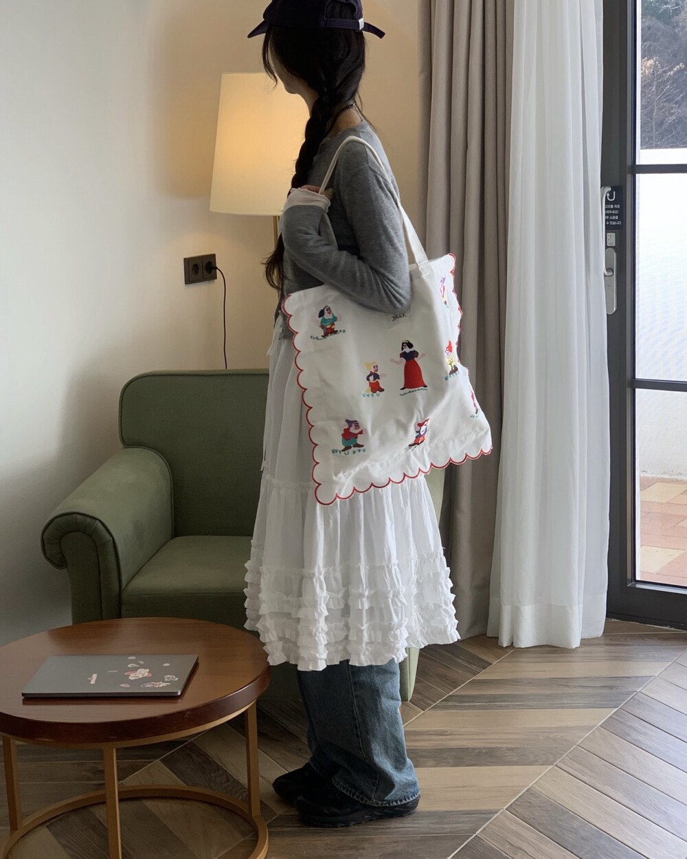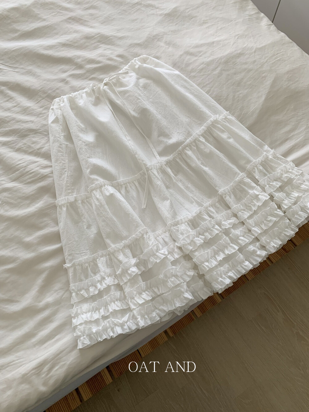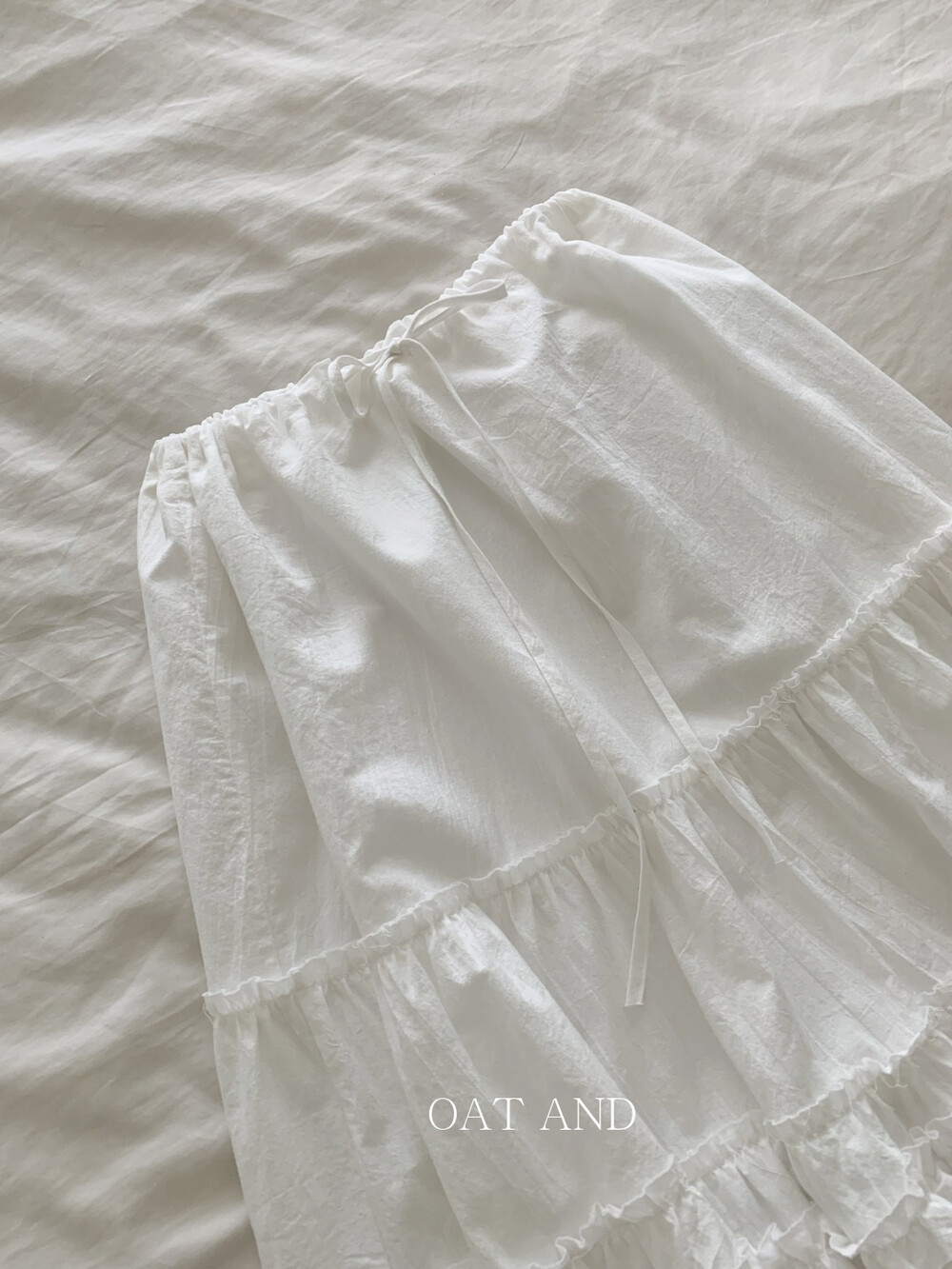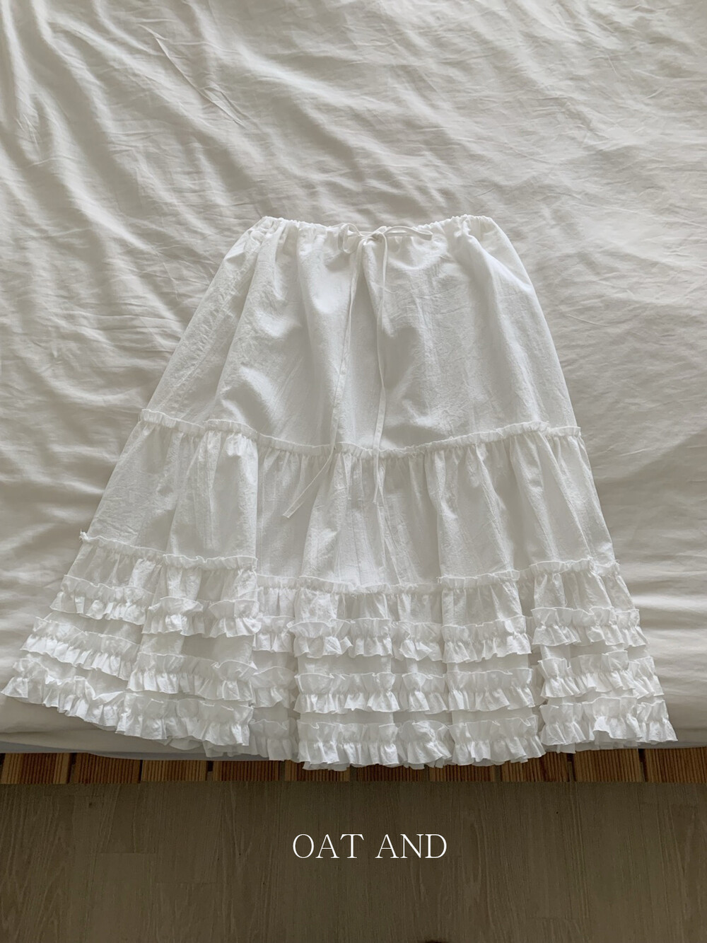 중간 절개에 쁘띠 프릴 한번, 밑단에 프릴 세단이 들어가서 로맨틱한 무드가 느껴집니다.