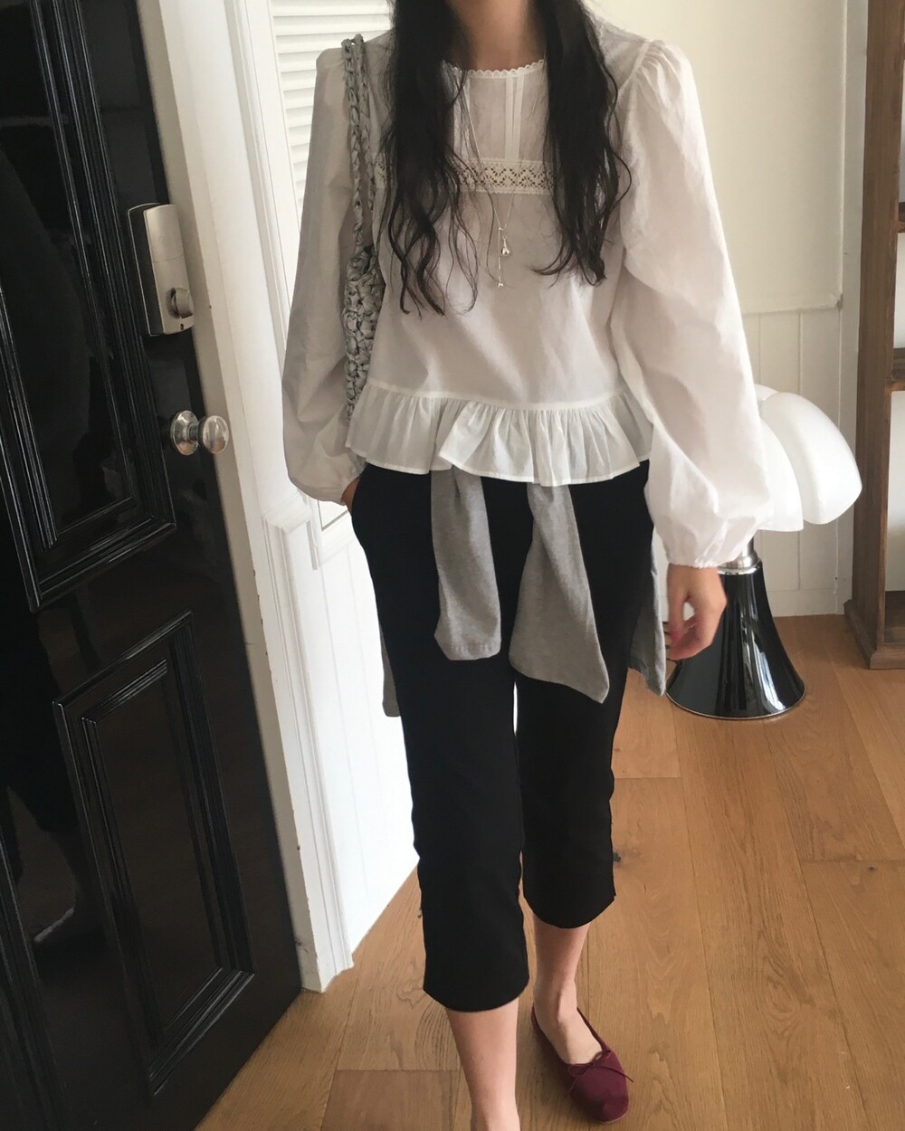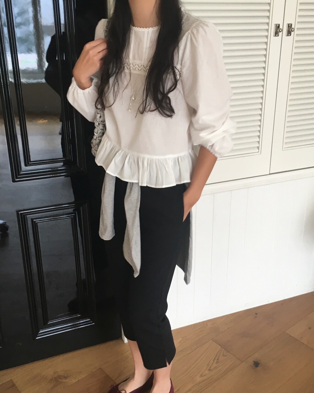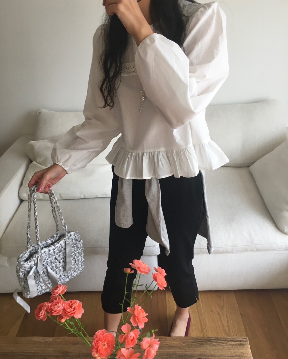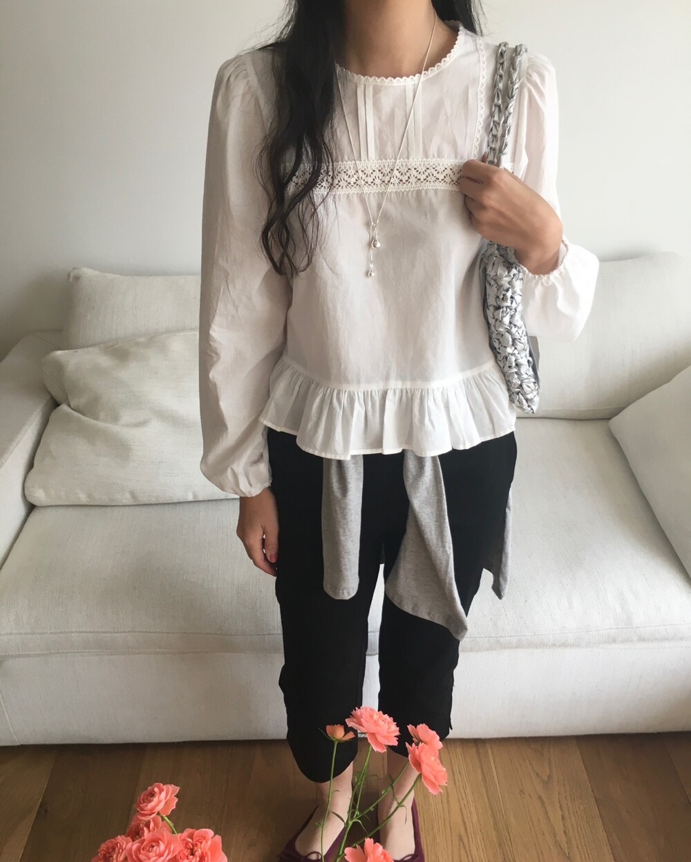 특히 밑단의 프릴 디테일은 스커트나 데님 팬츠 위에 꺼내 입었을 때 가장 예쁜 실루엣을 보여준답니다.