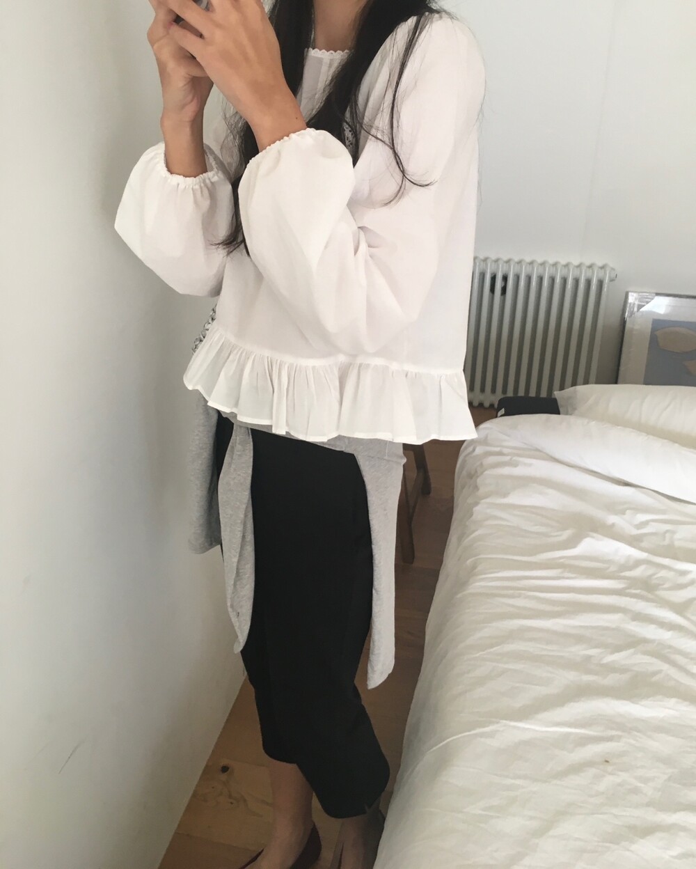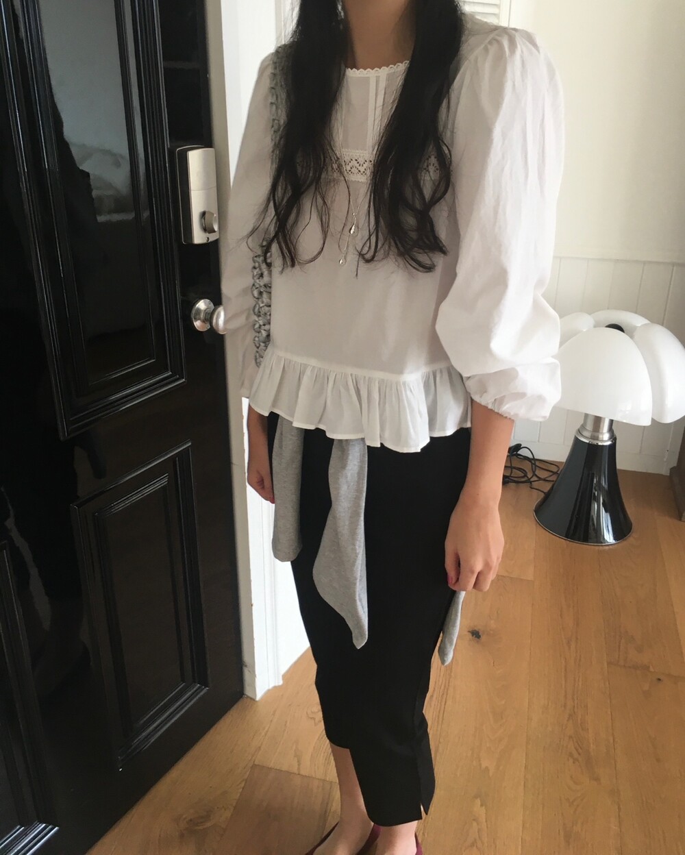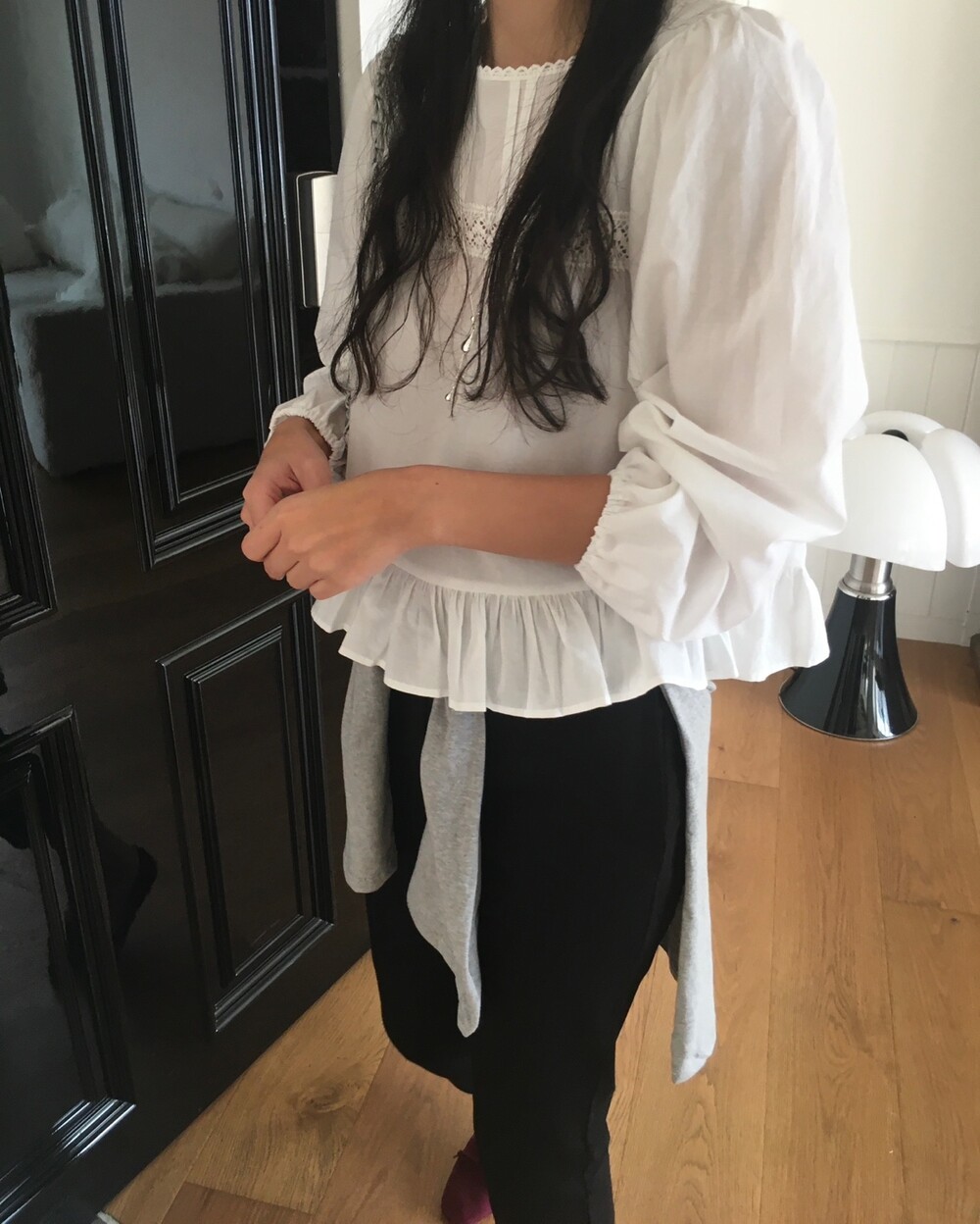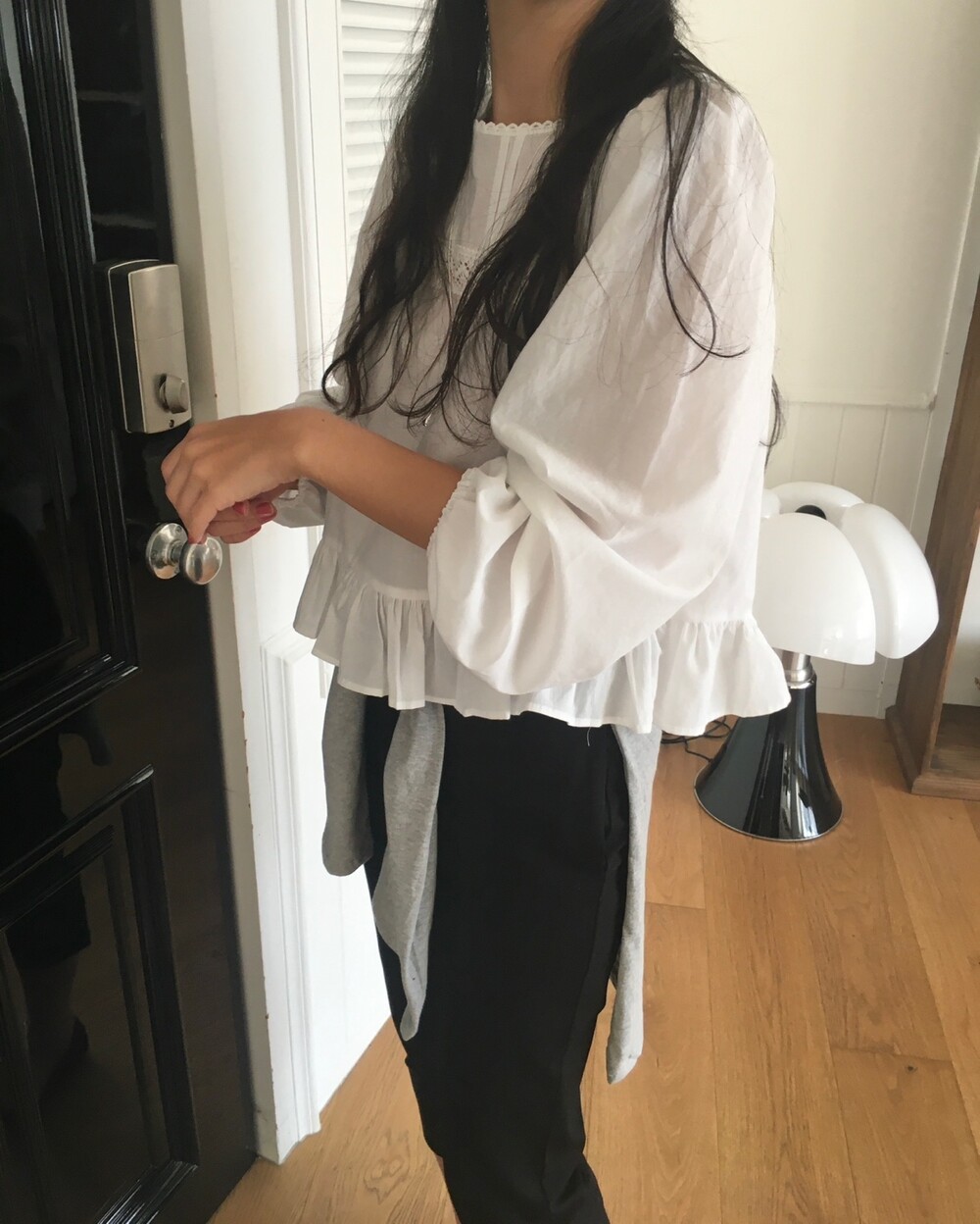 특히 밑단의 프릴 디테일은 스커트나 데님 팬츠 위에 꺼내 입었을 때 가장 예쁜 실루엣을 보여준답니다.