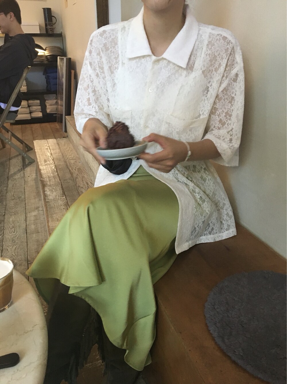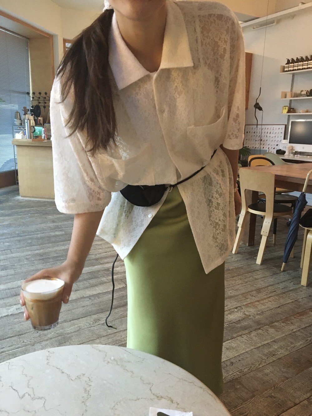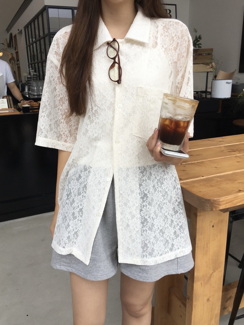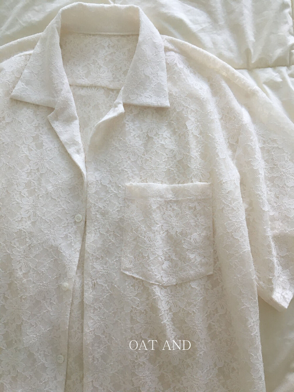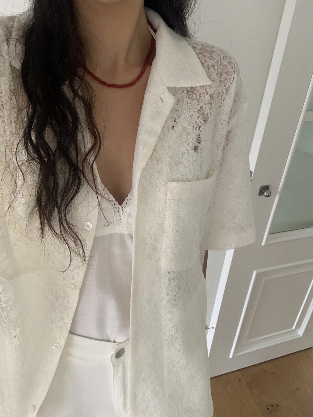 레이스 원단으로 제작된 오트앤드 메이드 셔츠입니다.