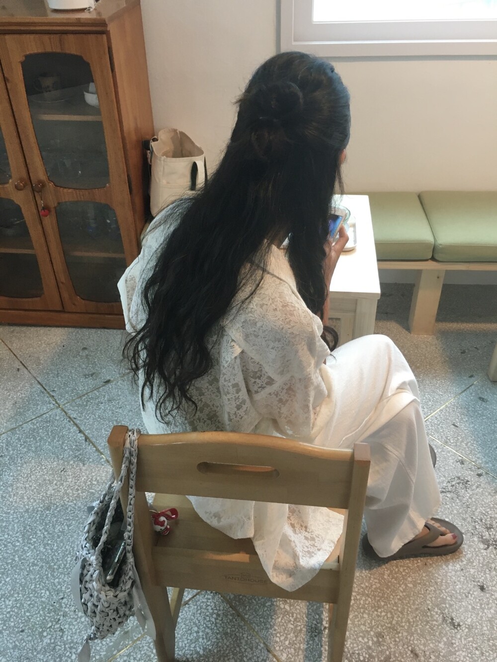 반팔 셔츠 형태로, 여름철에 적합한 시원한 디자인입니다. 카라가 달려 있으며, 전체적으로 클래식한 셔츠 스타에 오버핏의 사이즈로 멋스러움이 느껴지실거에요! 오버핏이지만, 소재가 주는 여리함이 있어서 오버핏이라기보다는 루즈핏으로 느껴지더라구요.