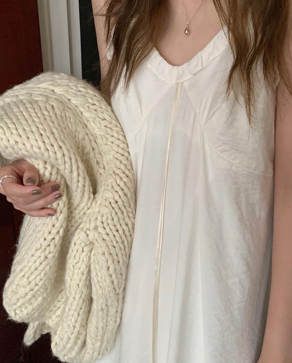 가슴 부분 프릴 디테일이 너무 사랑스럽죠!