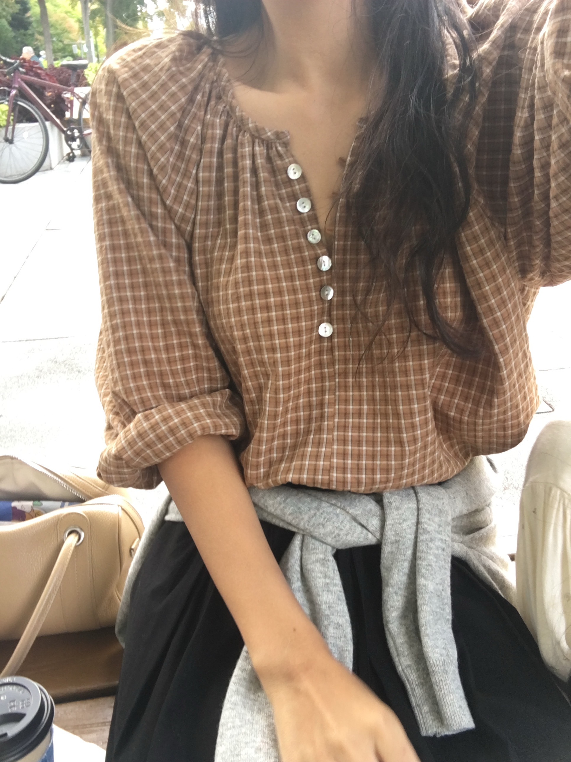 [made] 웨이브 블라우스 (브라운체크) (10/21까지 10%할인)