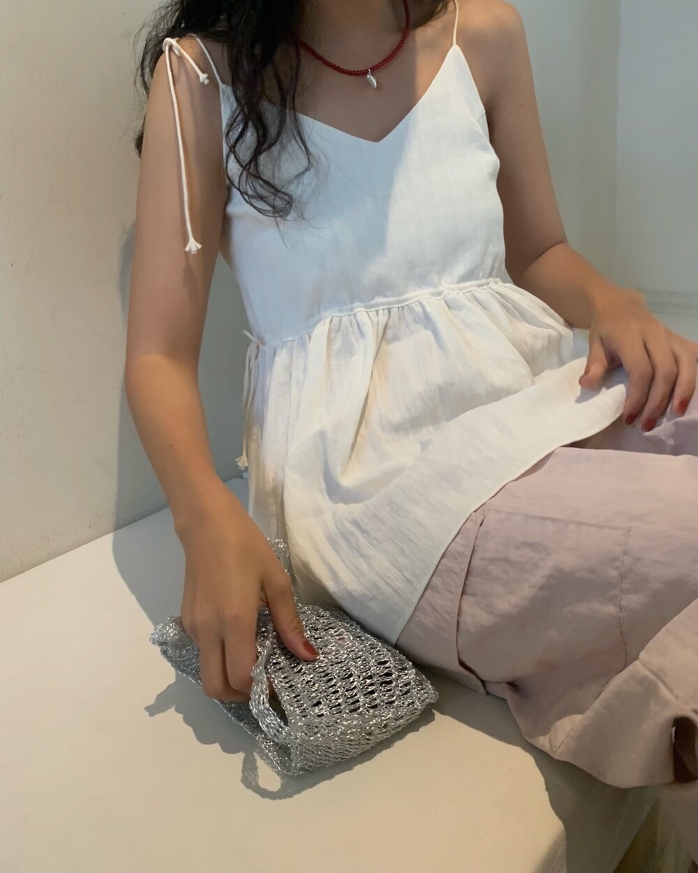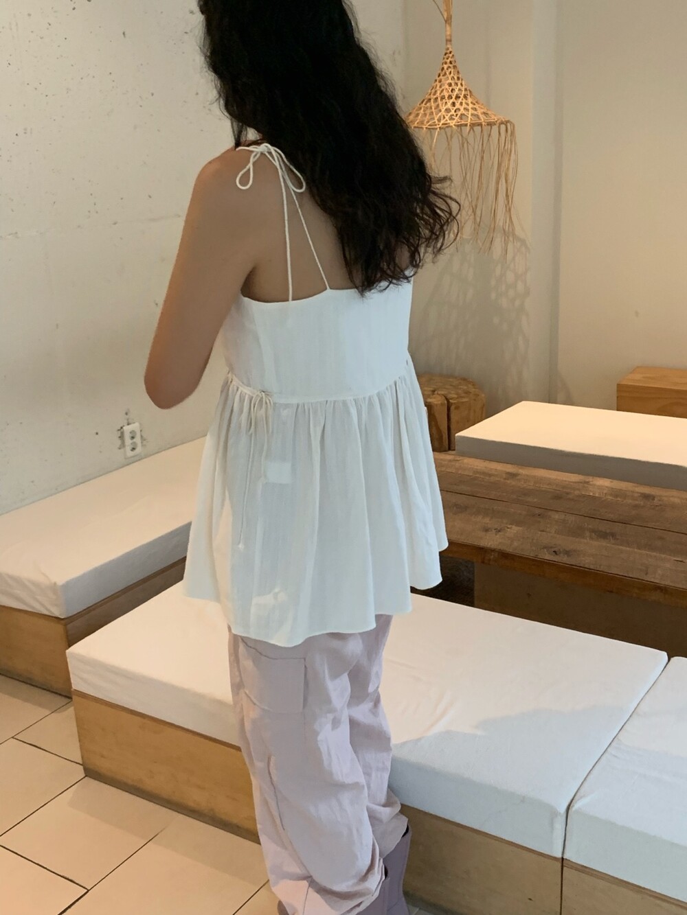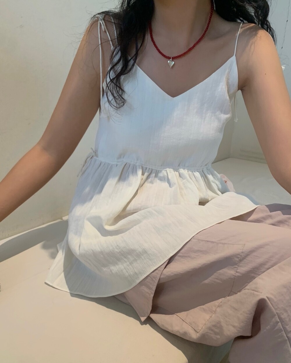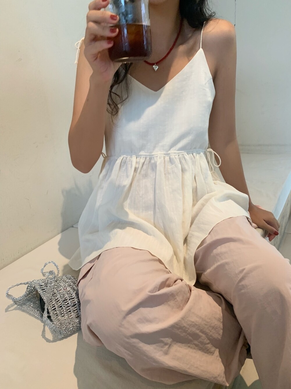 더 러블리하고 더 잘록한 허리 핏으로 착용할수 있는 민소매 탑이에요.