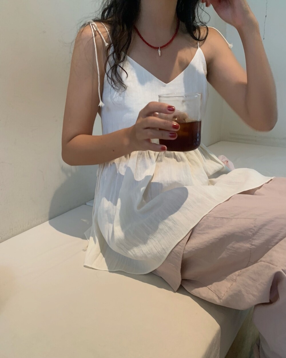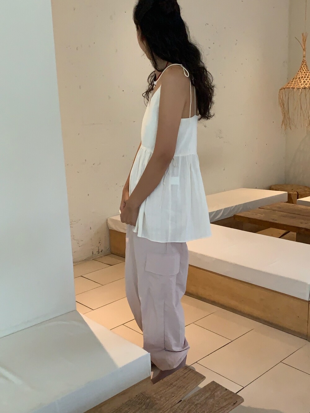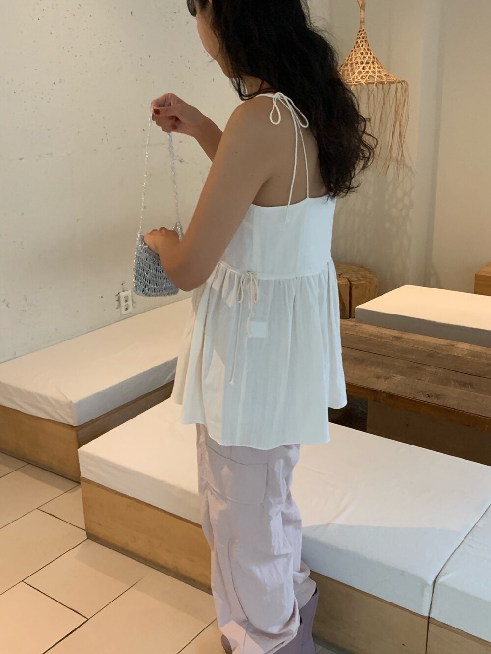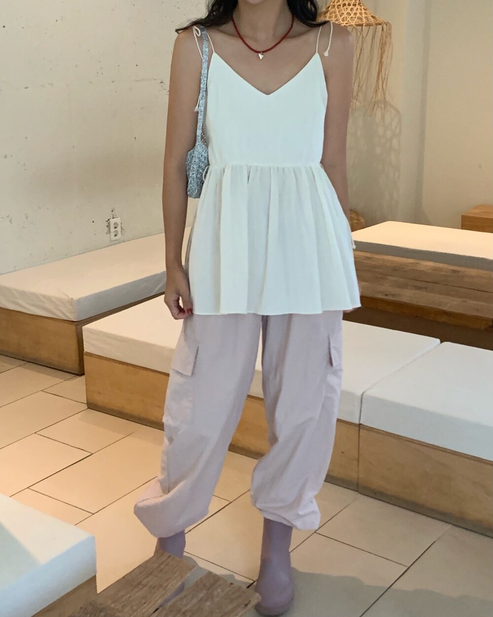 더 러블리하고 더 잘록한 허리 핏으로 착용할수 있는 민소매 탑이에요.