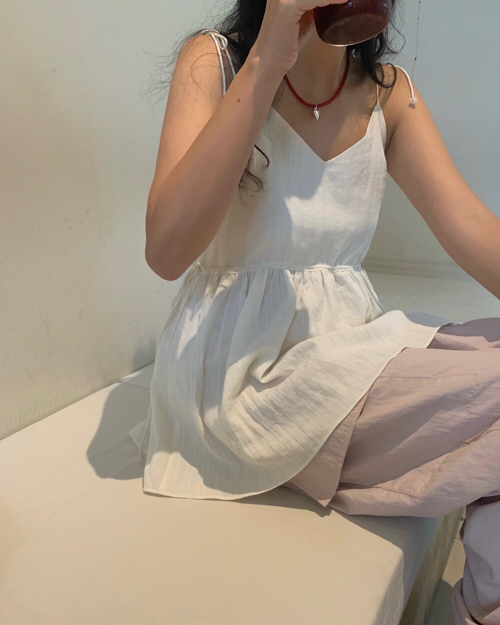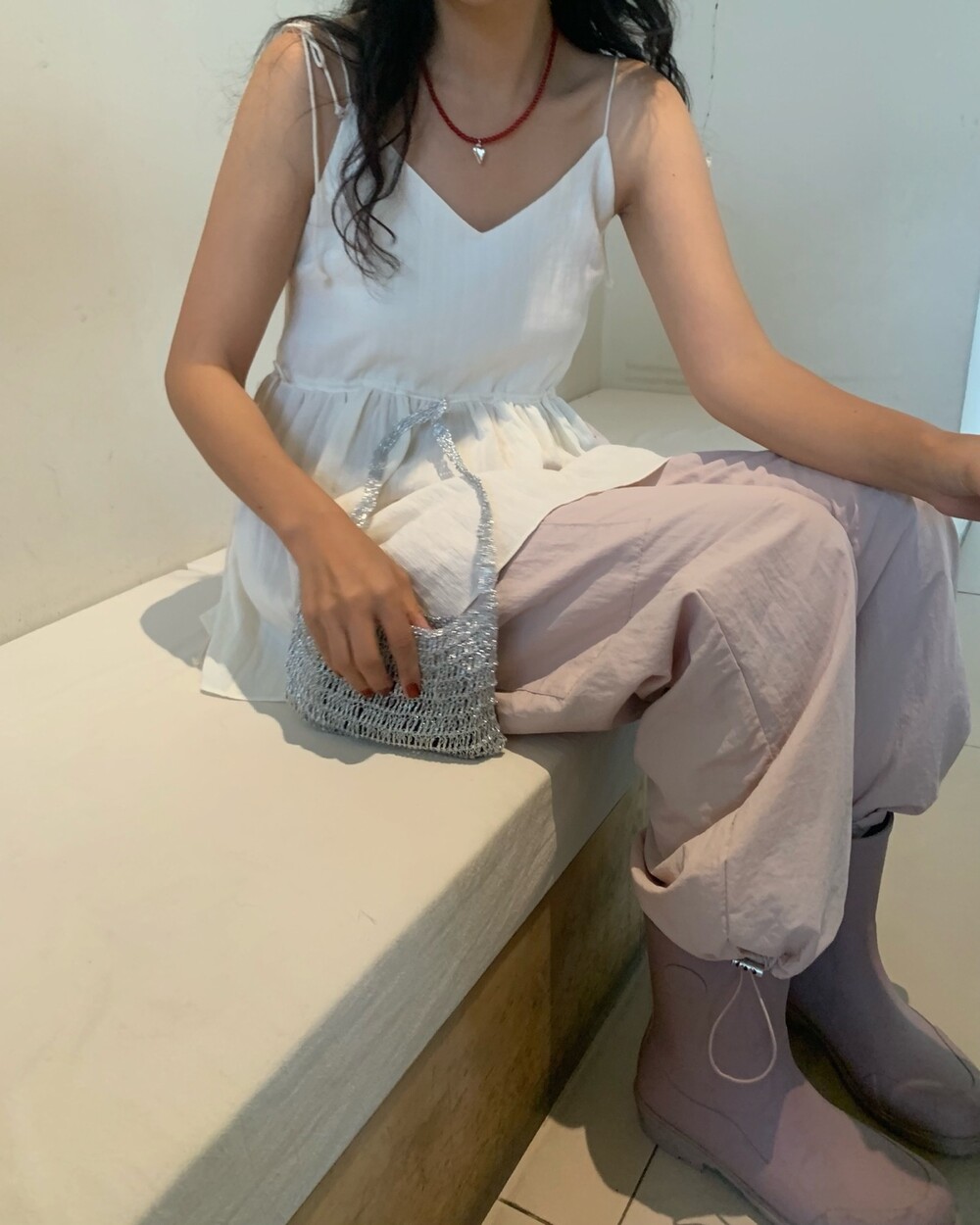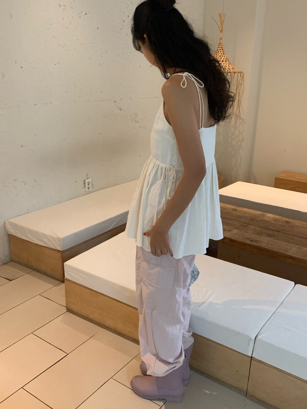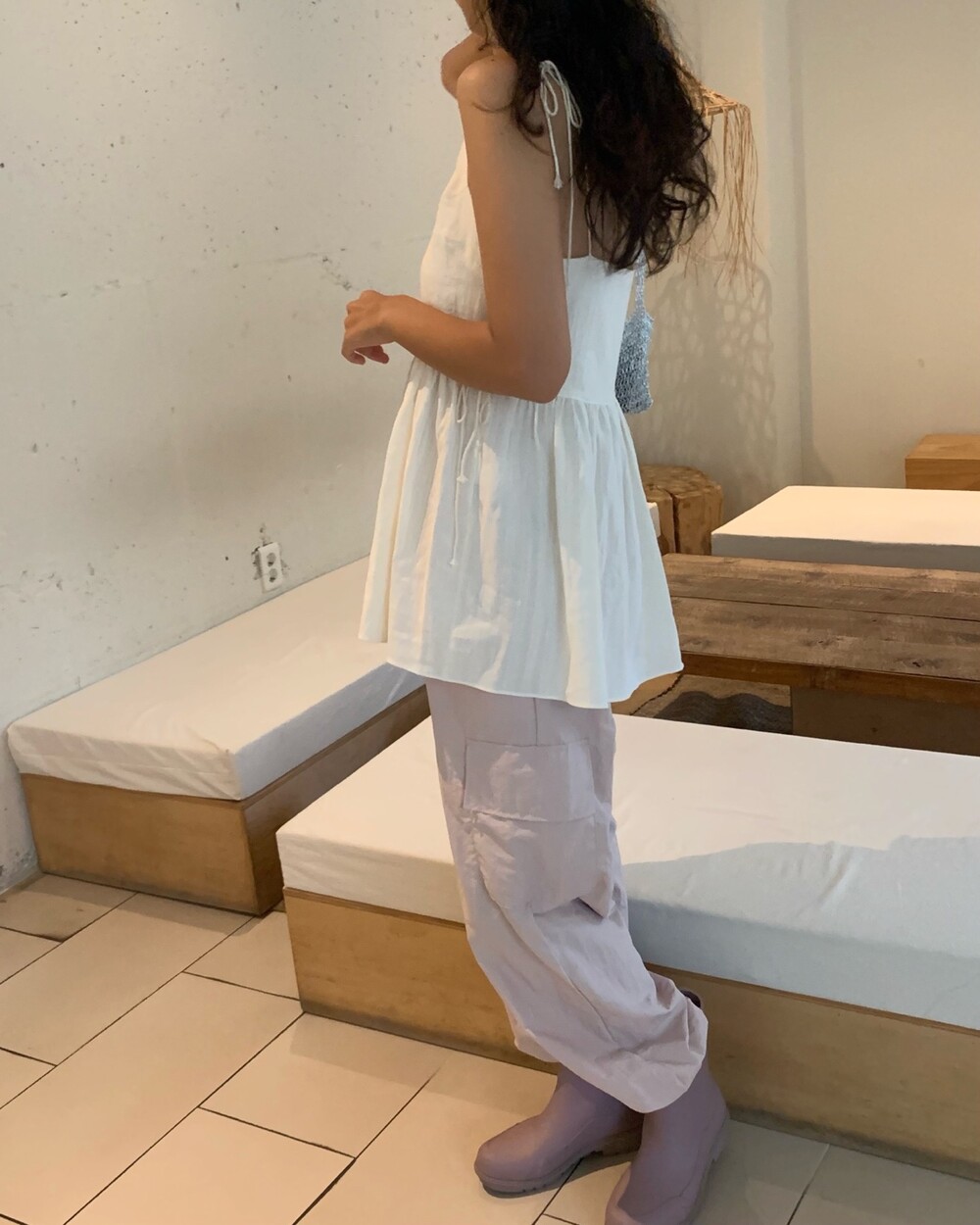 더 러블리하고 더 잘록한 허리 핏으로 착용할수 있는 민소매 탑이에요.
