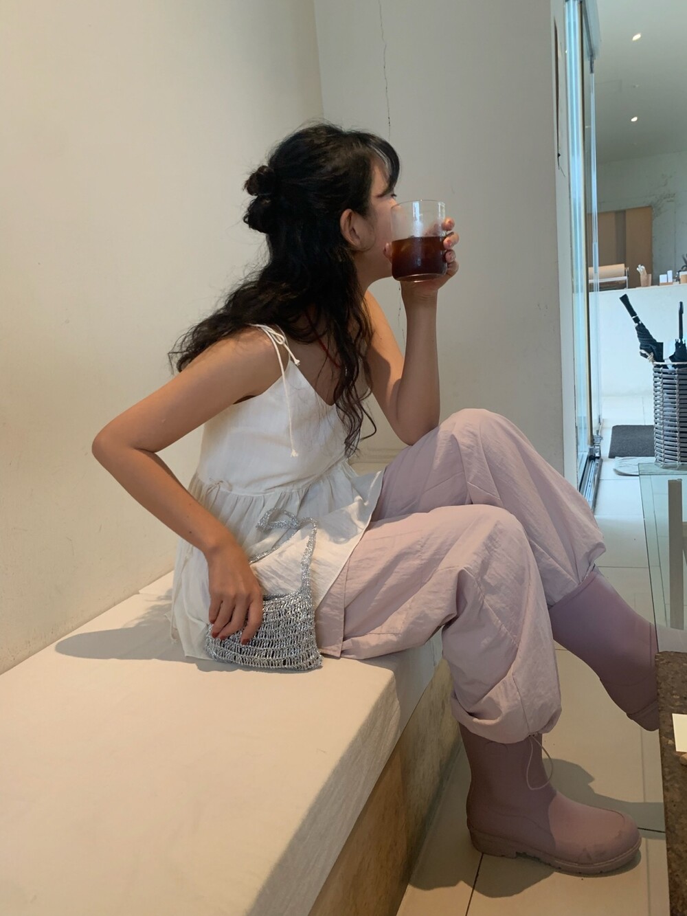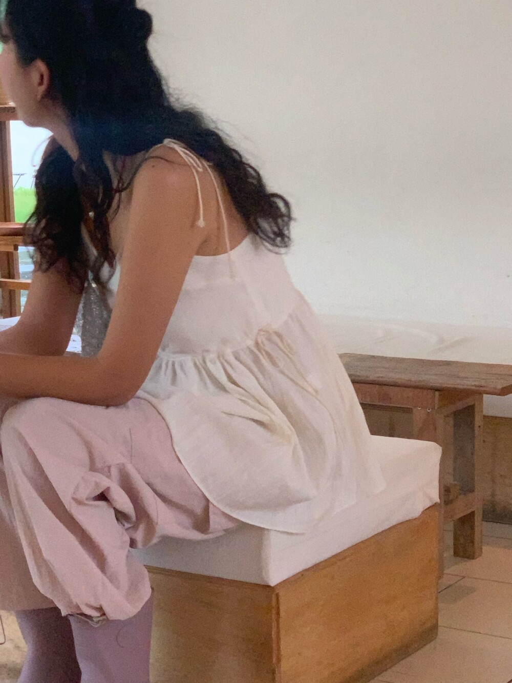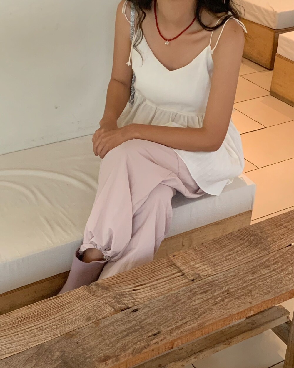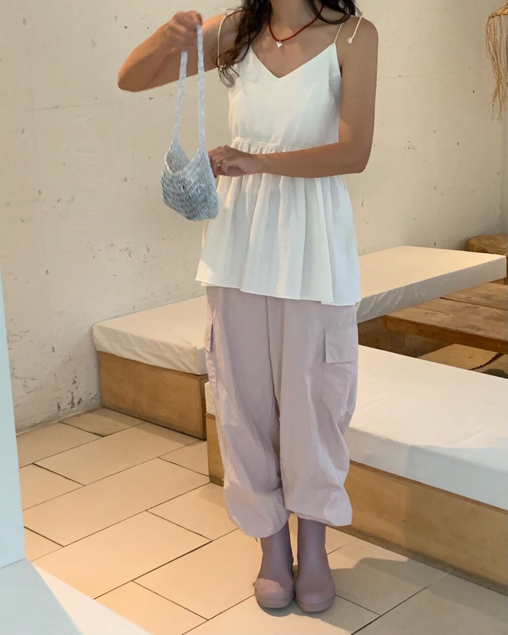 더 러블리하고 더 잘록한 허리 핏으로 착용할수 있는 민소매 탑이에요.