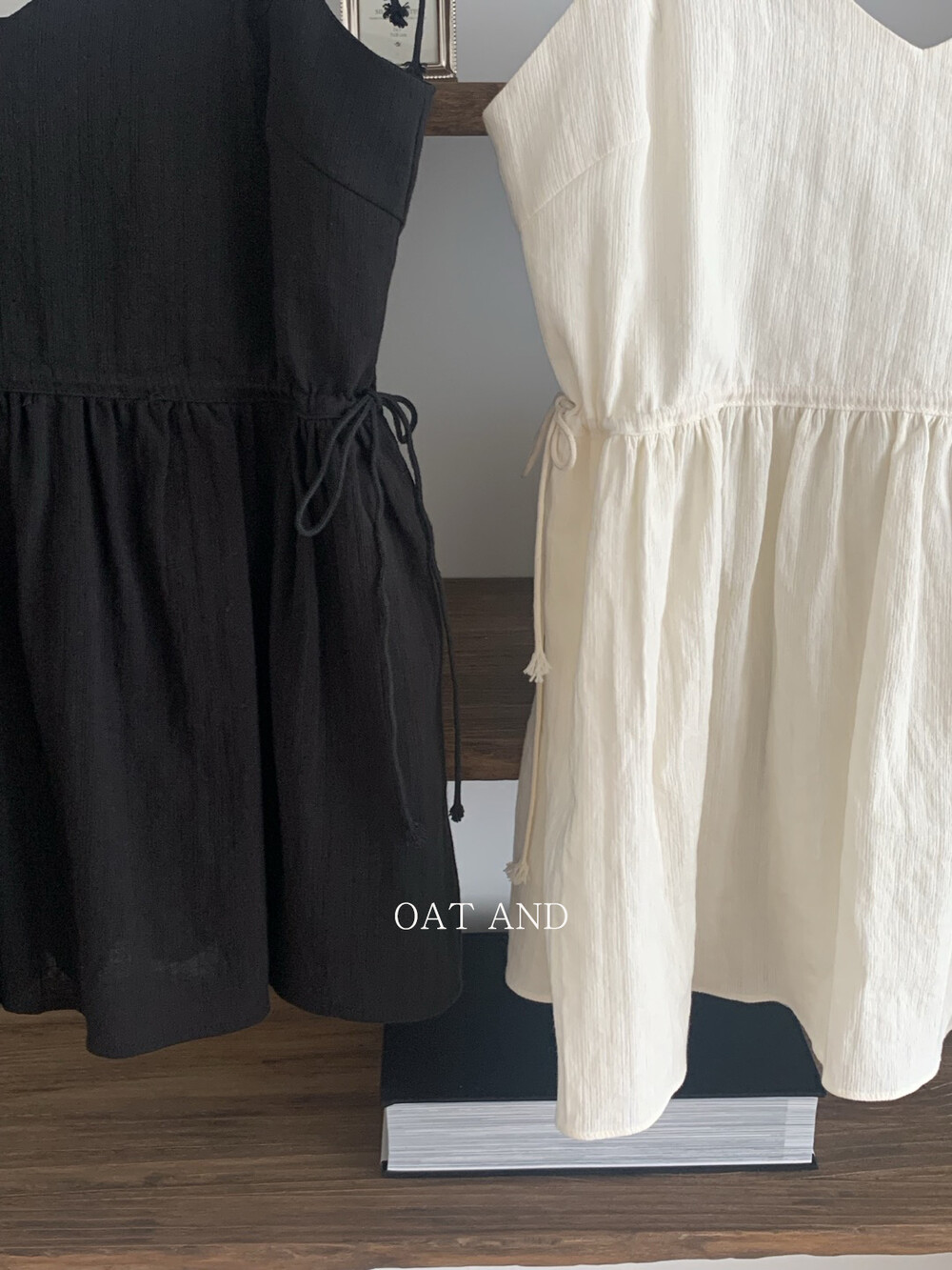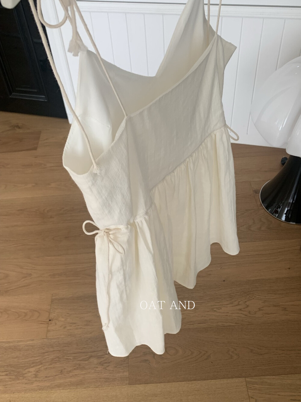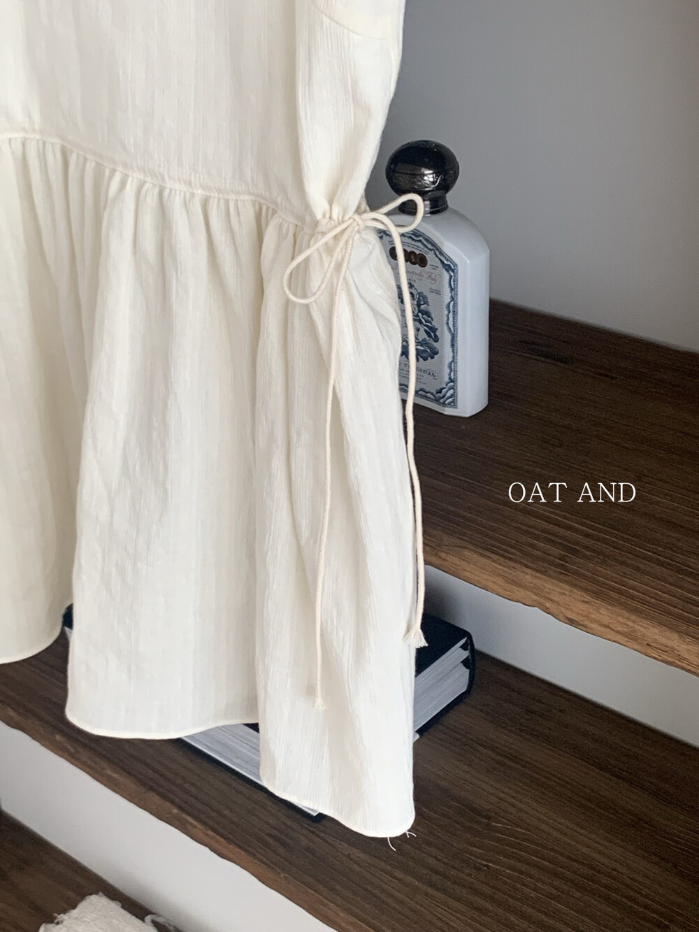 허리 양쪽에 달린 스트링으로 리본을 묶어