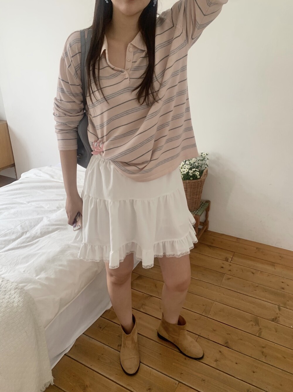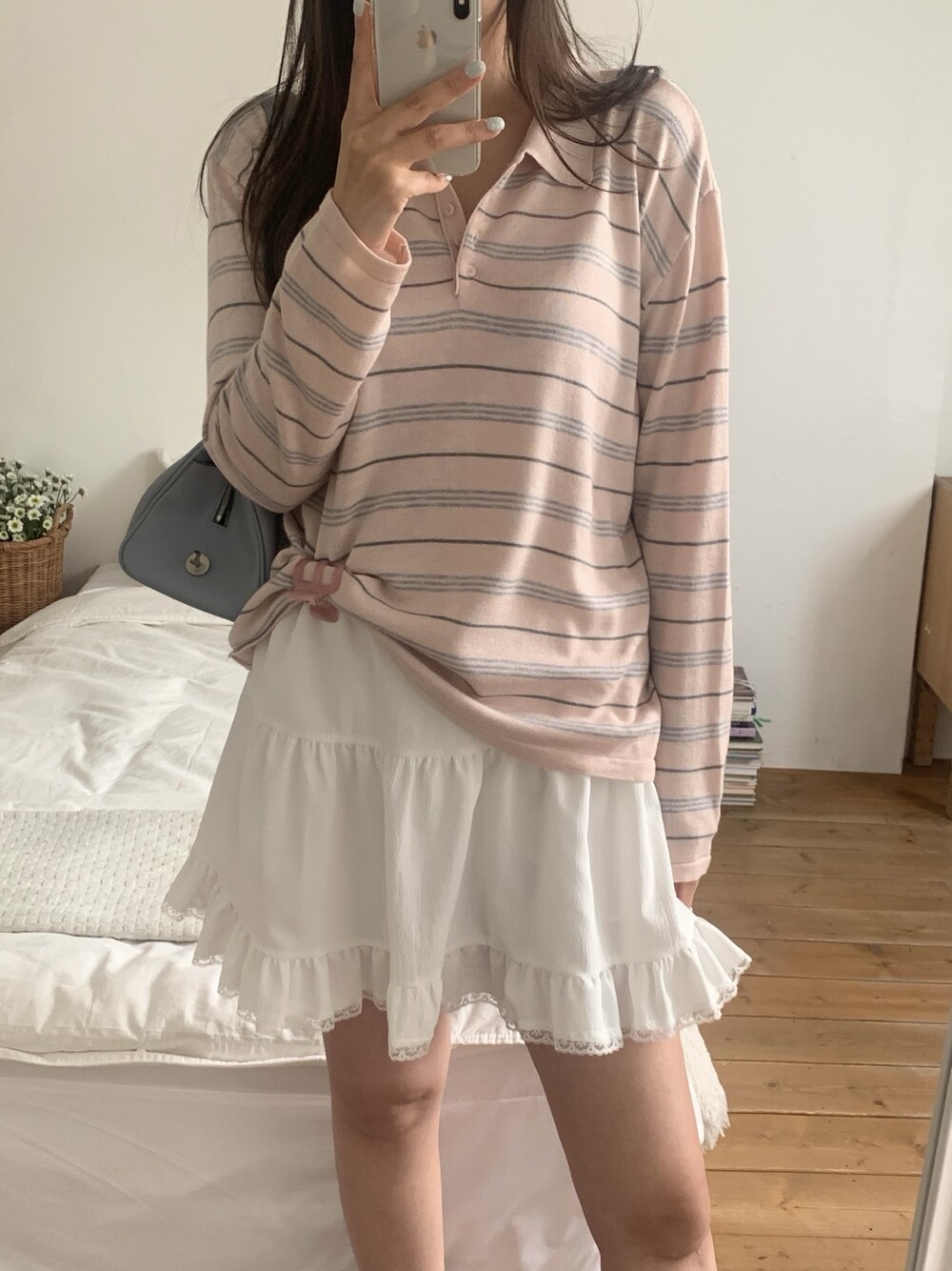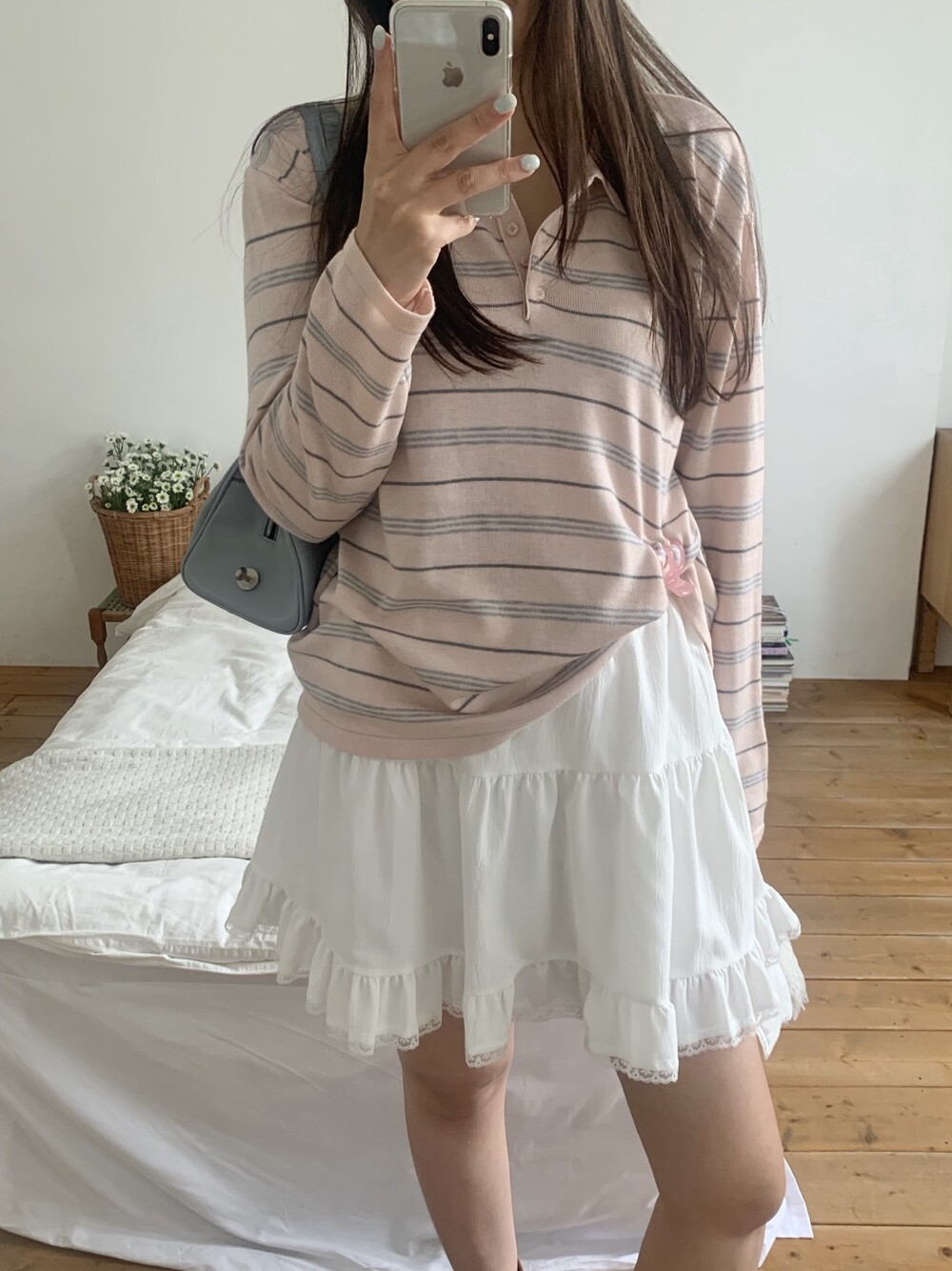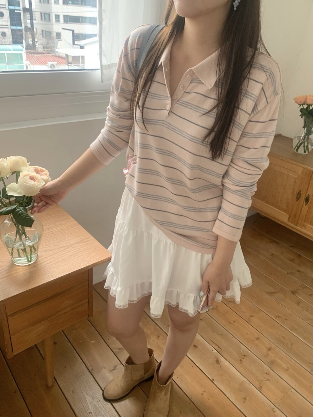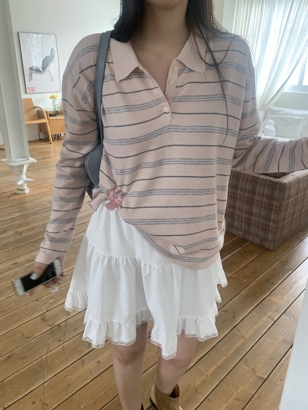 잔잔한 스트라이프 패턴이 더해져부담 없이 데일리하게 즐기기 좋은 아이템이에요.