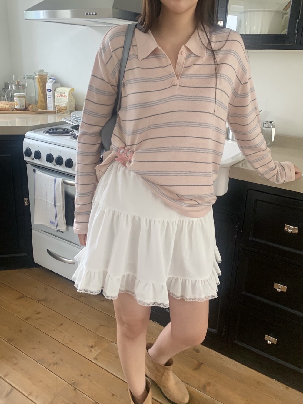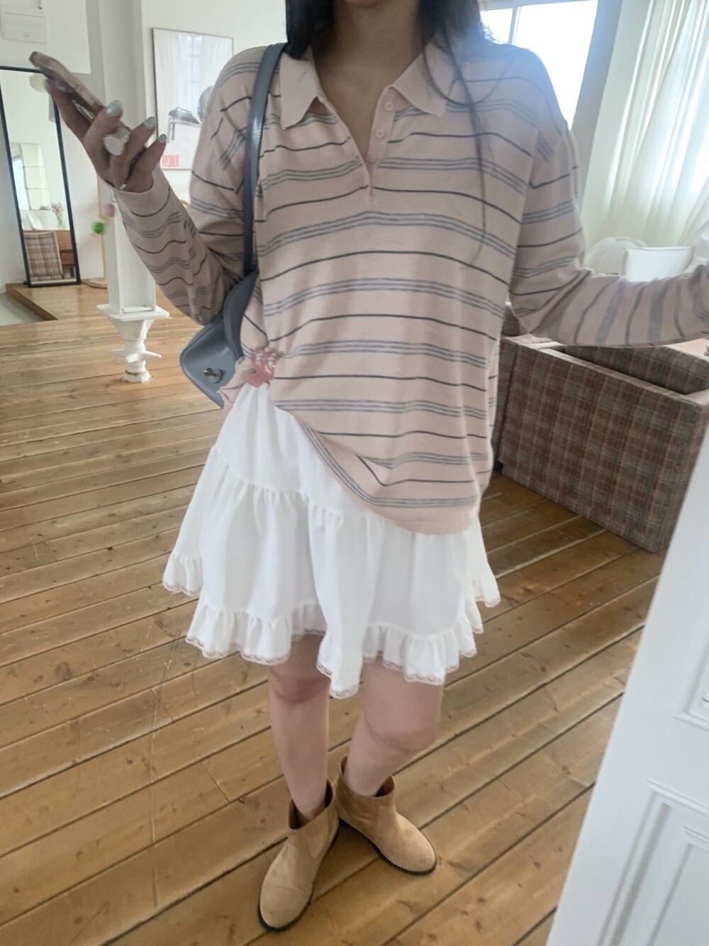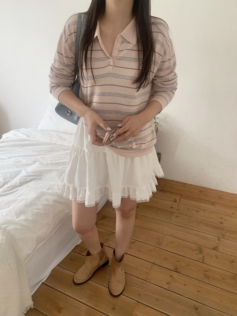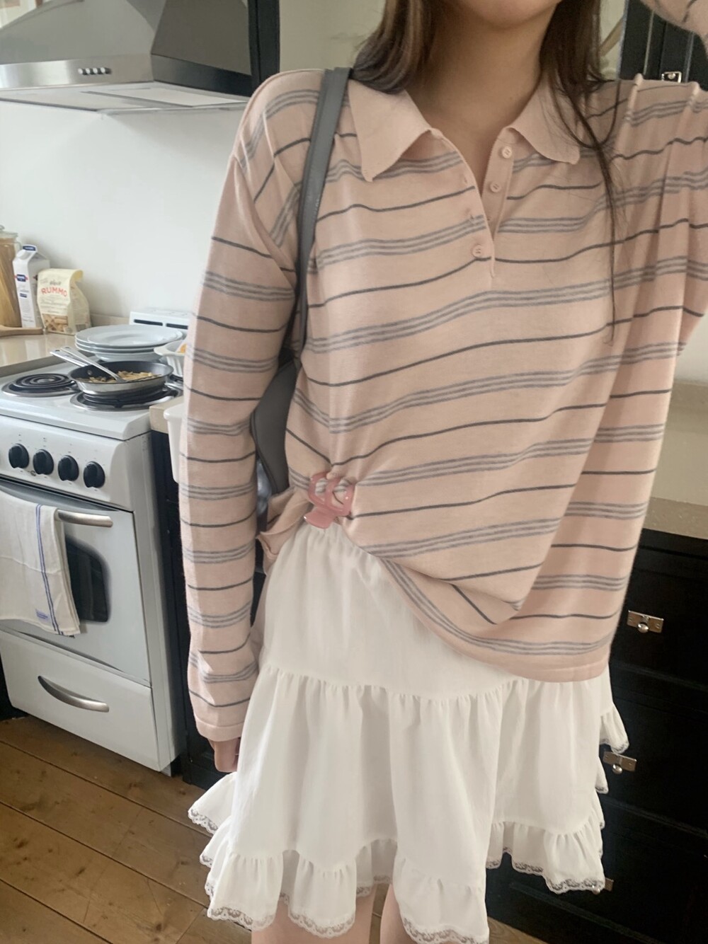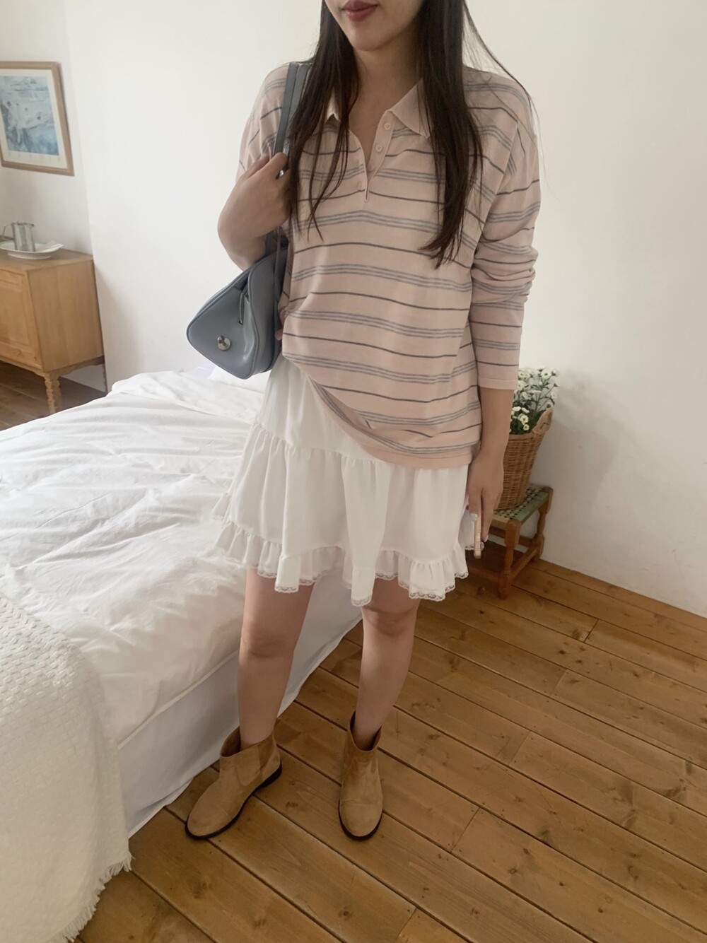 잔잔한 스트라이프 패턴이 더해져부담 없이 데일리하게 즐기기 좋은 아이템이에요.