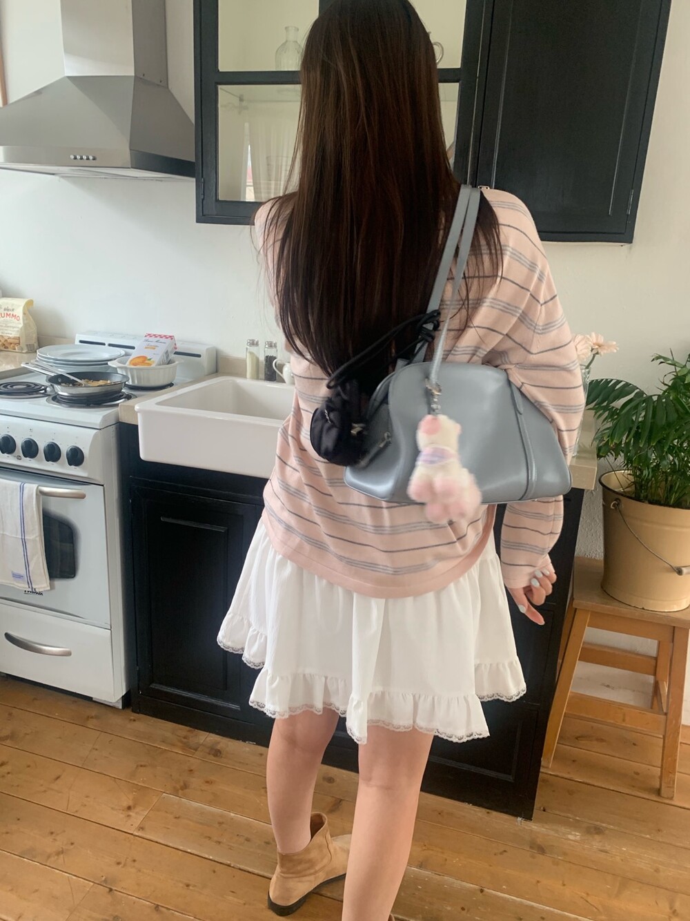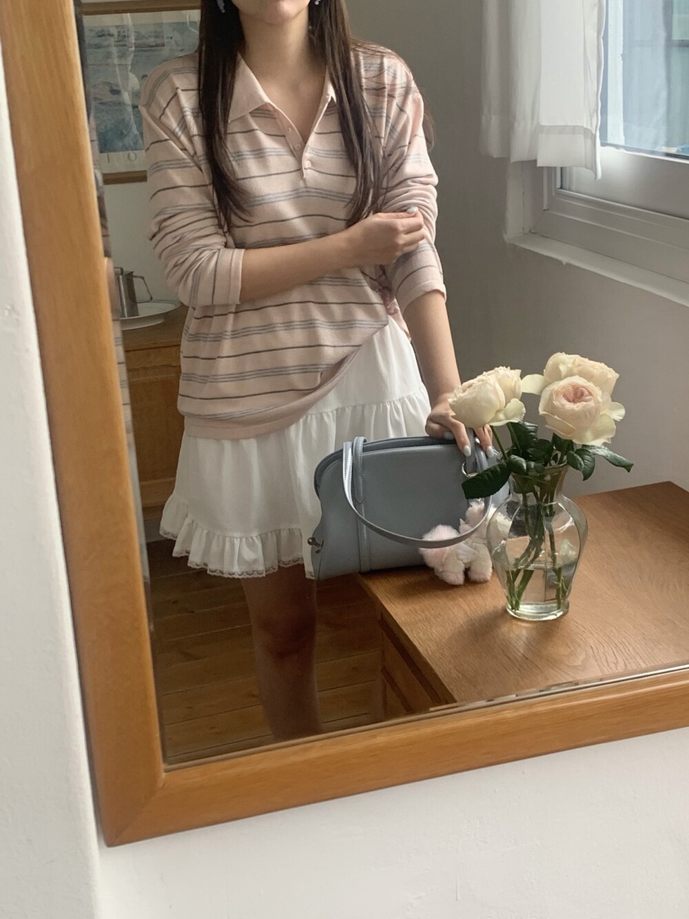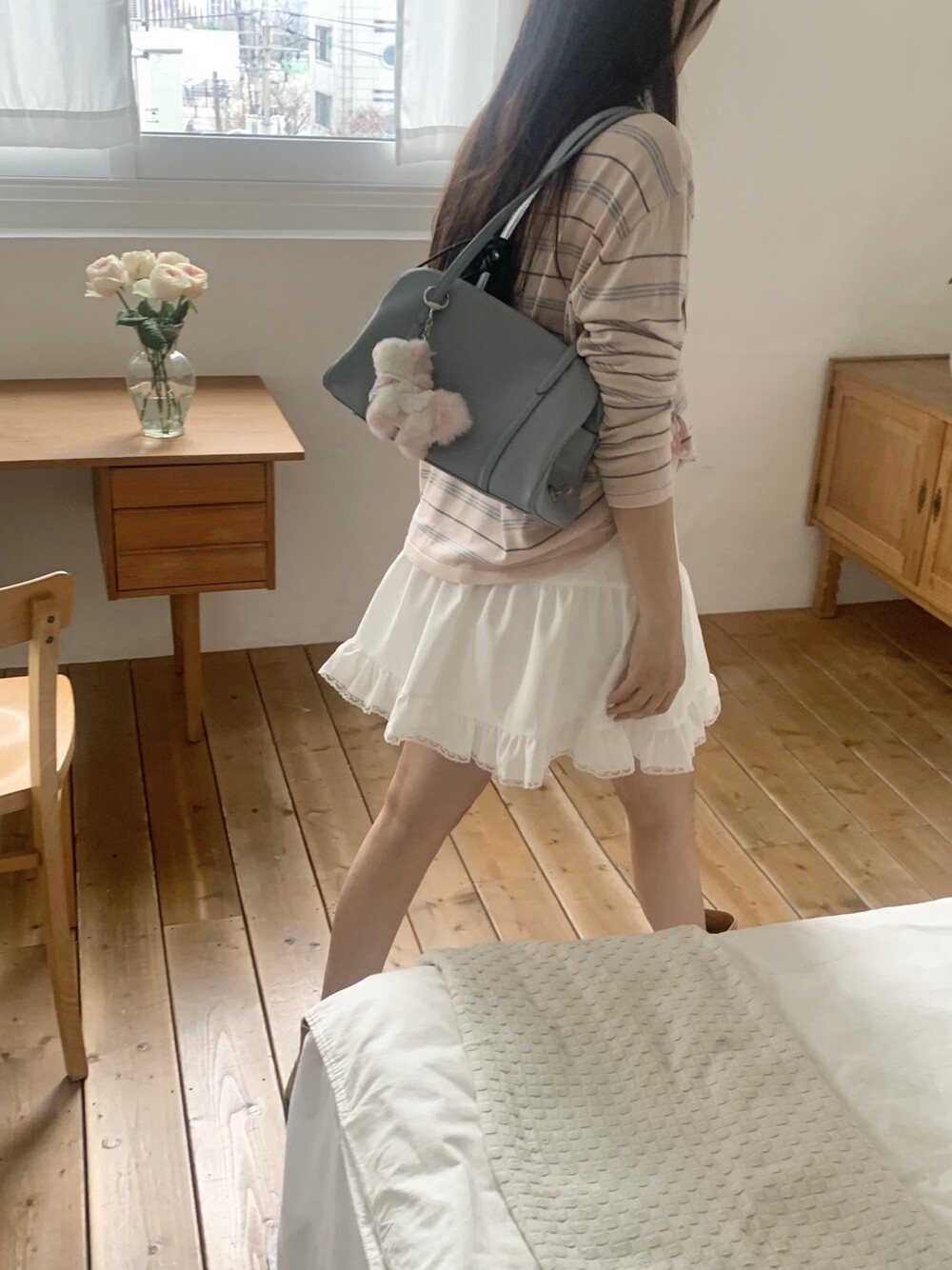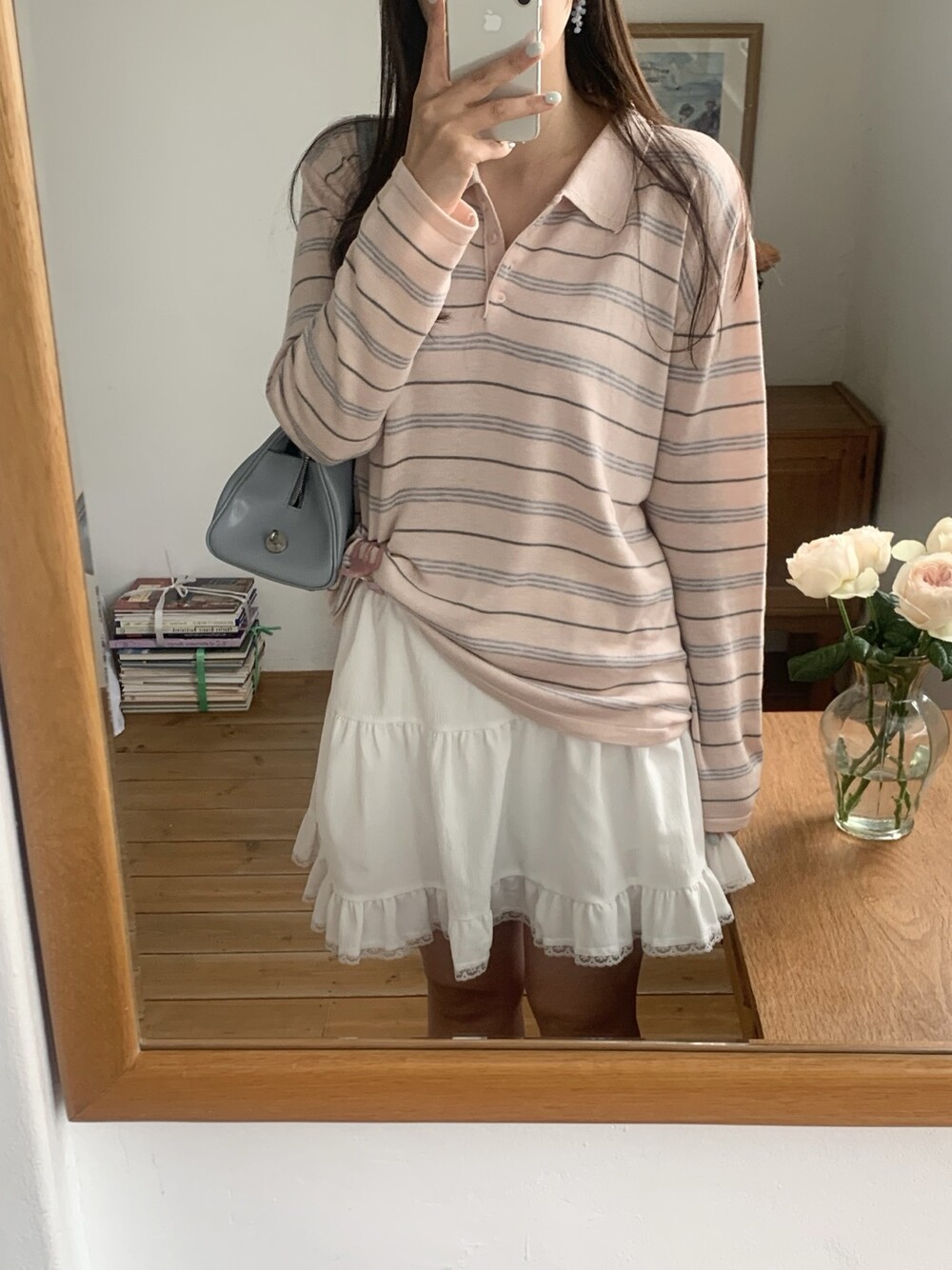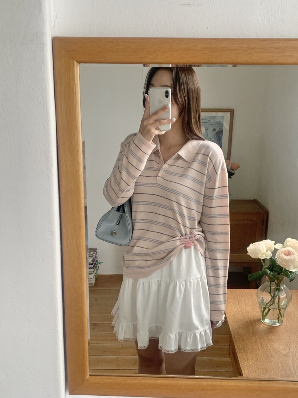 잔잔한 스트라이프 패턴이 더해져부담 없이 데일리하게 즐기기 좋은 아이템이에요.