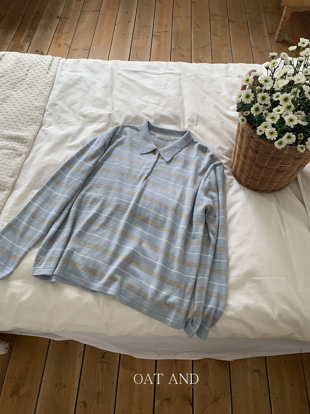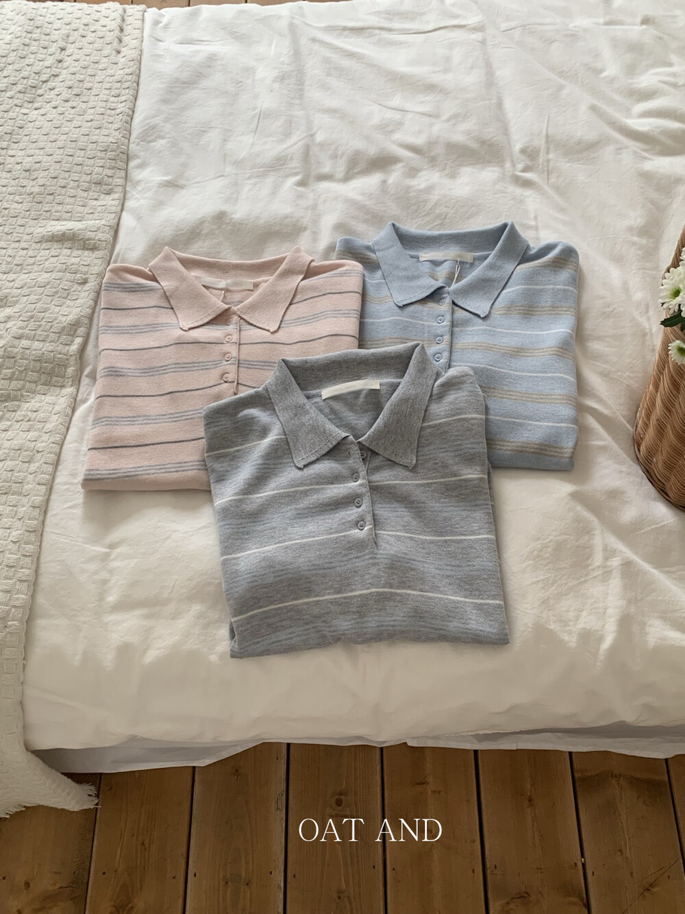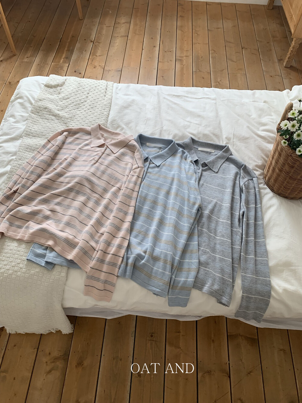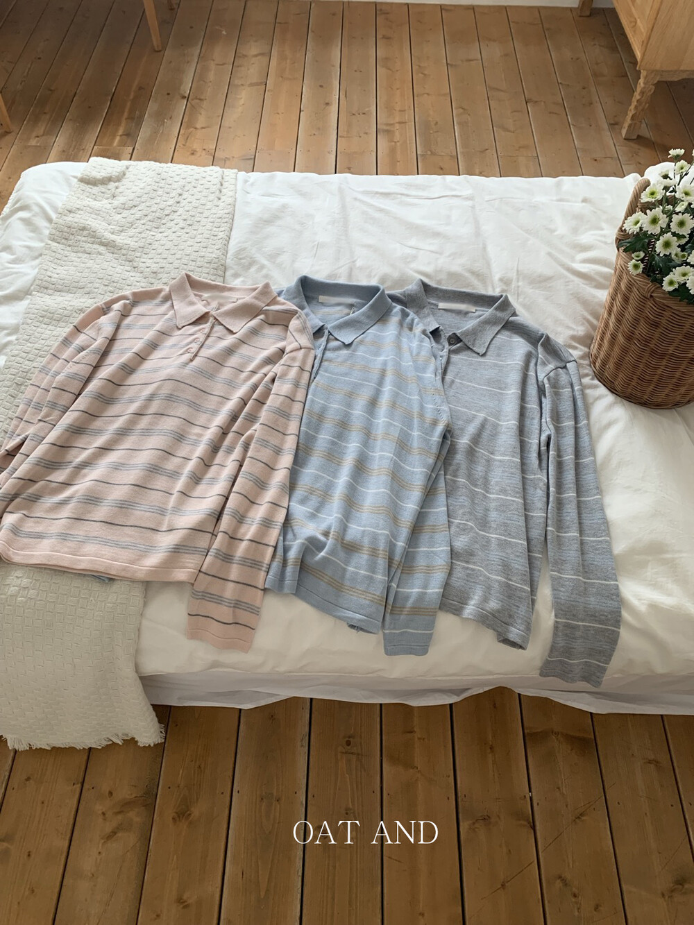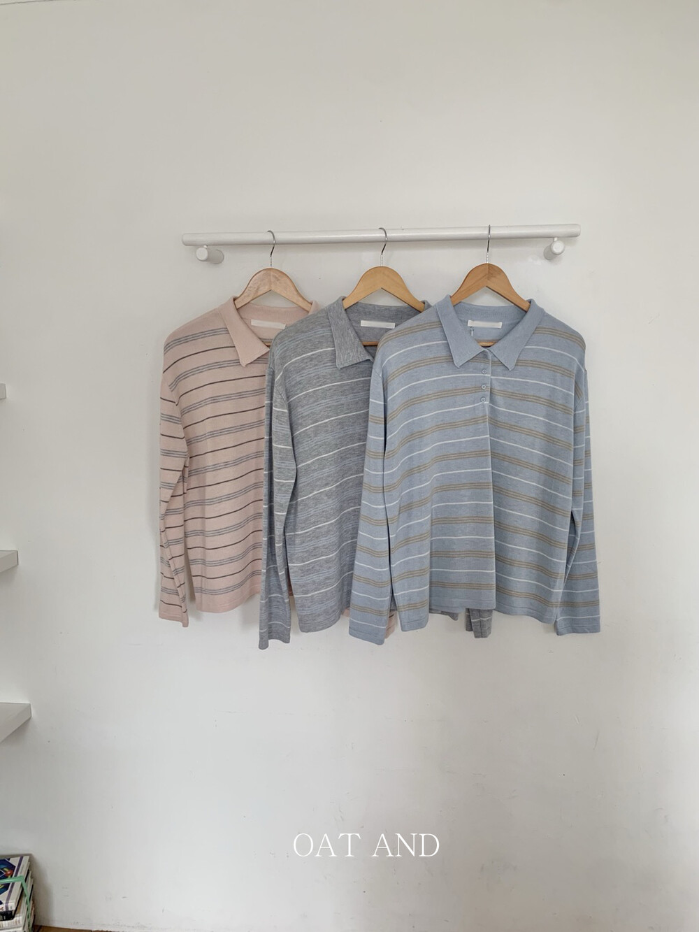 부드러운 컬러감과 내추럴한 무드가 매력적인스트라이프 카라 니트 소개해드려요.