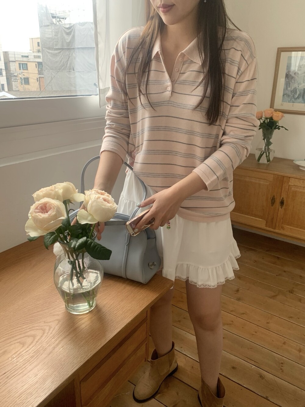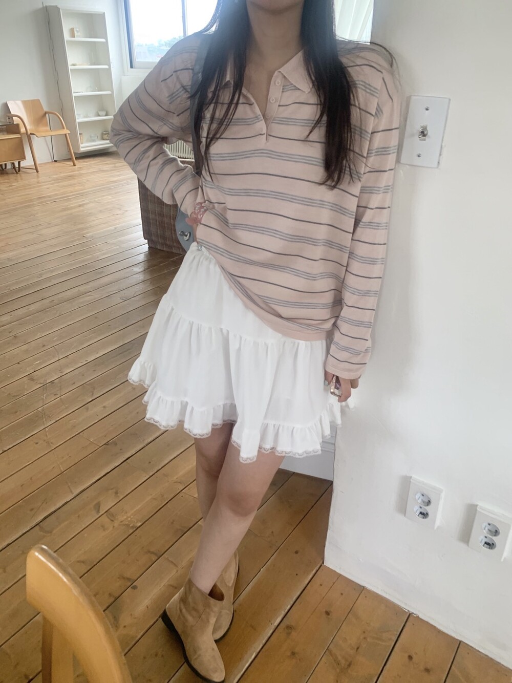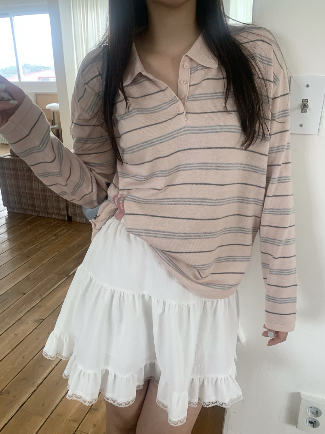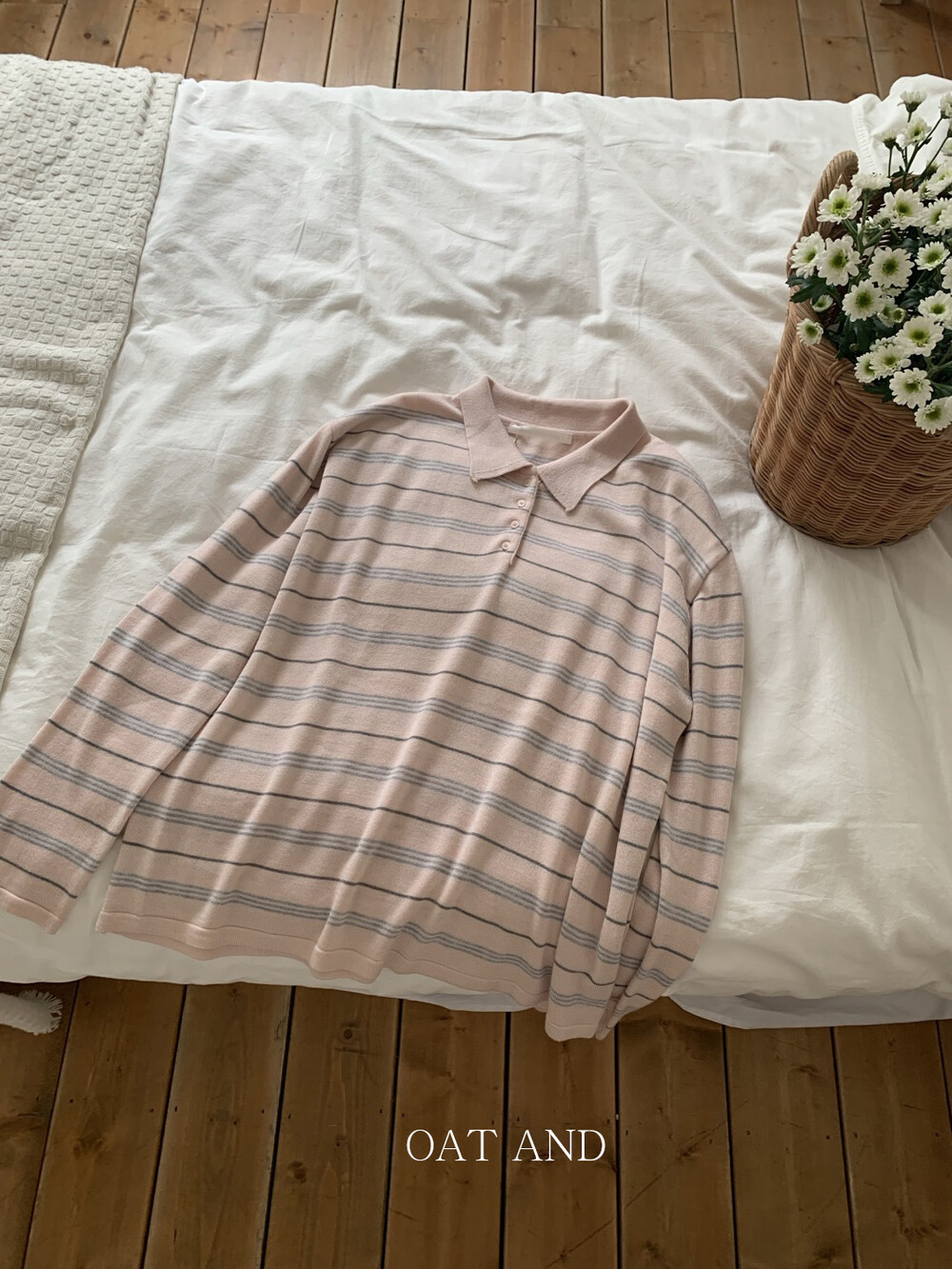 부드러운 컬러감과 내추럴한 무드가 매력적인스트라이프 카라 니트 소개해드려요.