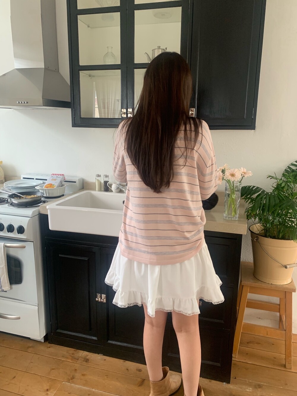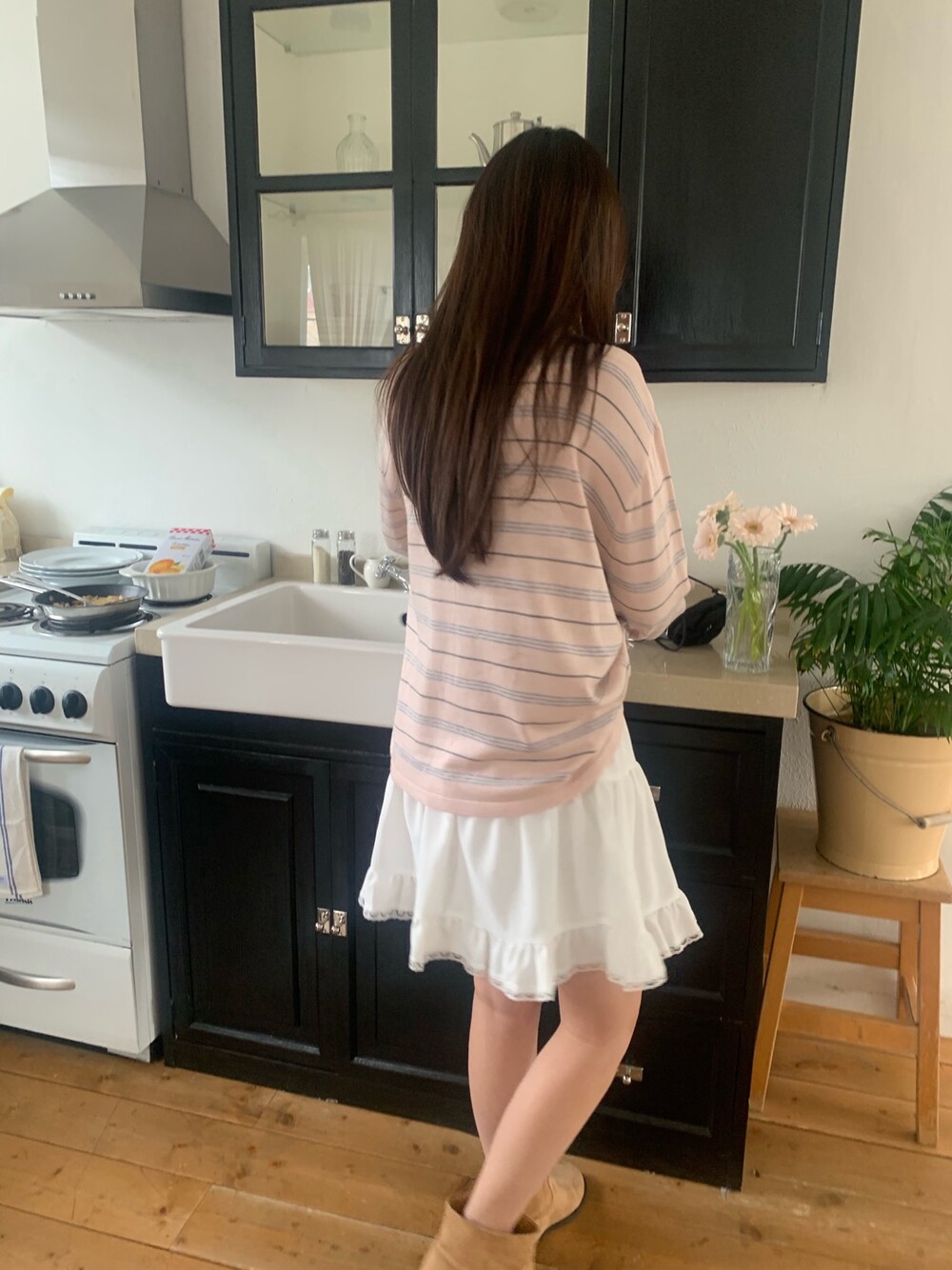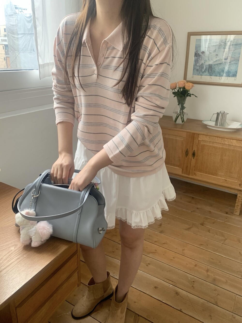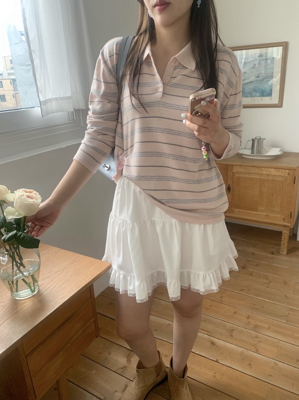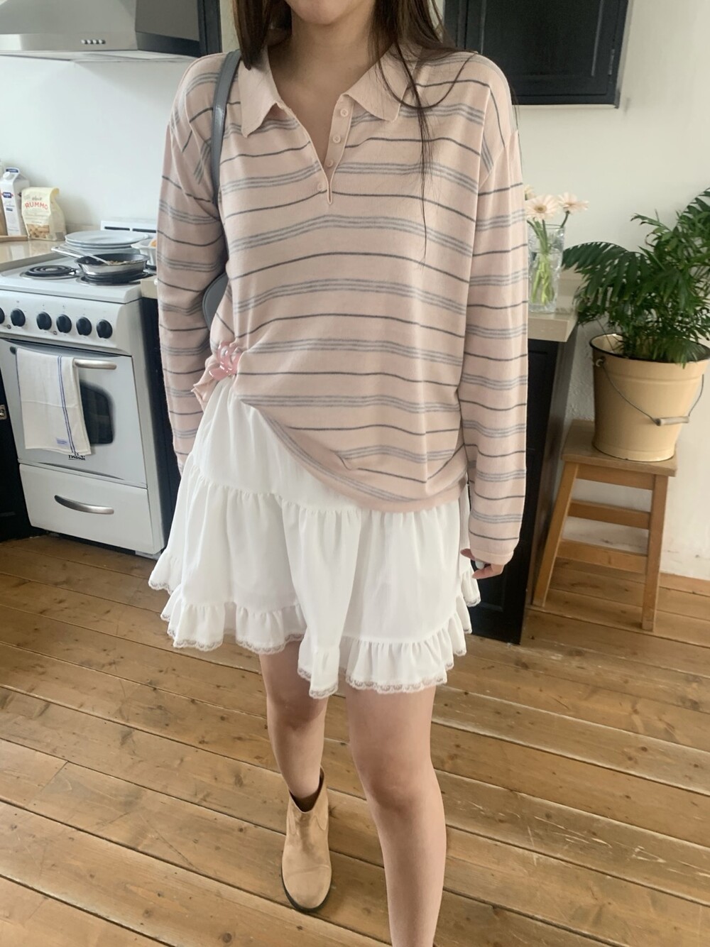 부드러운 컬러감과 내추럴한 무드가 매력적인스트라이프 카라 니트 소개해드려요.
