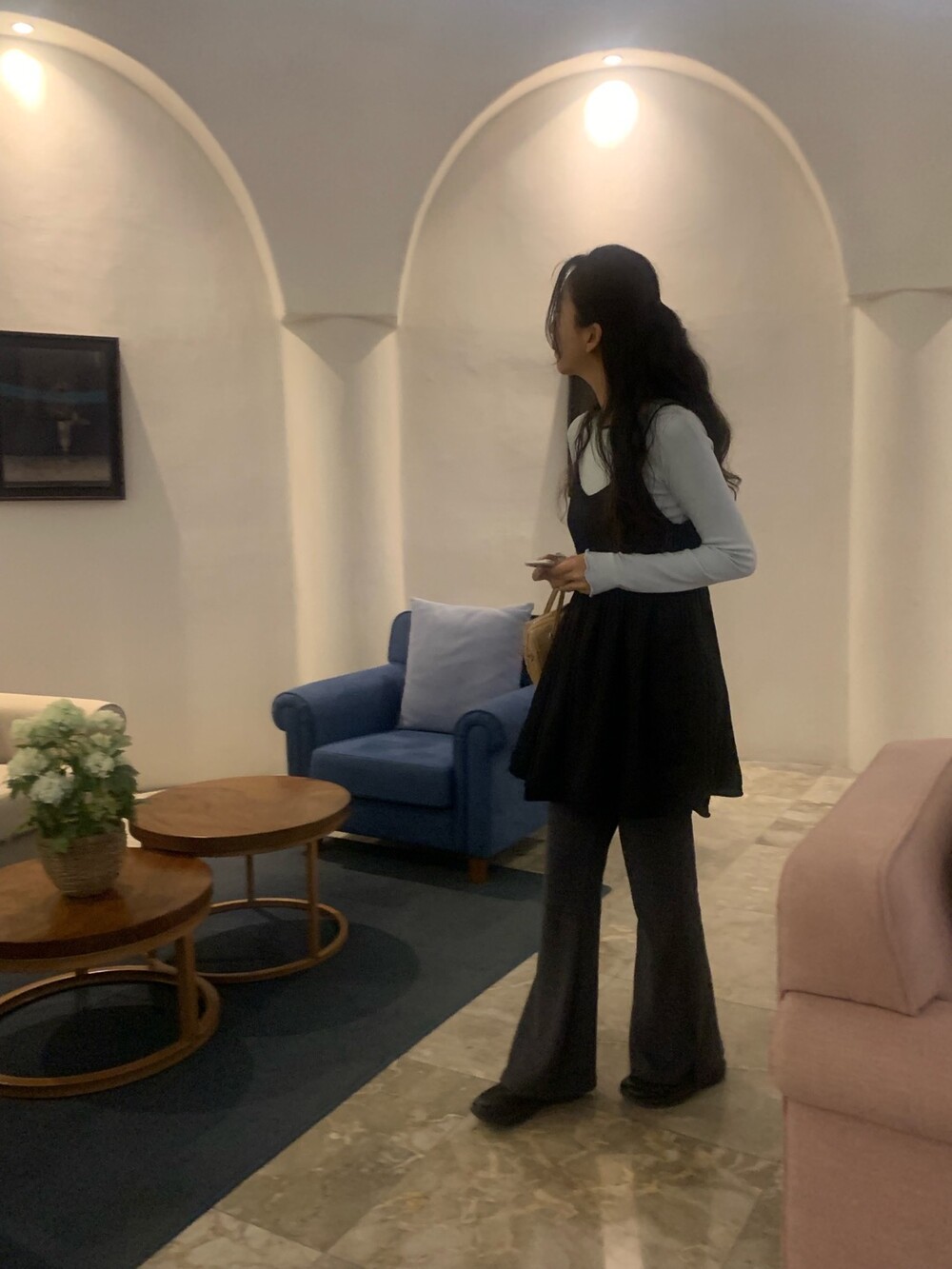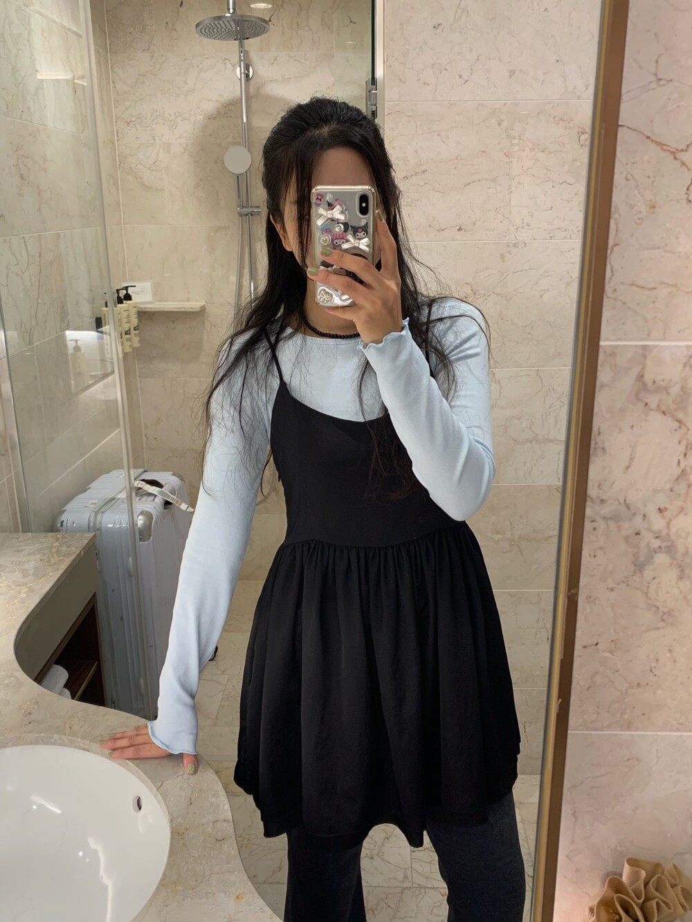 여유있는 사이즈와 안정적인 기장감의 미니원피스에요!
