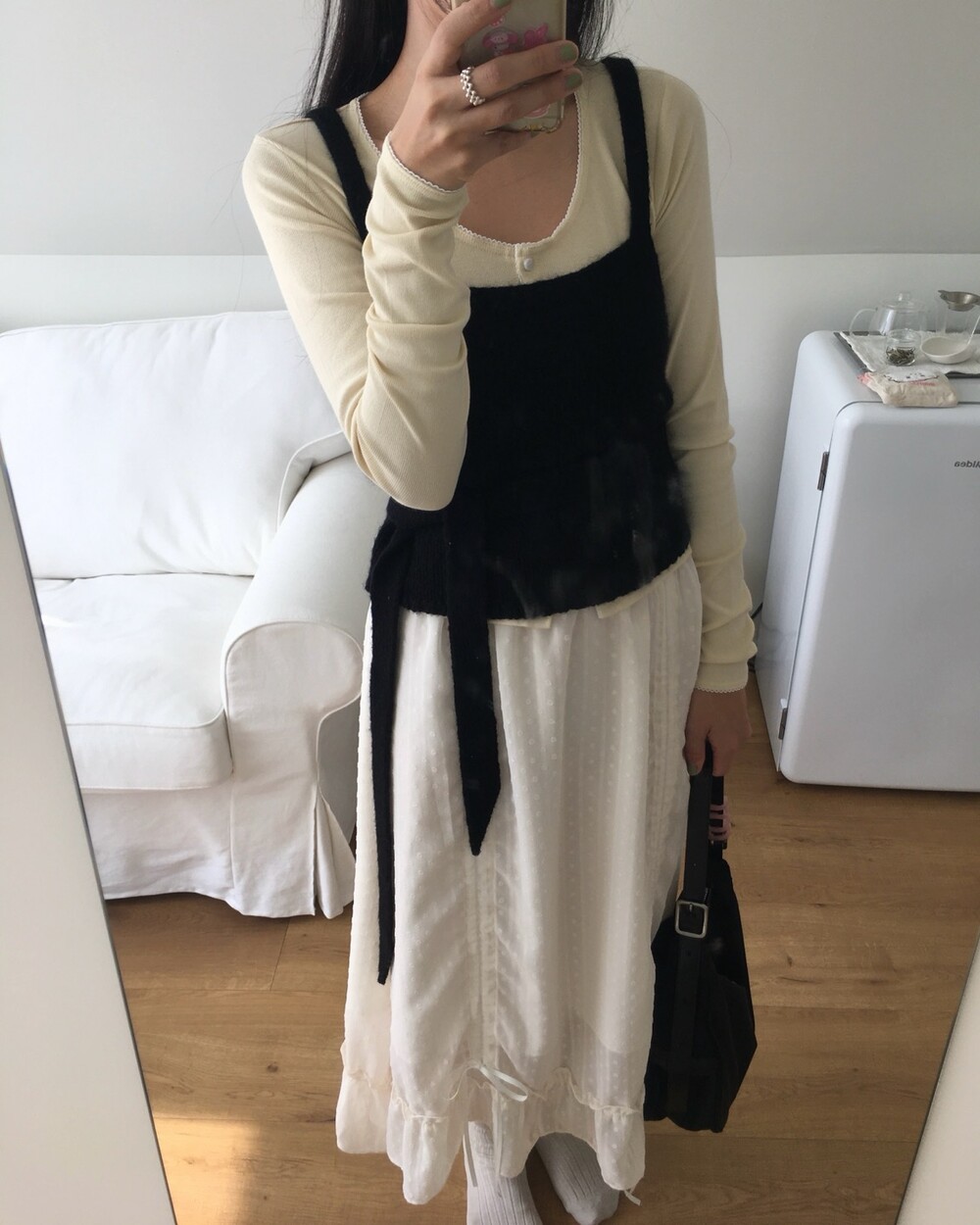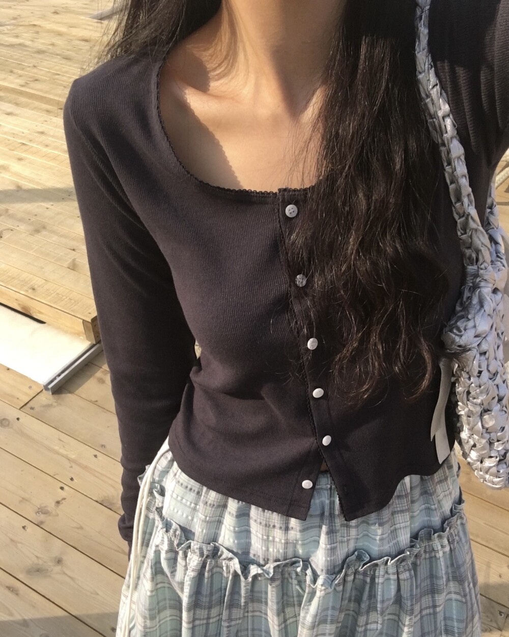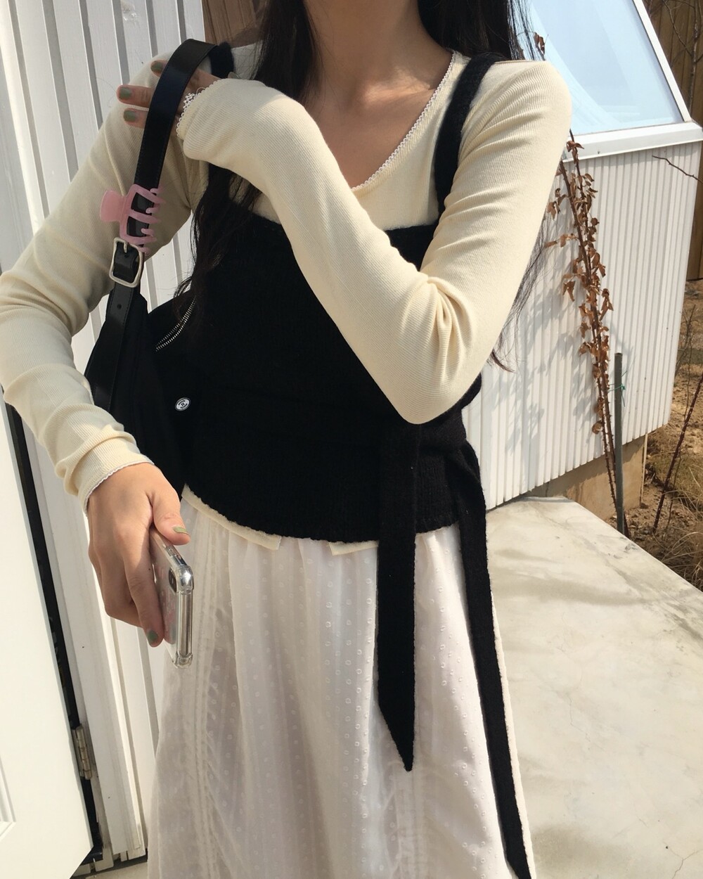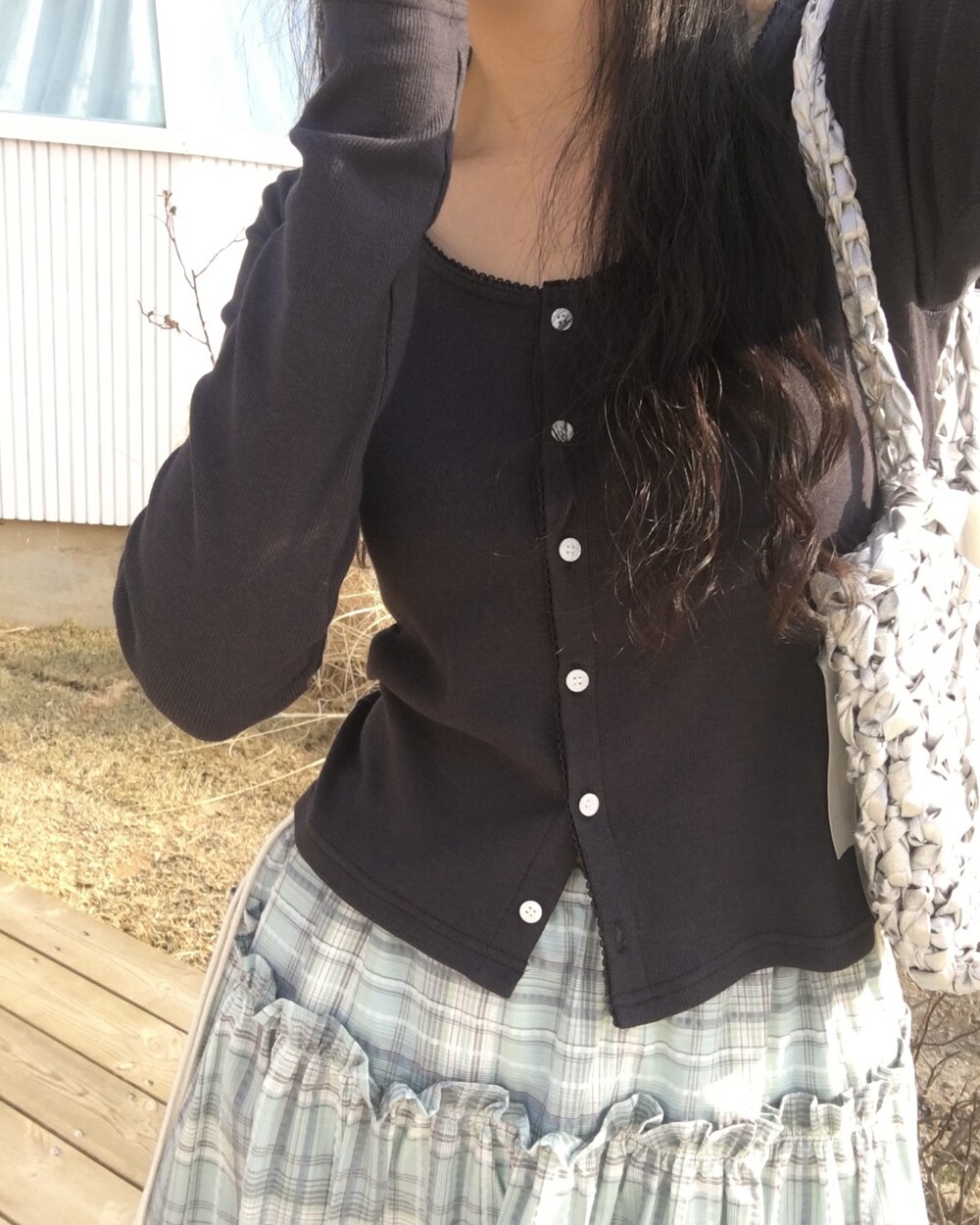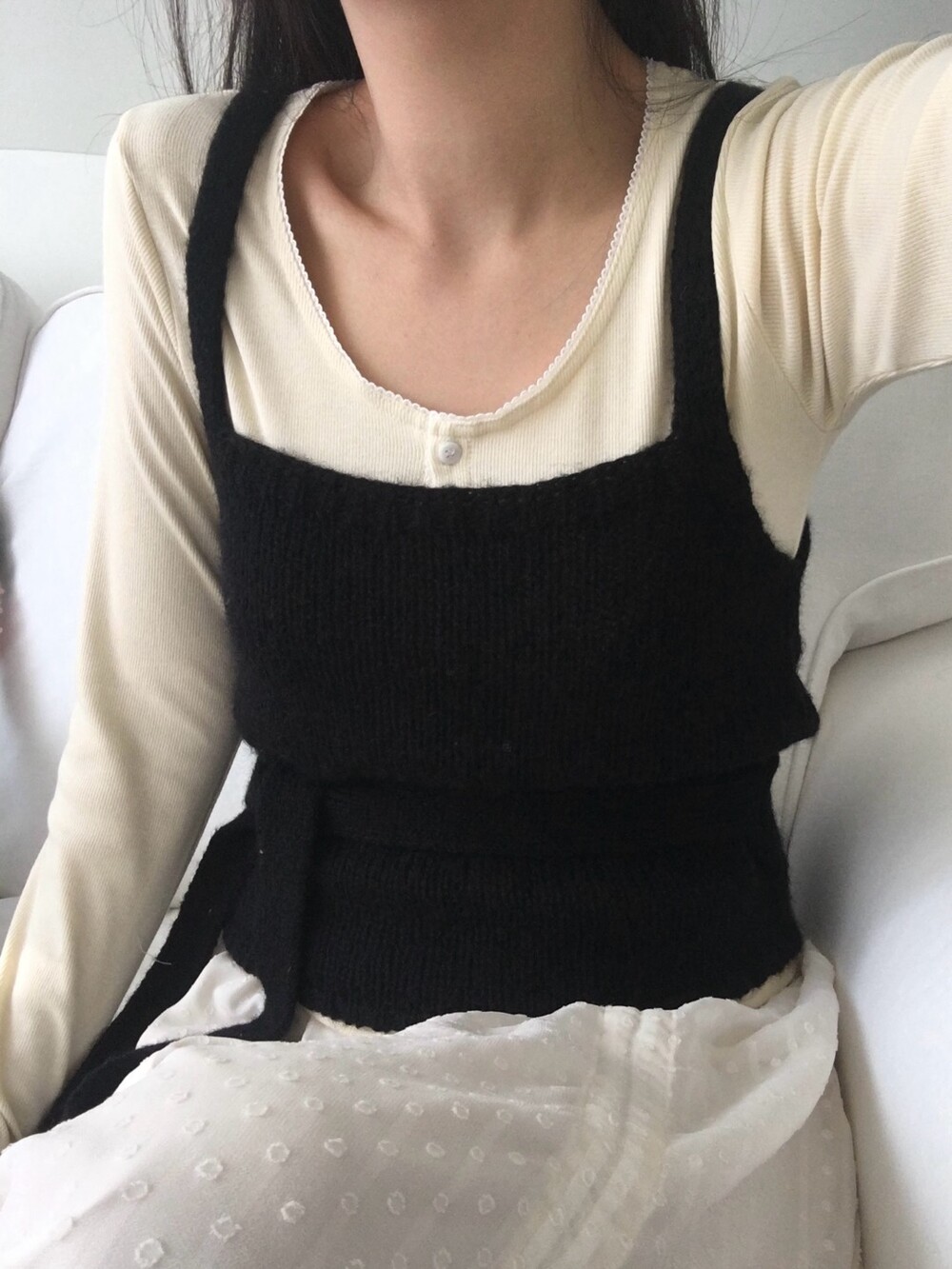 섬세한 세로 골지 원단은 바디 라인을 따라 자연스럽게 흐르며 슬림한 실루엣을 만들어준답니다.