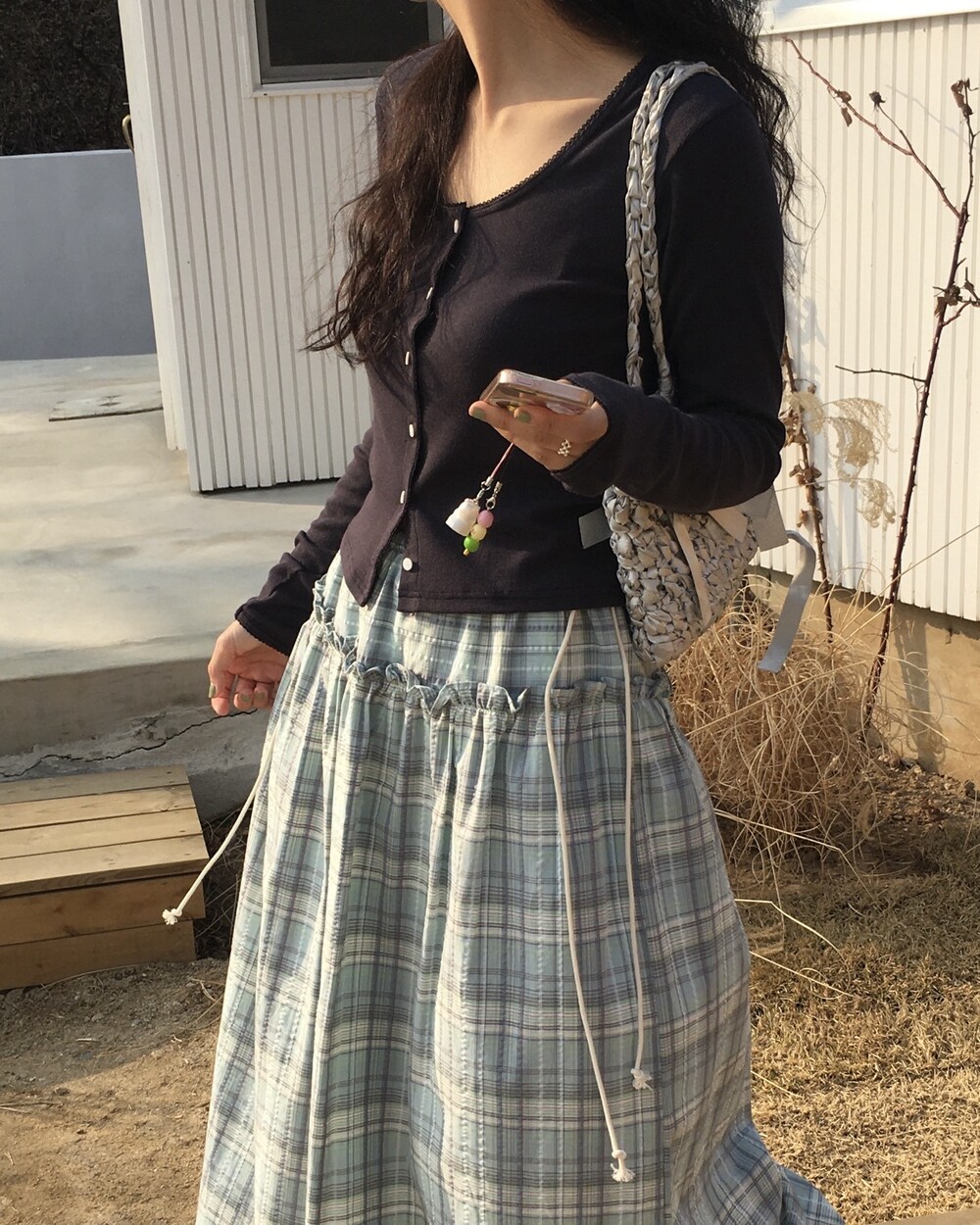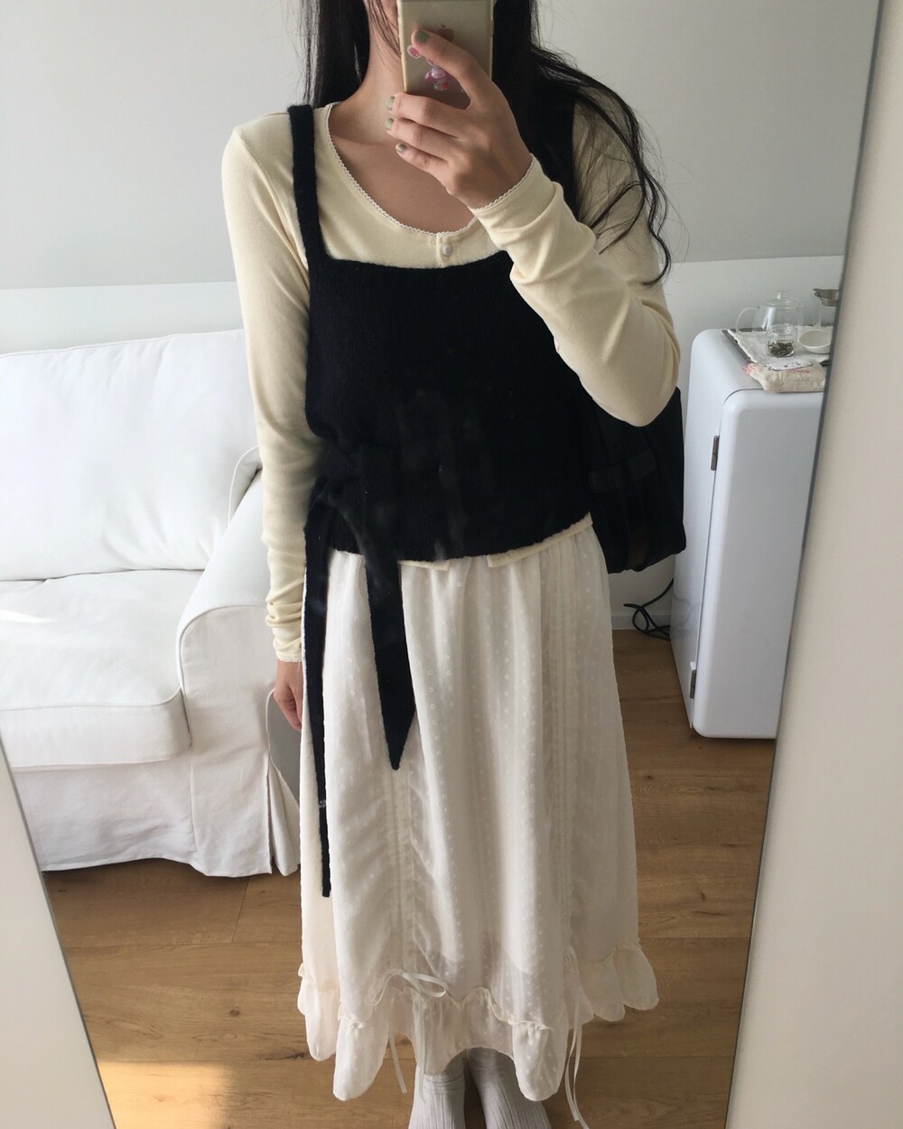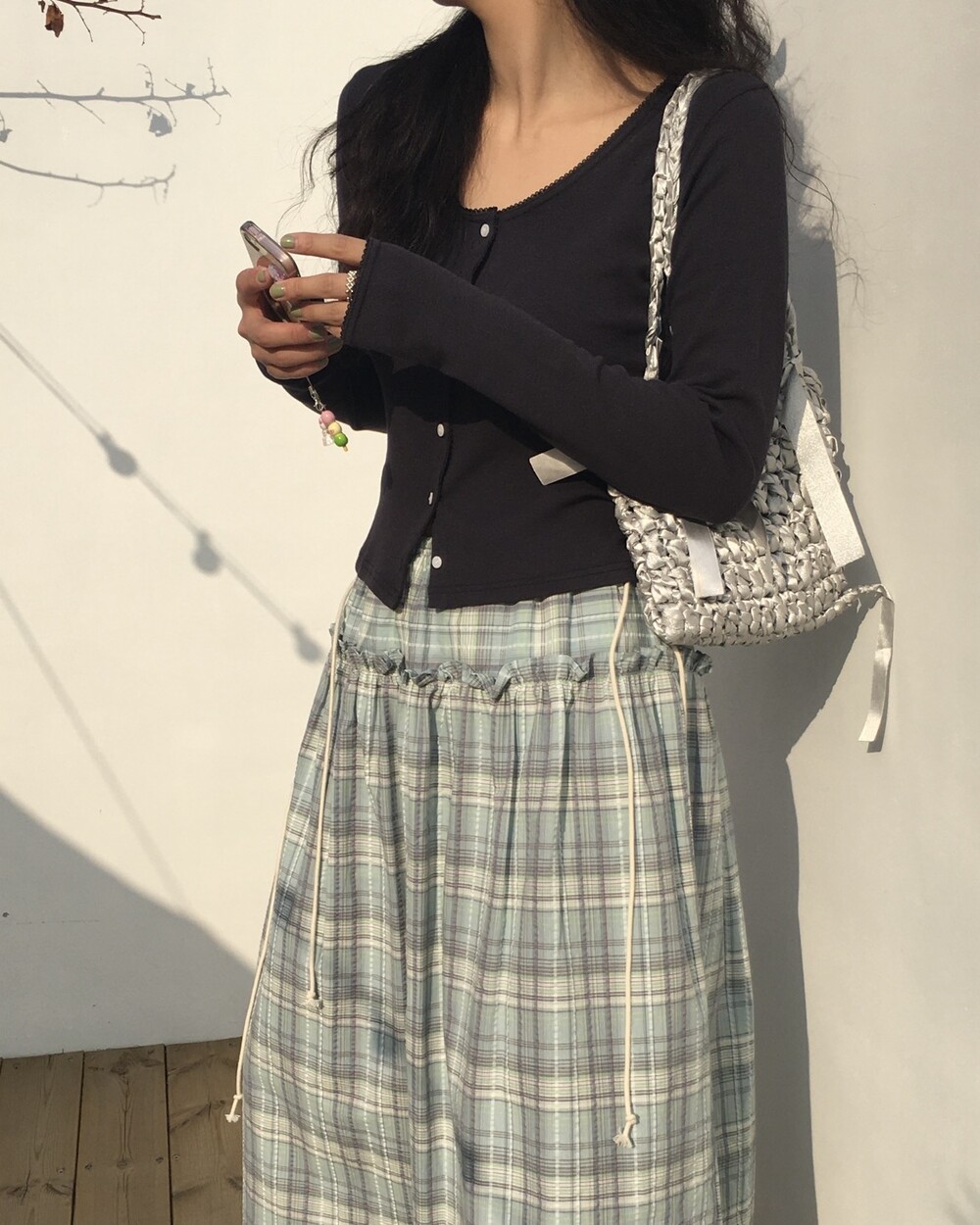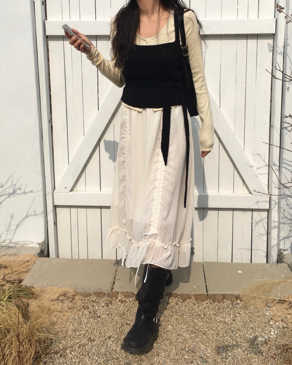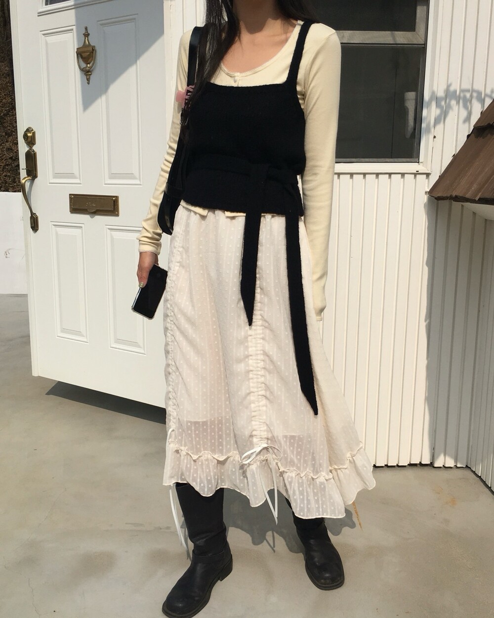섬세한 세로 골지 원단은 바디 라인을 따라 자연스럽게 흐르며 슬림한 실루엣을 만들어준답니다.