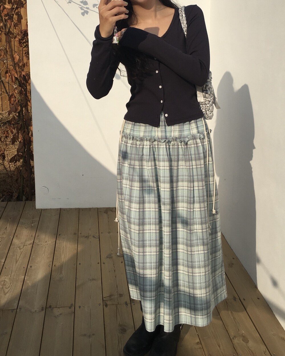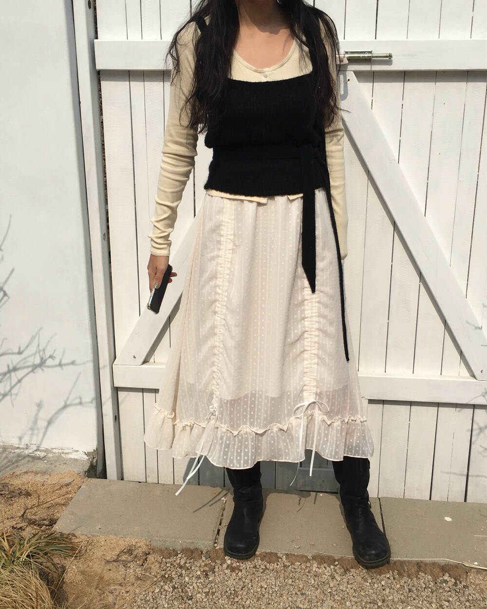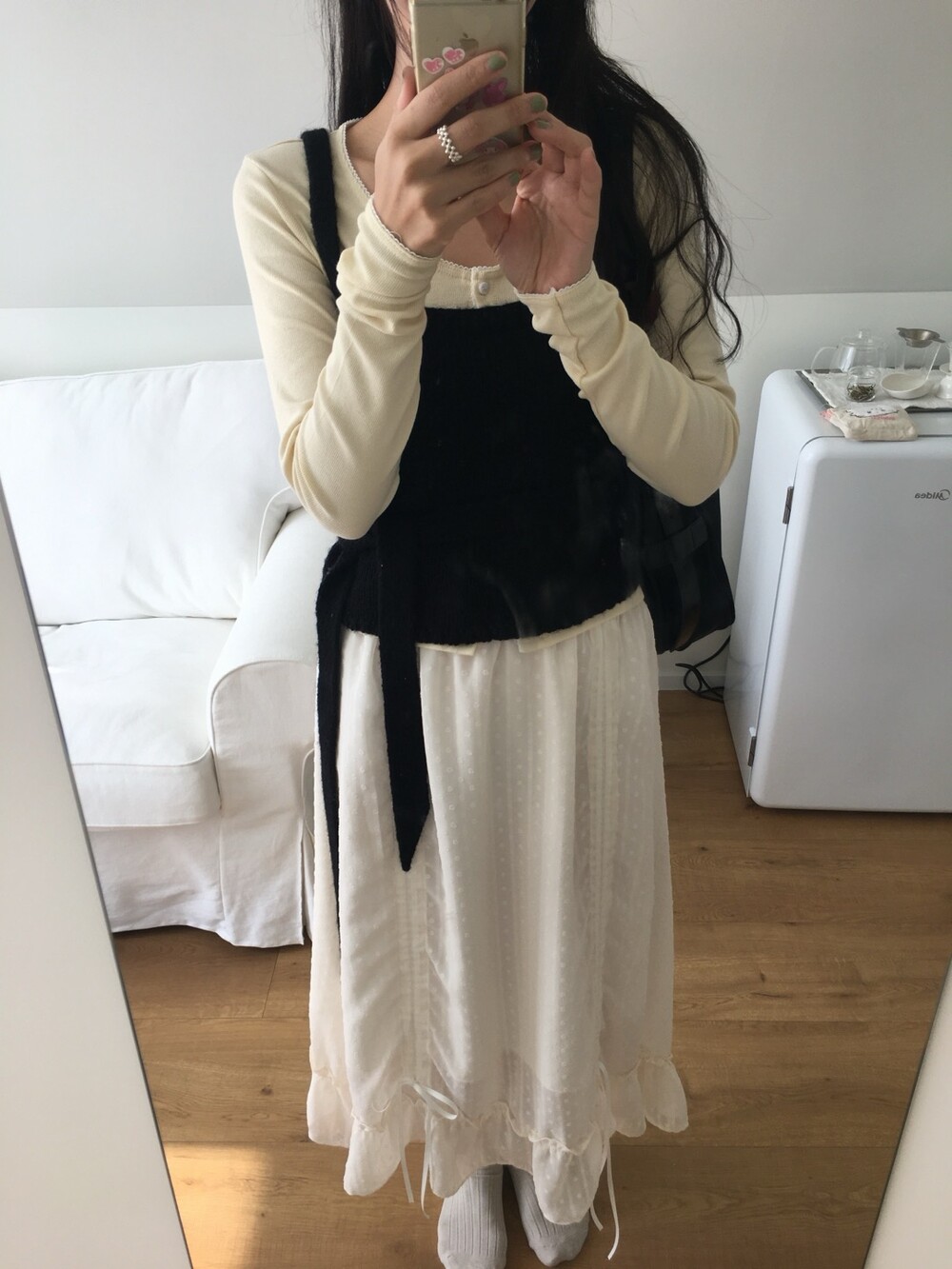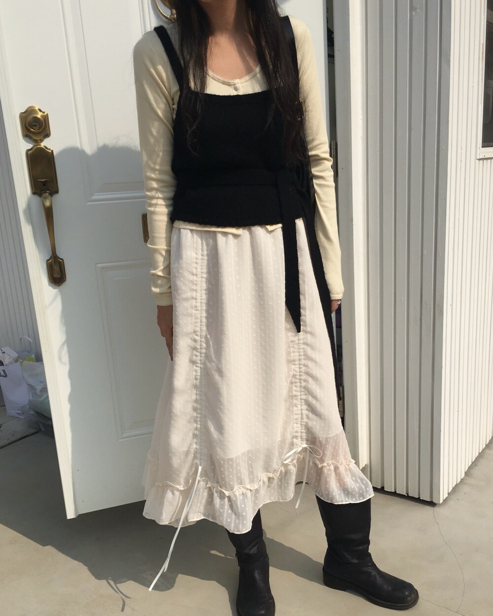 섬세한 세로 골지 원단은 바디 라인을 따라 자연스럽게 흐르며 슬림한 실루엣을 만들어준답니다.