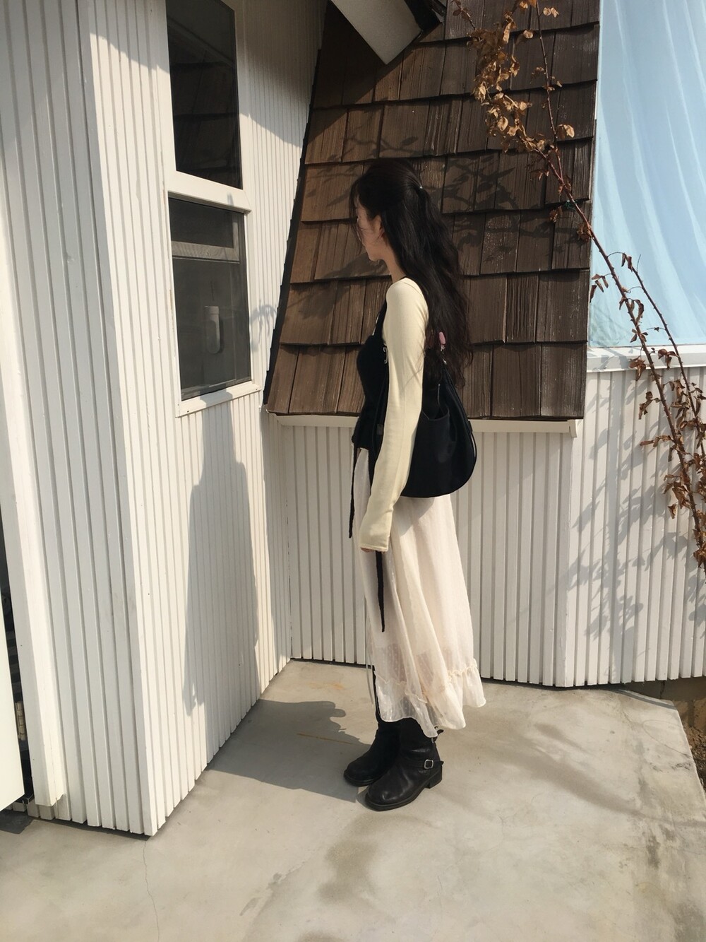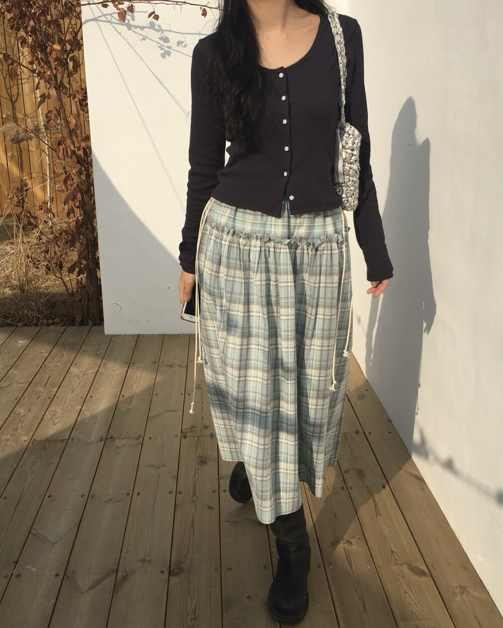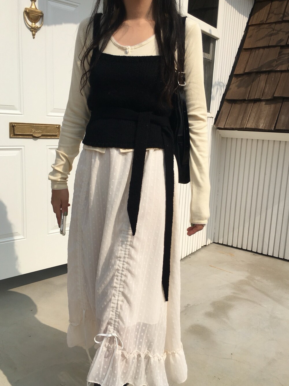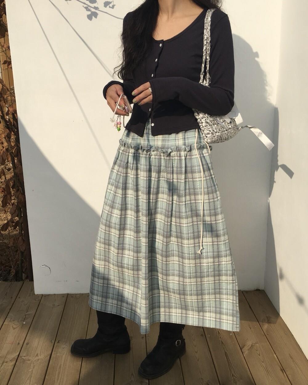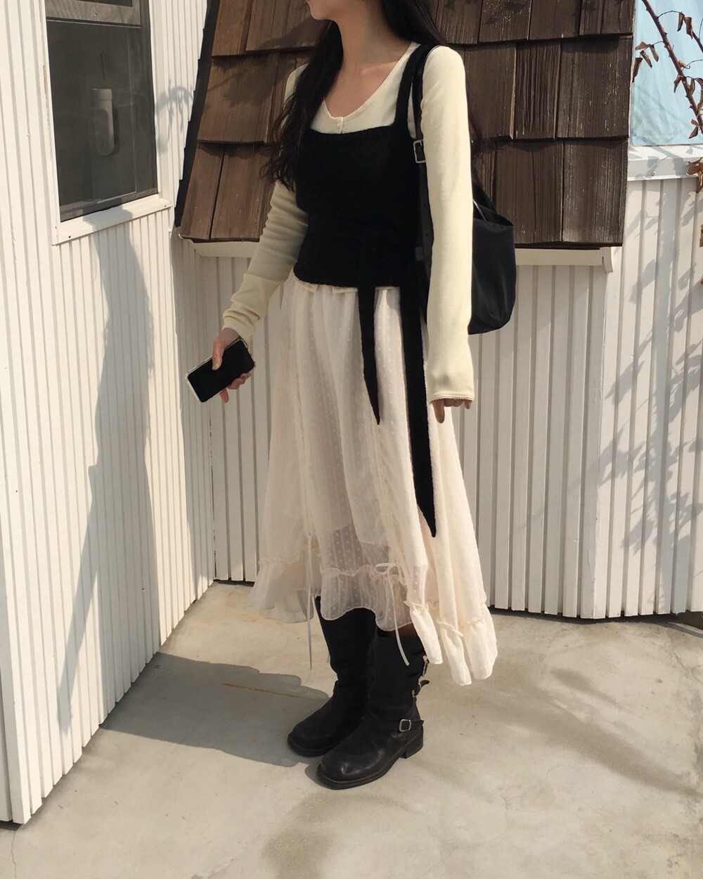 섬세한 세로 골지 원단은 바디 라인을 따라 자연스럽게 흐르며 슬림한 실루엣을 만들어준답니다.