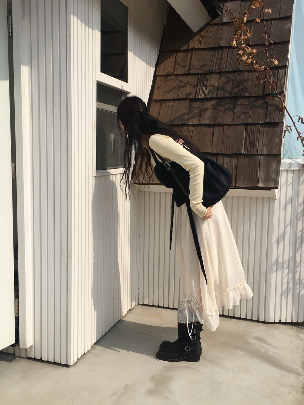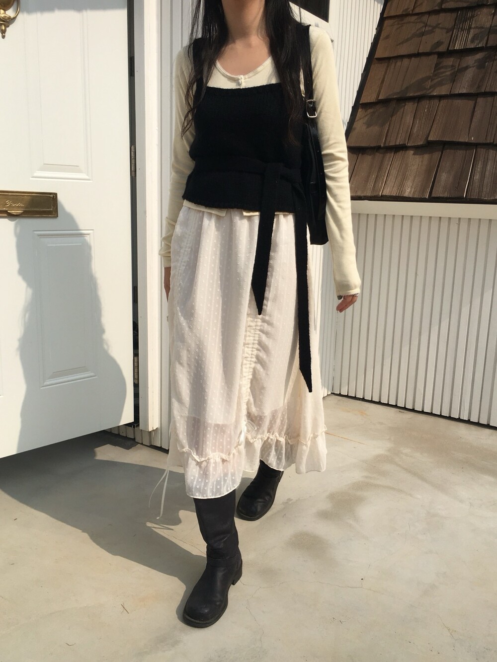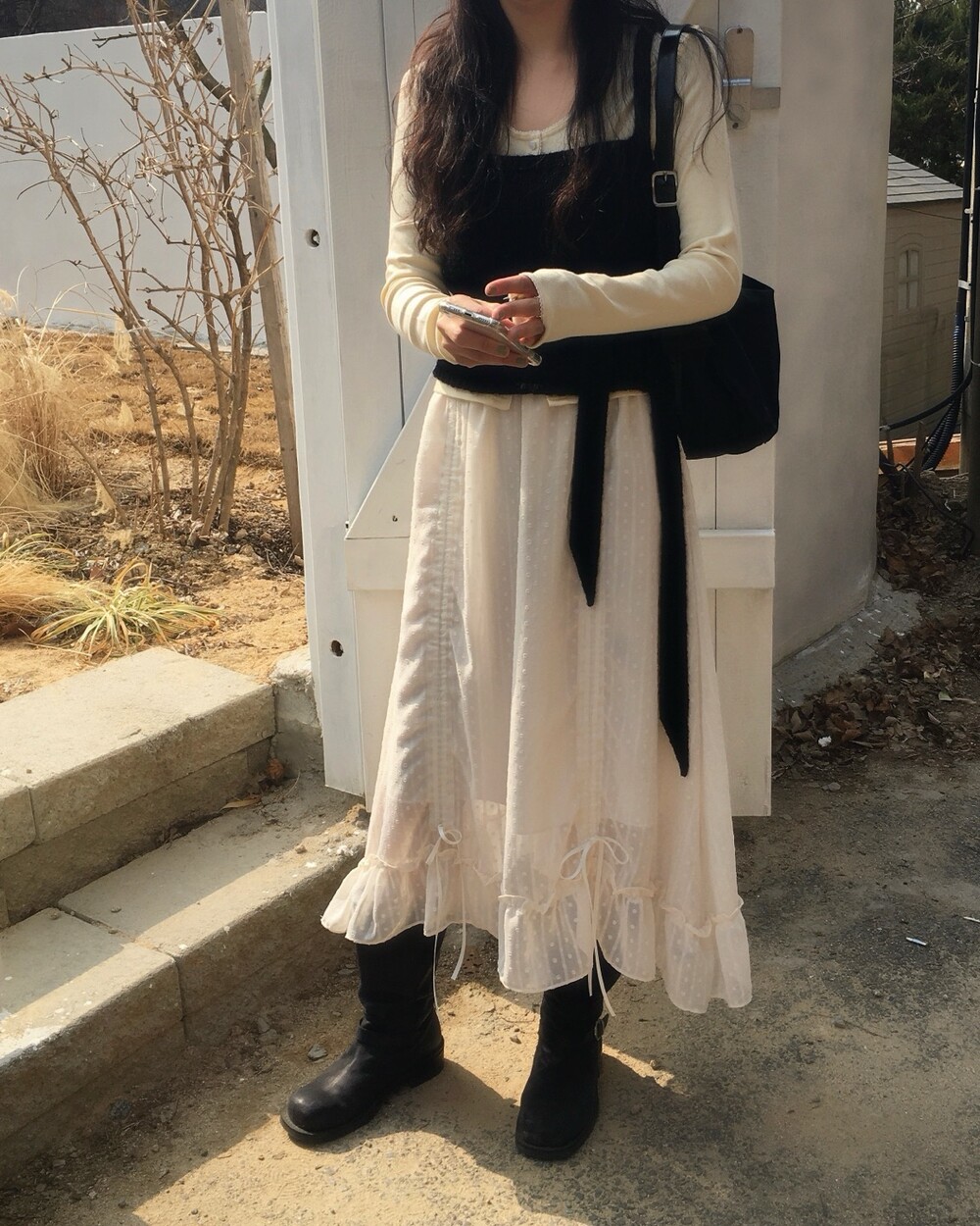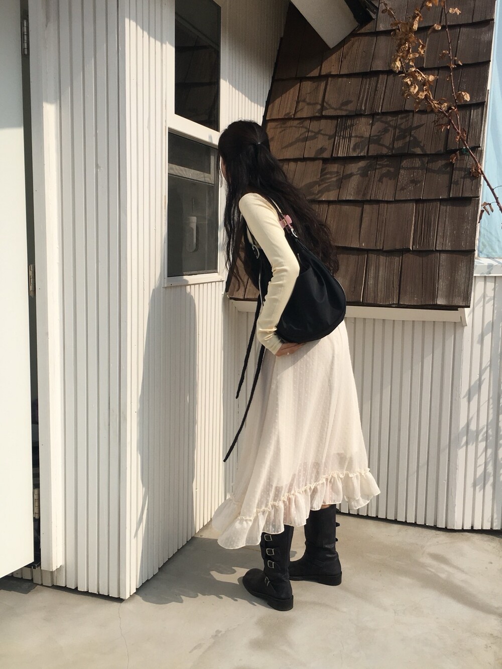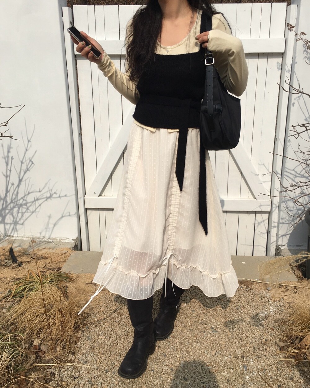 섬세한 세로 골지 원단은 바디 라인을 따라 자연스럽게 흐르며 슬림한 실루엣을 만들어준답니다.