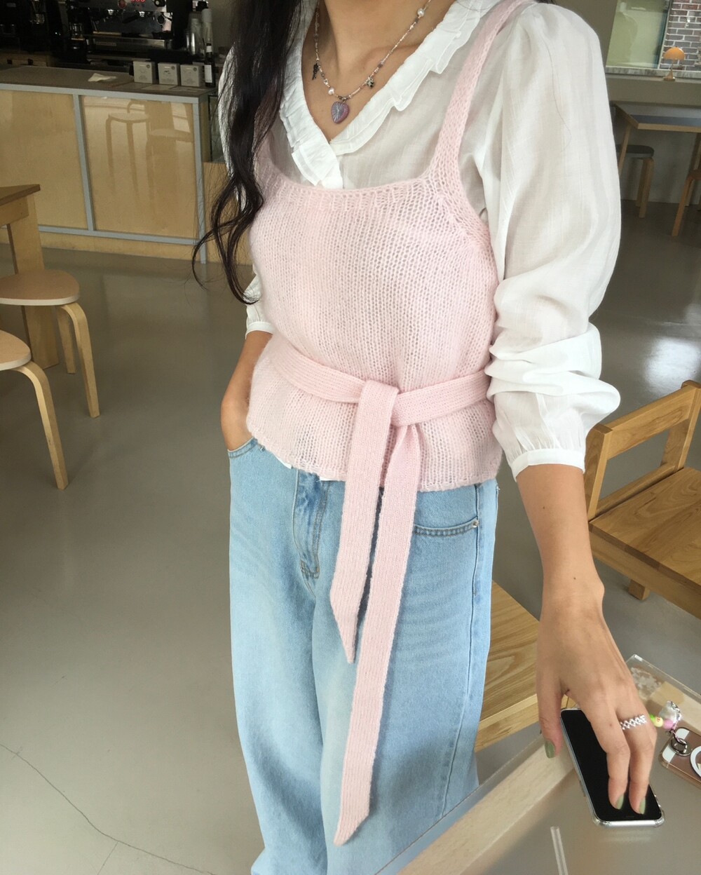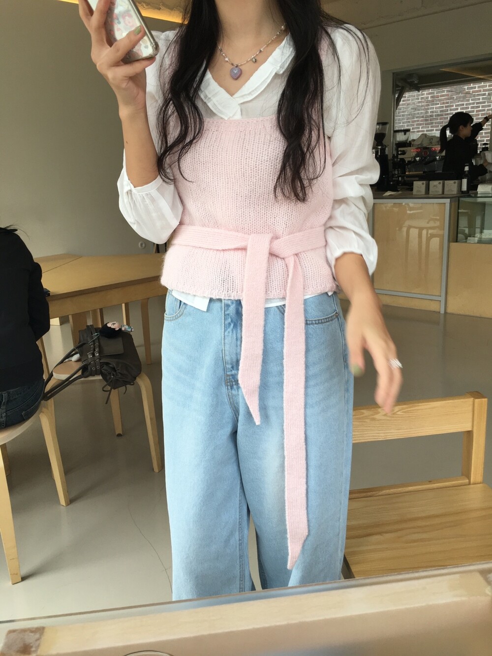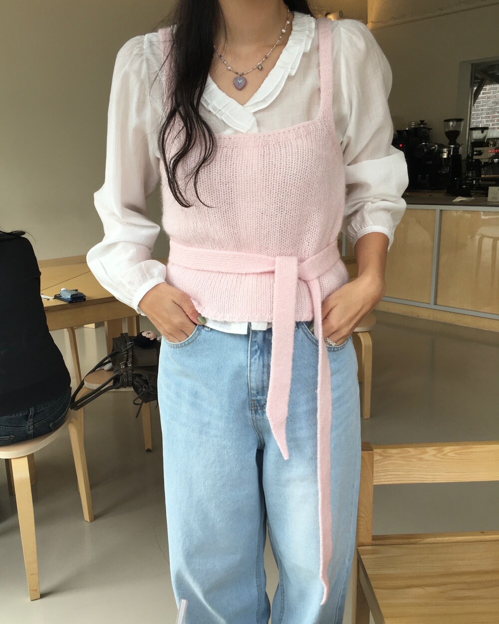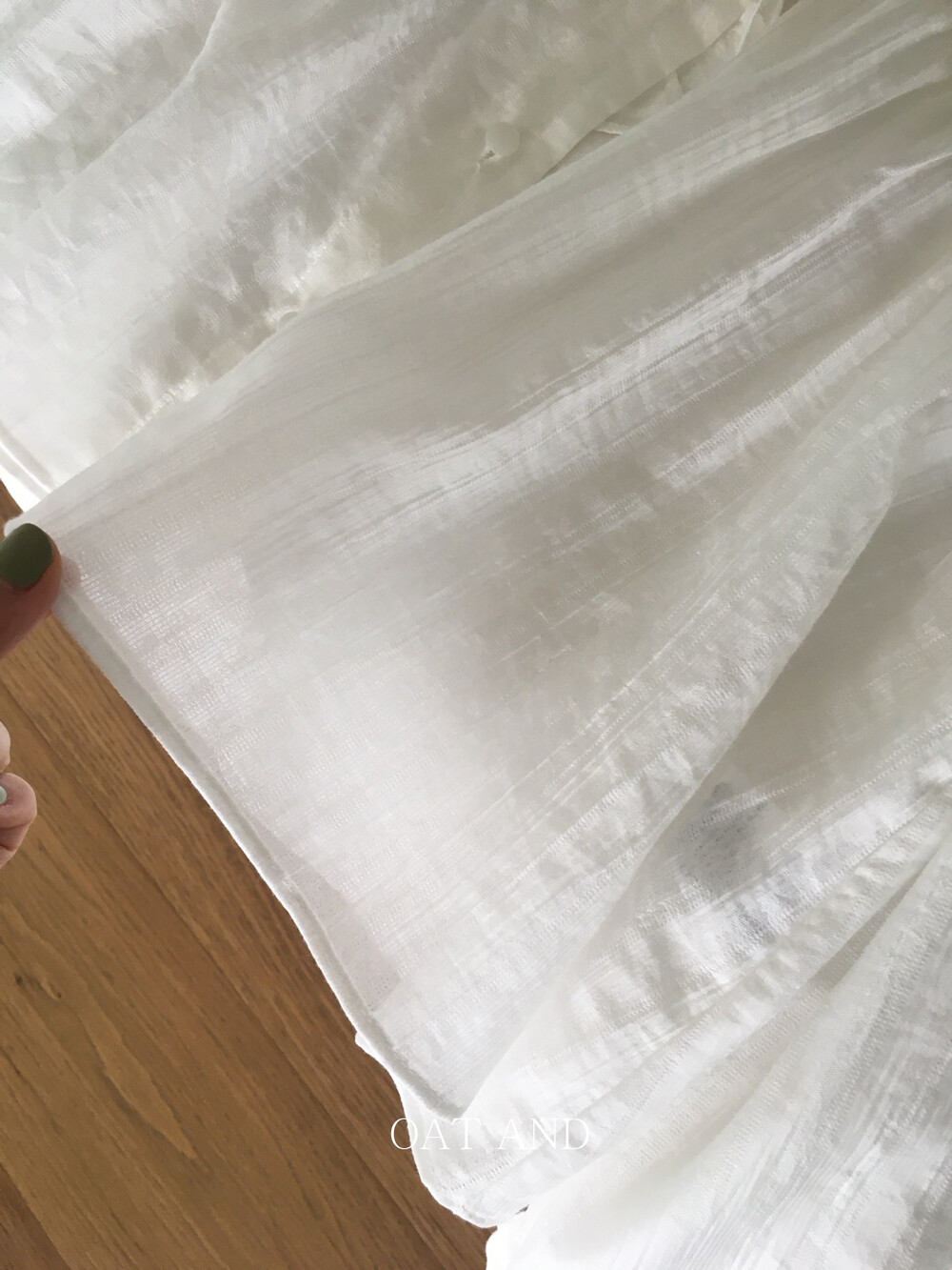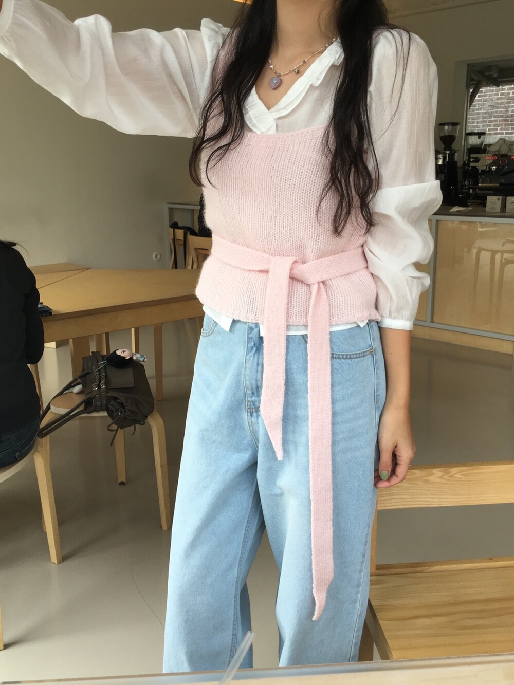 넥라인을 따라 더해진 프릴 디테일이 얼굴선을 부드럽게 만들어주고, 자연스럽게 시선을 위로 끌어줘서 더욱 여리한 느낌을 줘요.