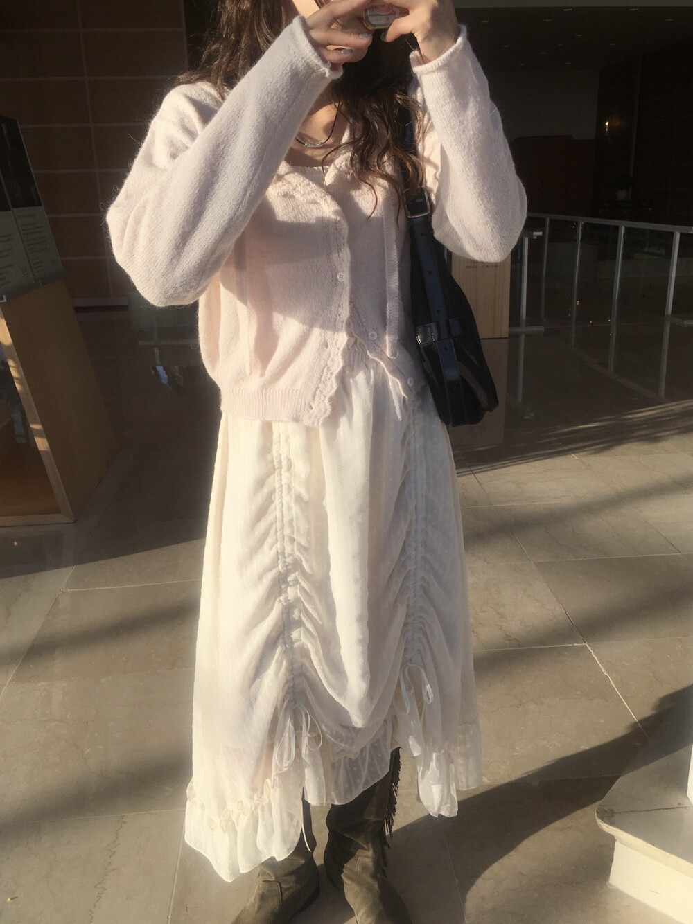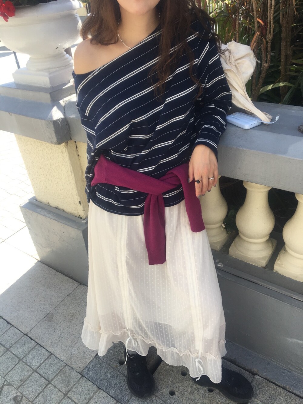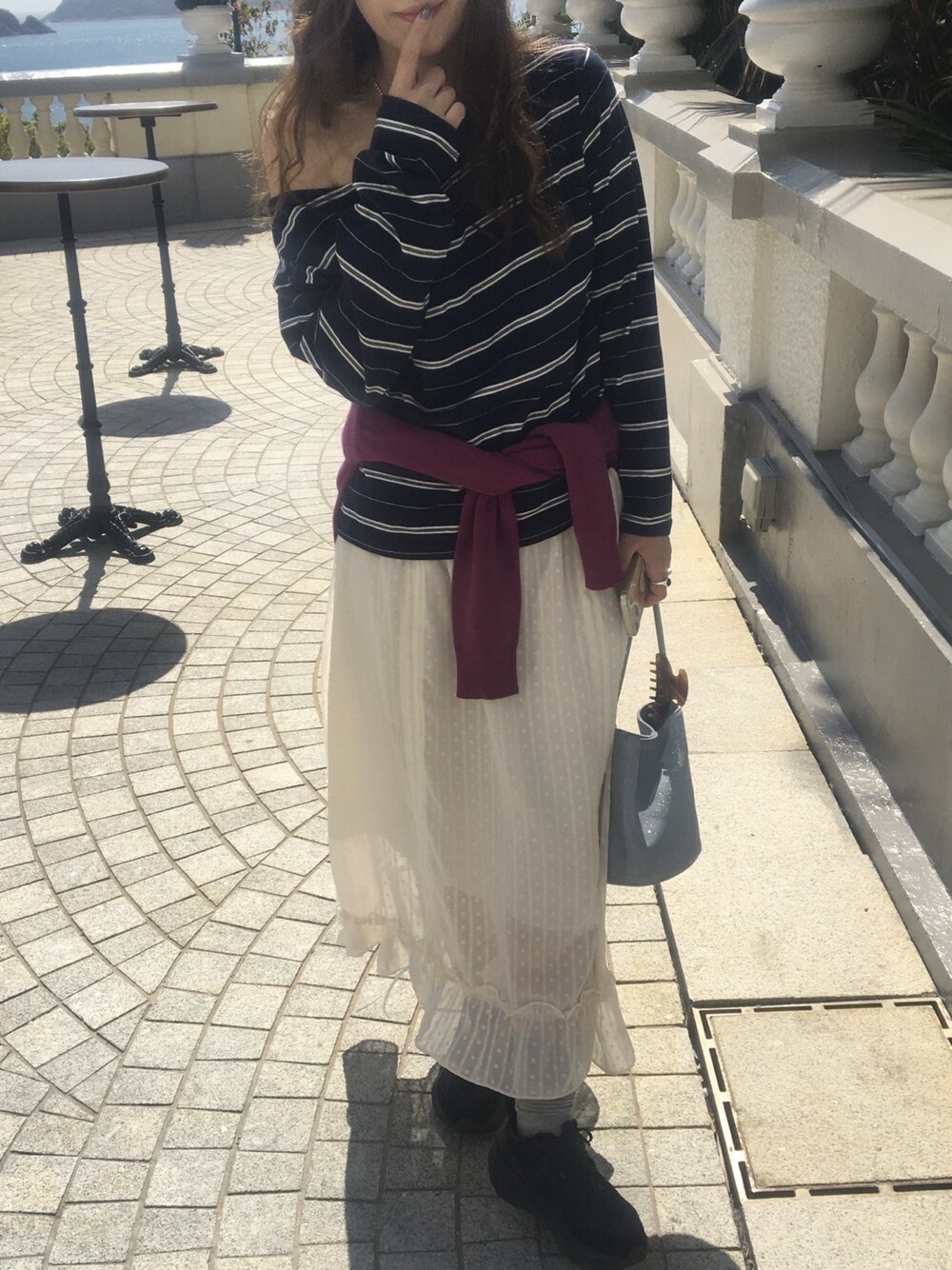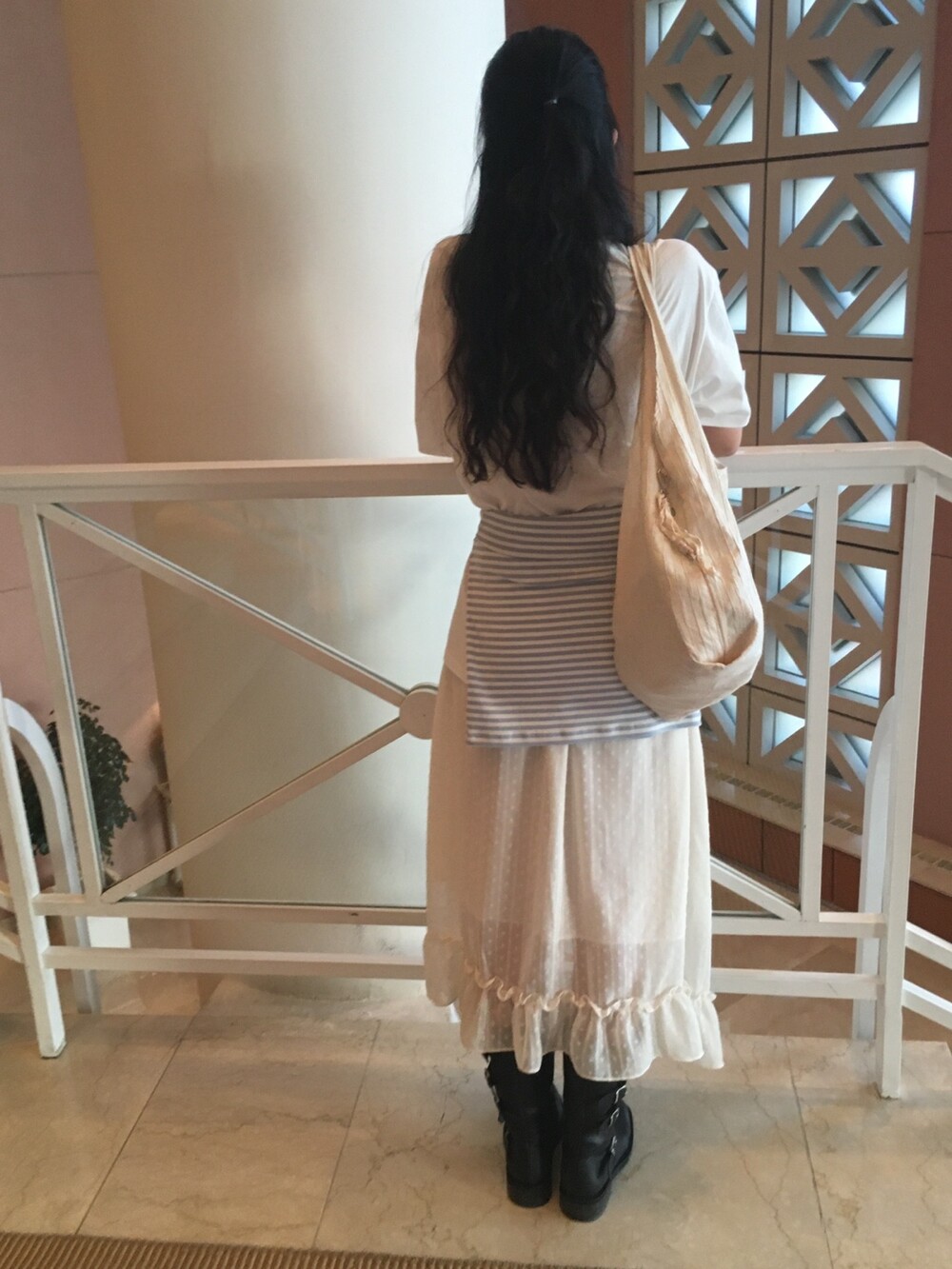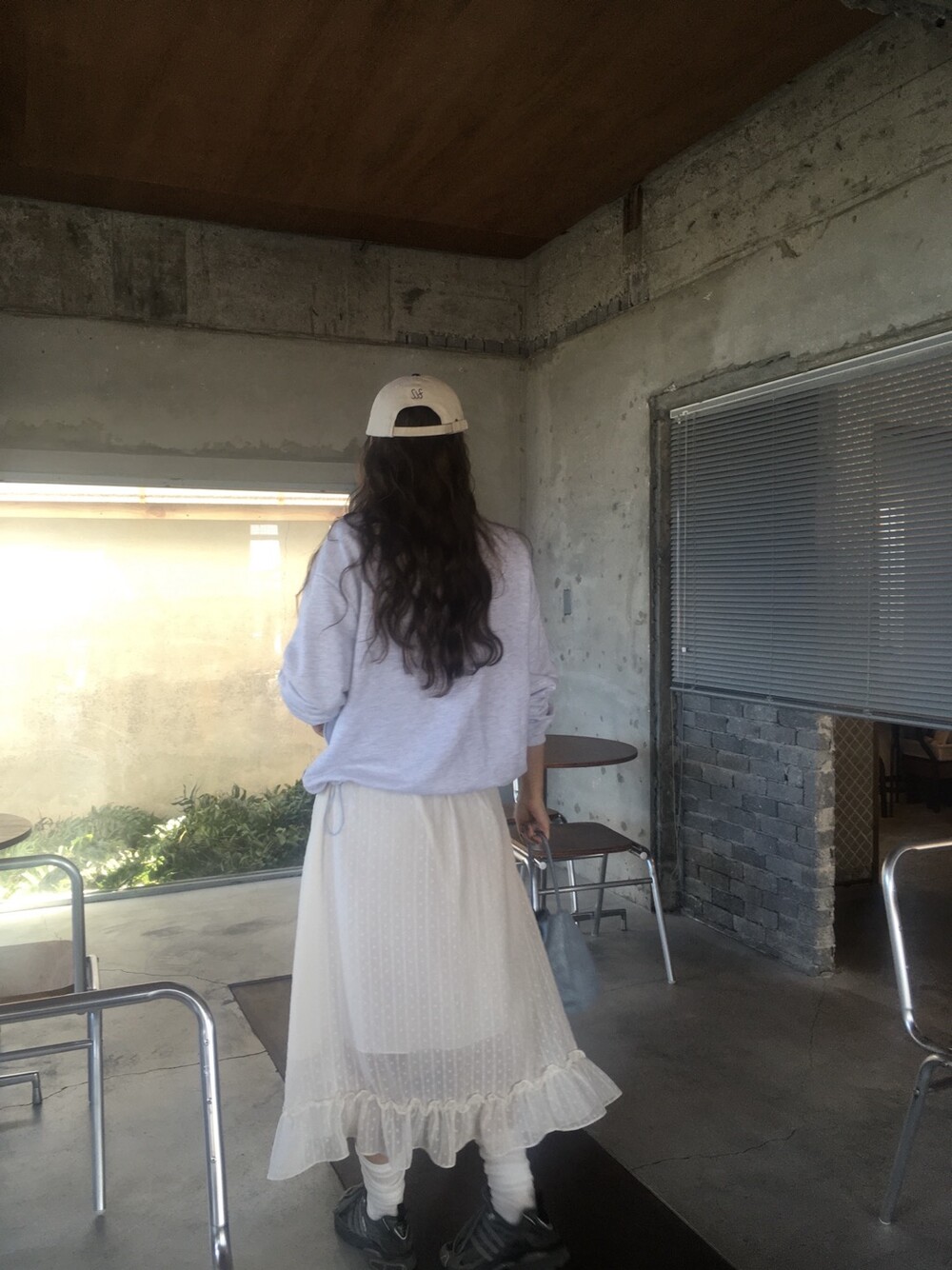 밋밋할 수 있는 아이보리 스커트에 쉬폰 소재로 은은한 고급스러움을 더해주고, 입체감이 느껴진답니다.