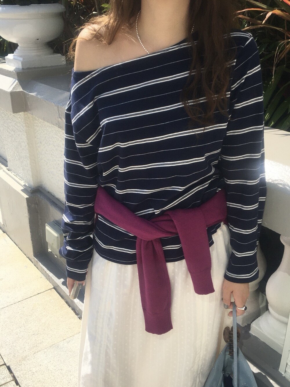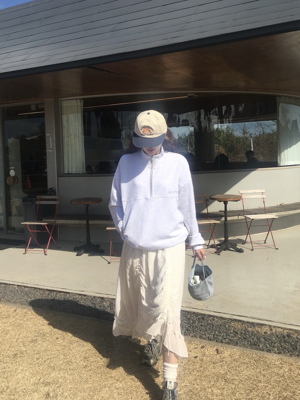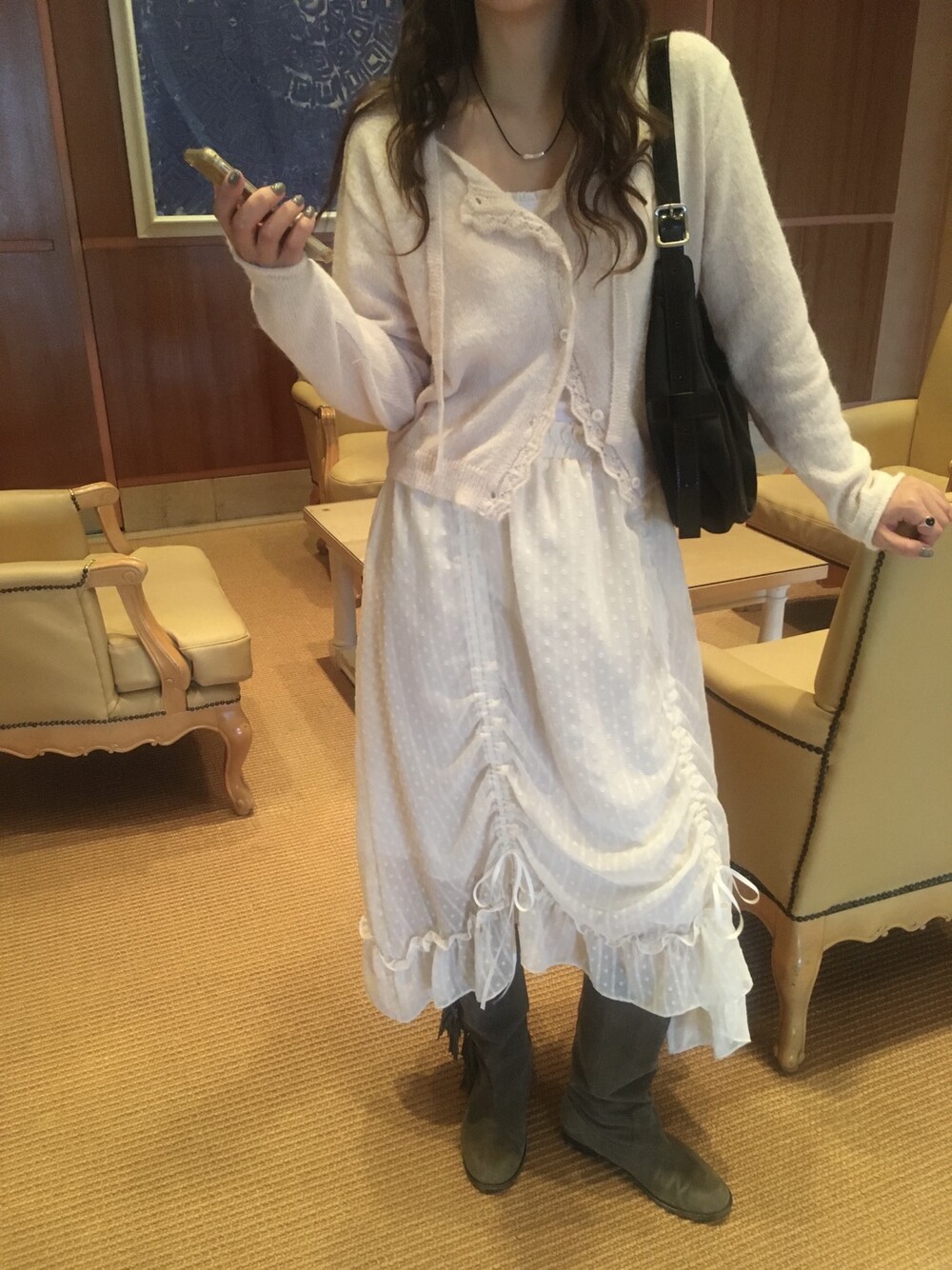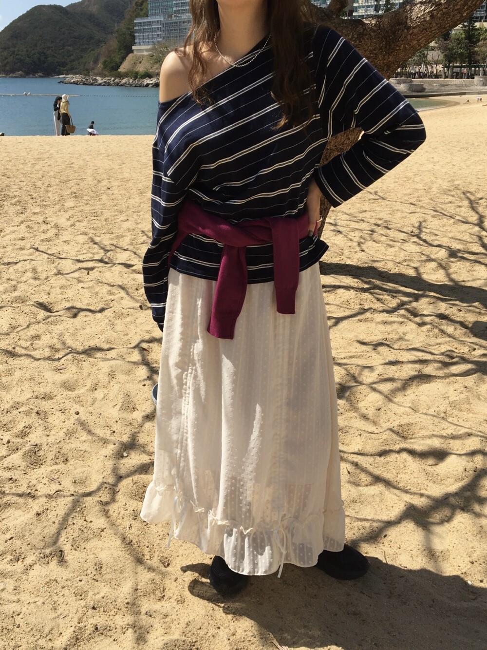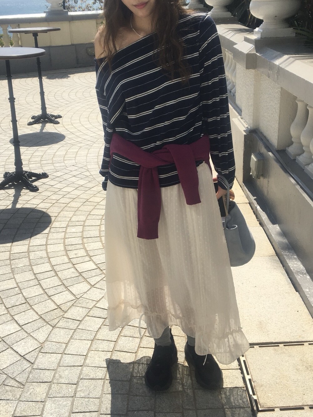 밋밋할 수 있는 아이보리 스커트에 쉬폰 소재로 은은한 고급스러움을 더해주고, 입체감이 느껴진답니다.