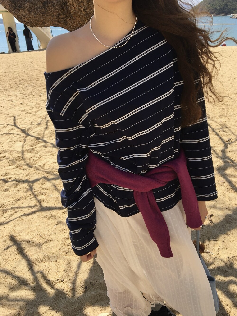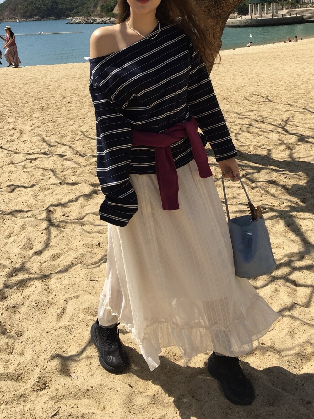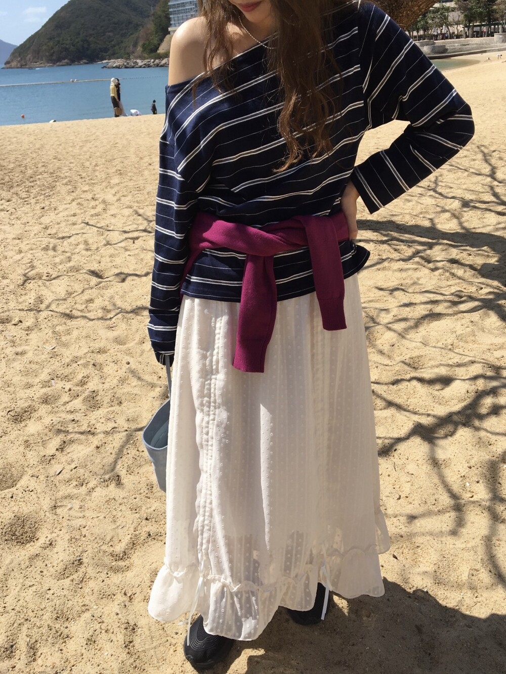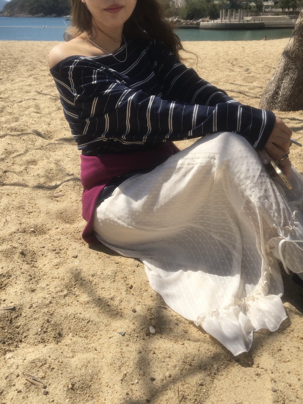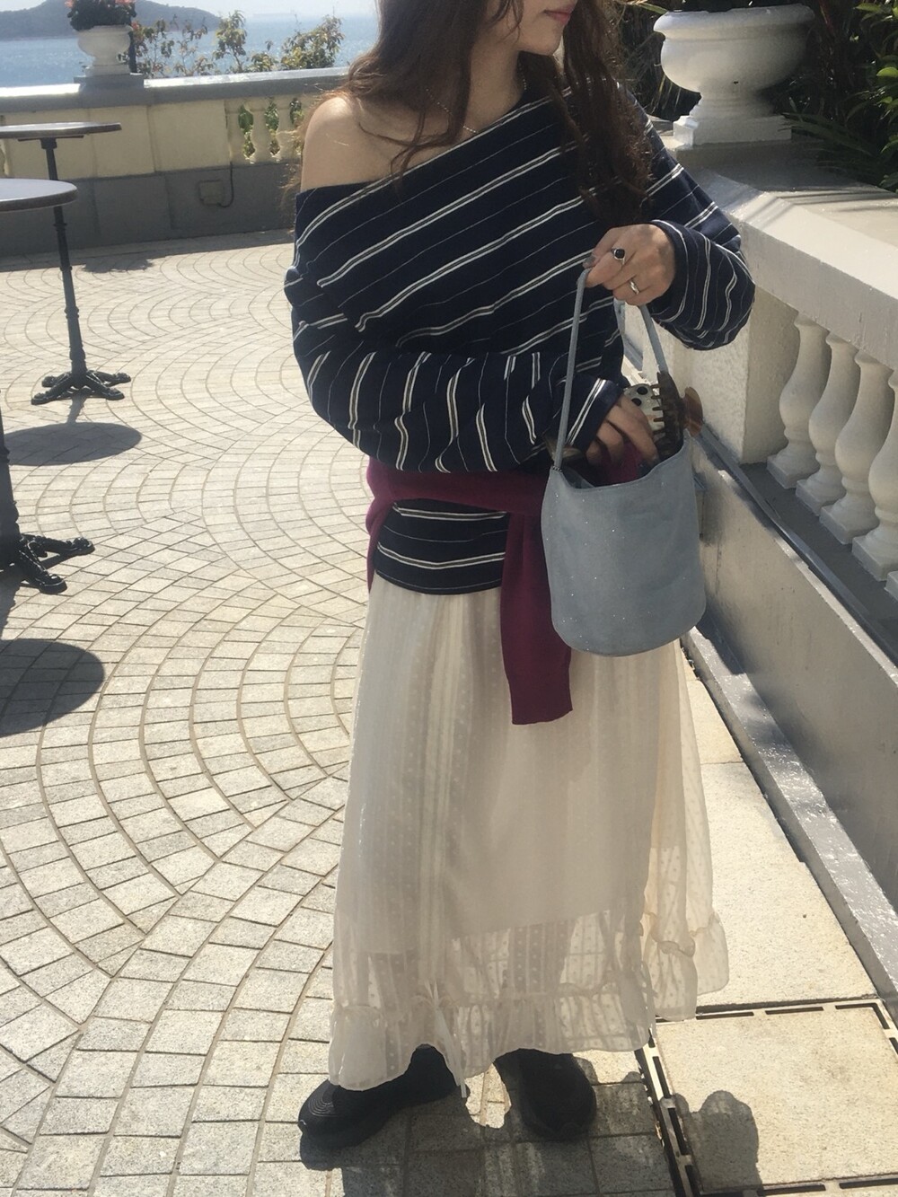 밋밋할 수 있는 아이보리 스커트에 쉬폰 소재로 은은한 고급스러움을 더해주고, 입체감이 느껴진답니다.