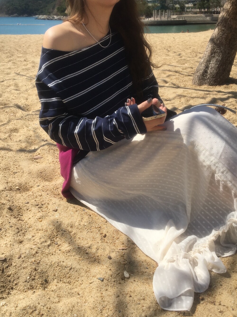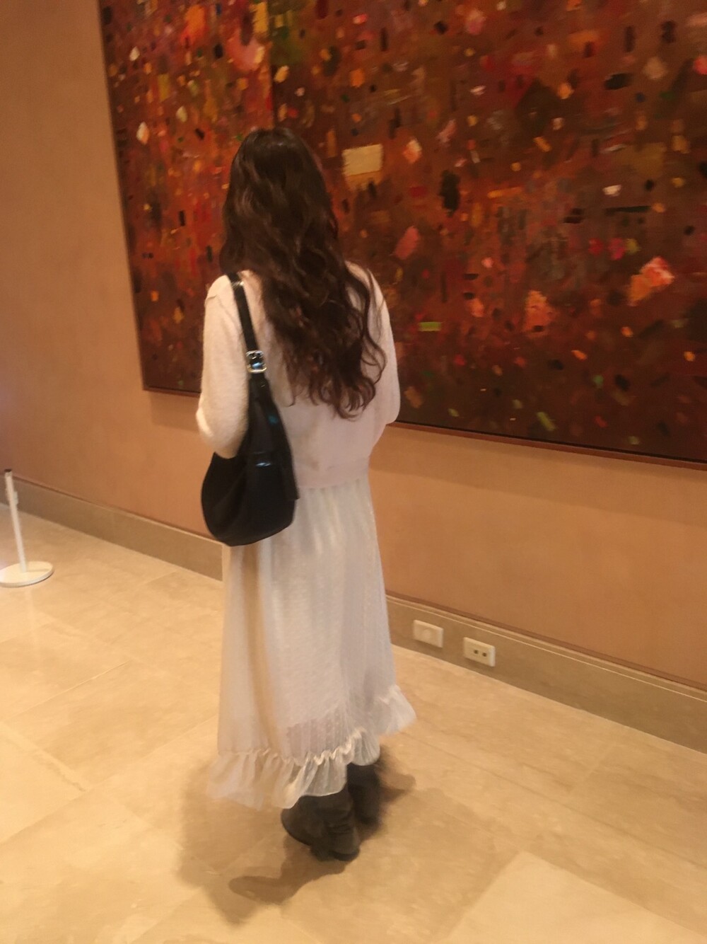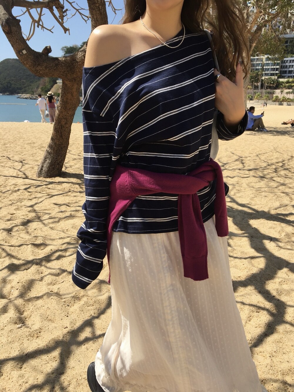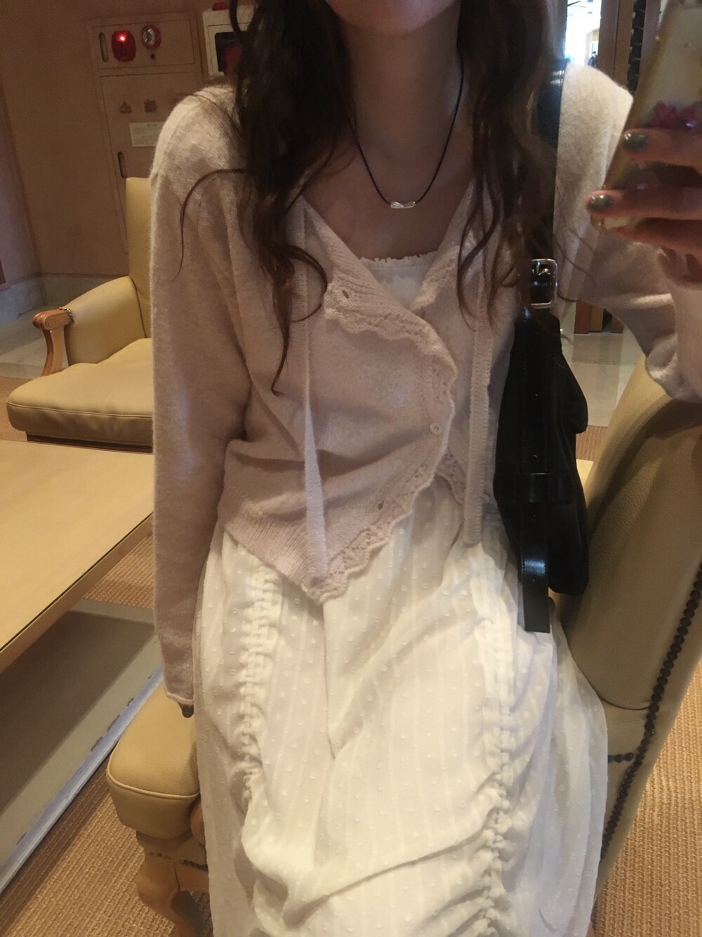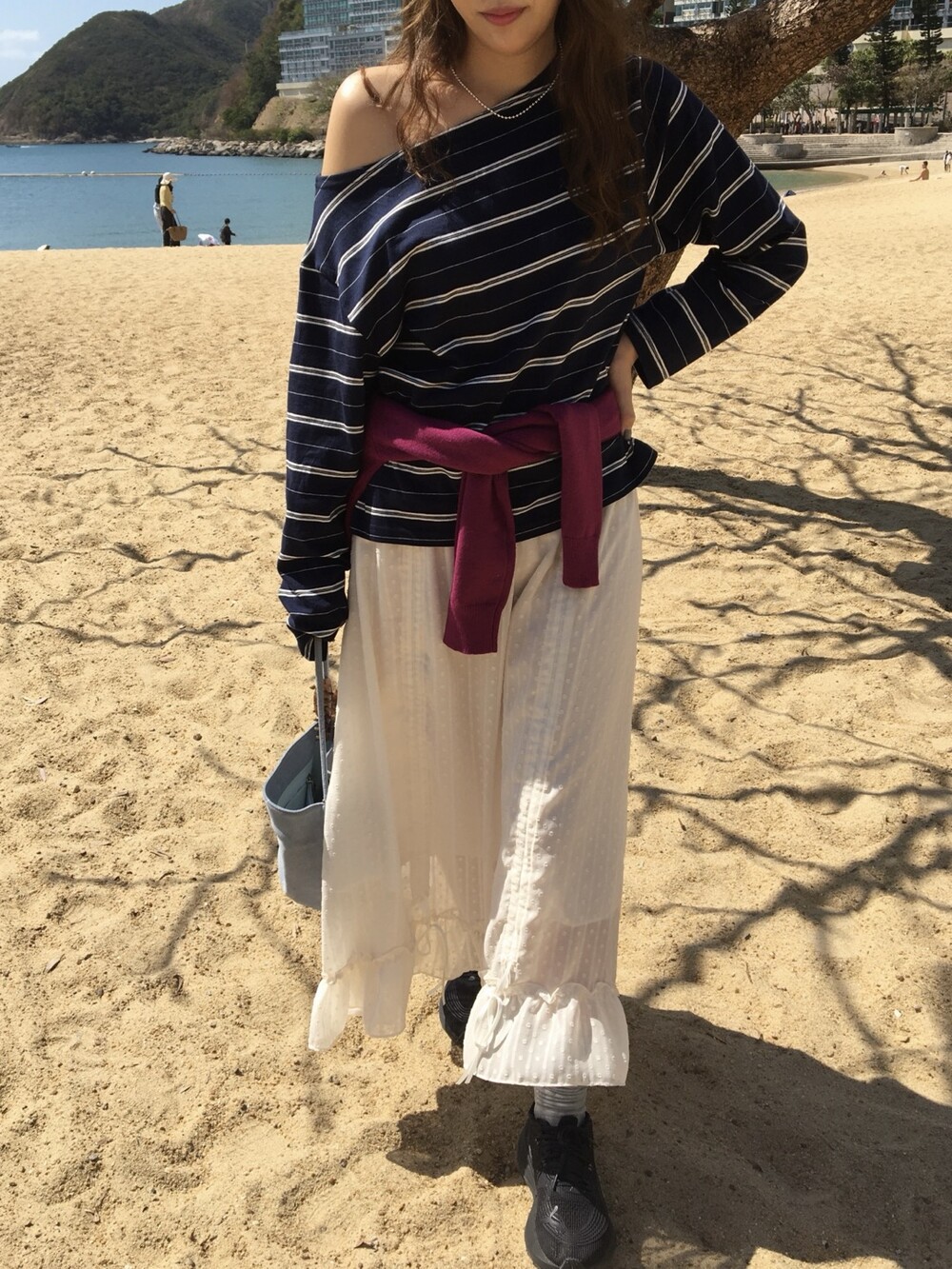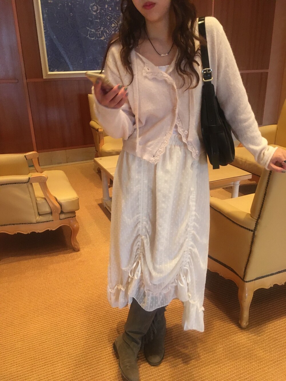 밋밋할 수 있는 아이보리 스커트에 쉬폰 소재로 은은한 고급스러움을 더해주고, 입체감이 느껴진답니다.