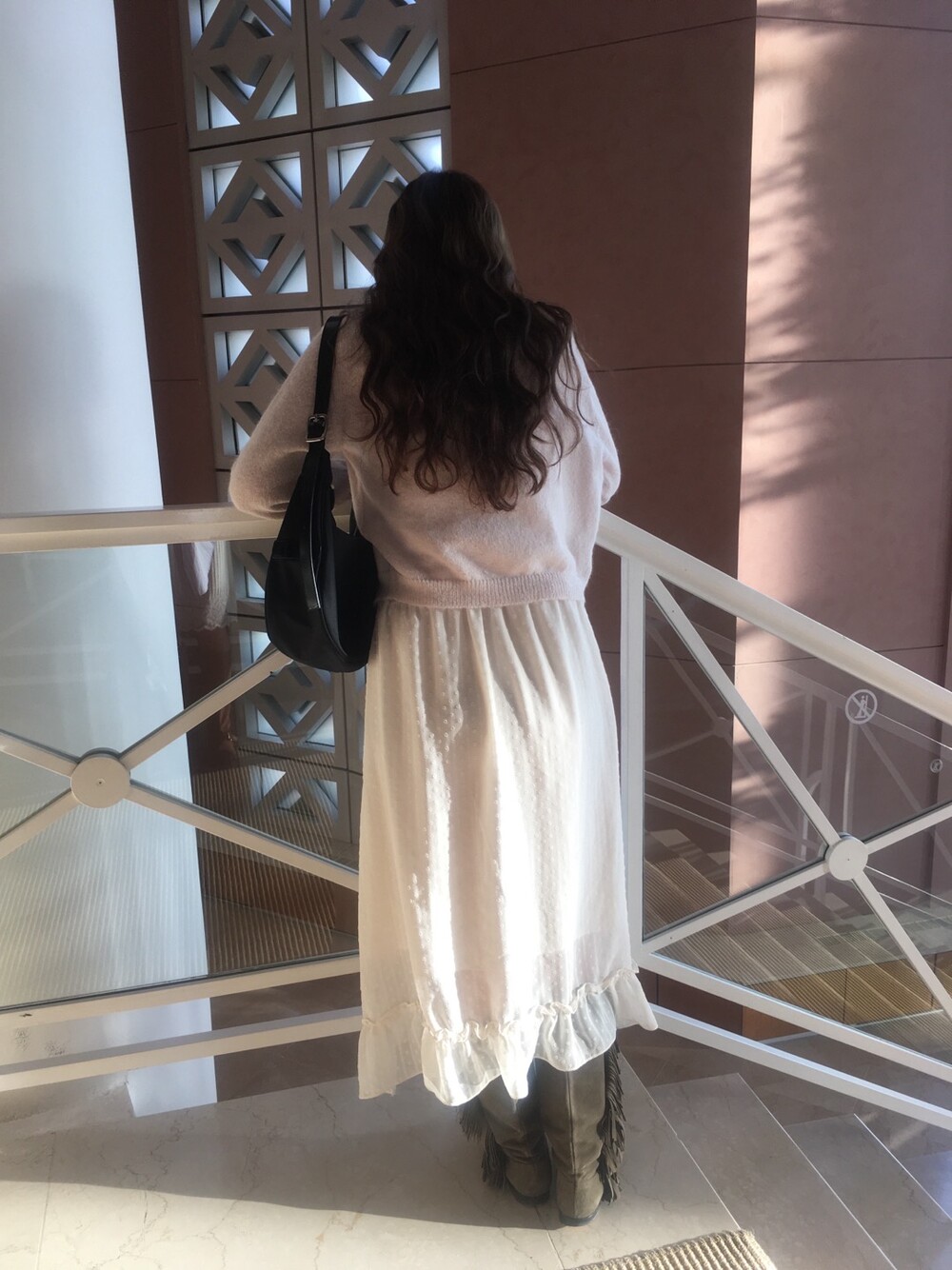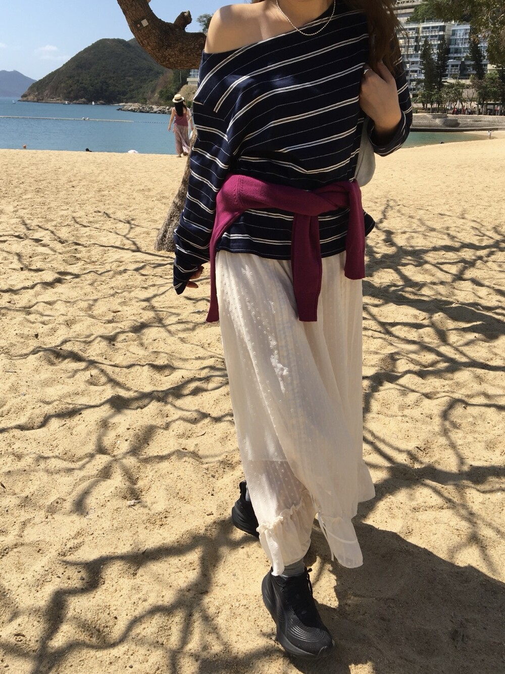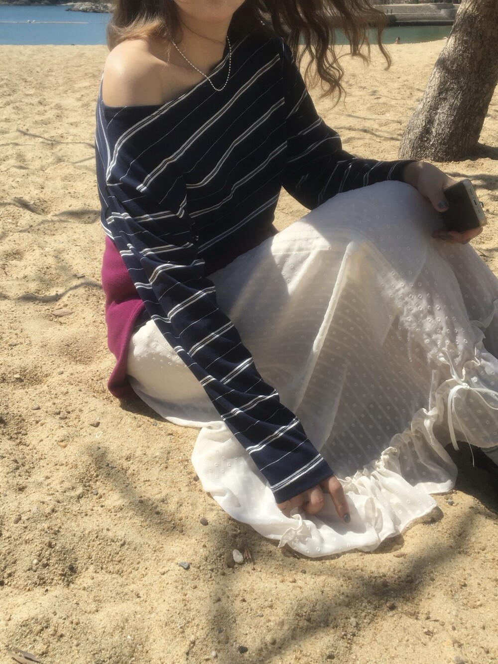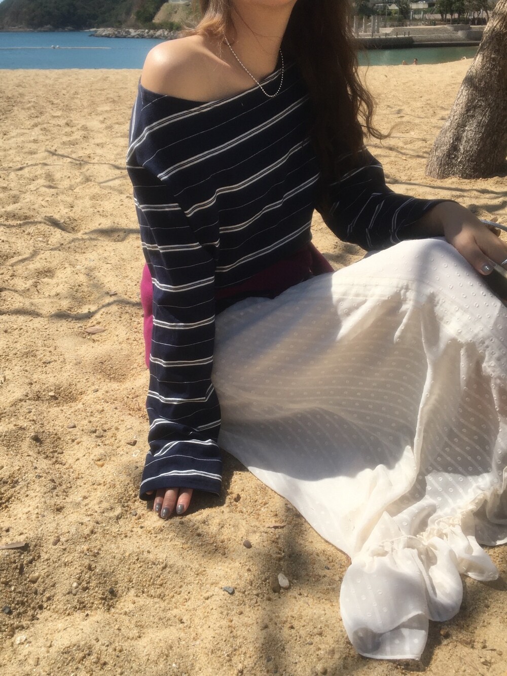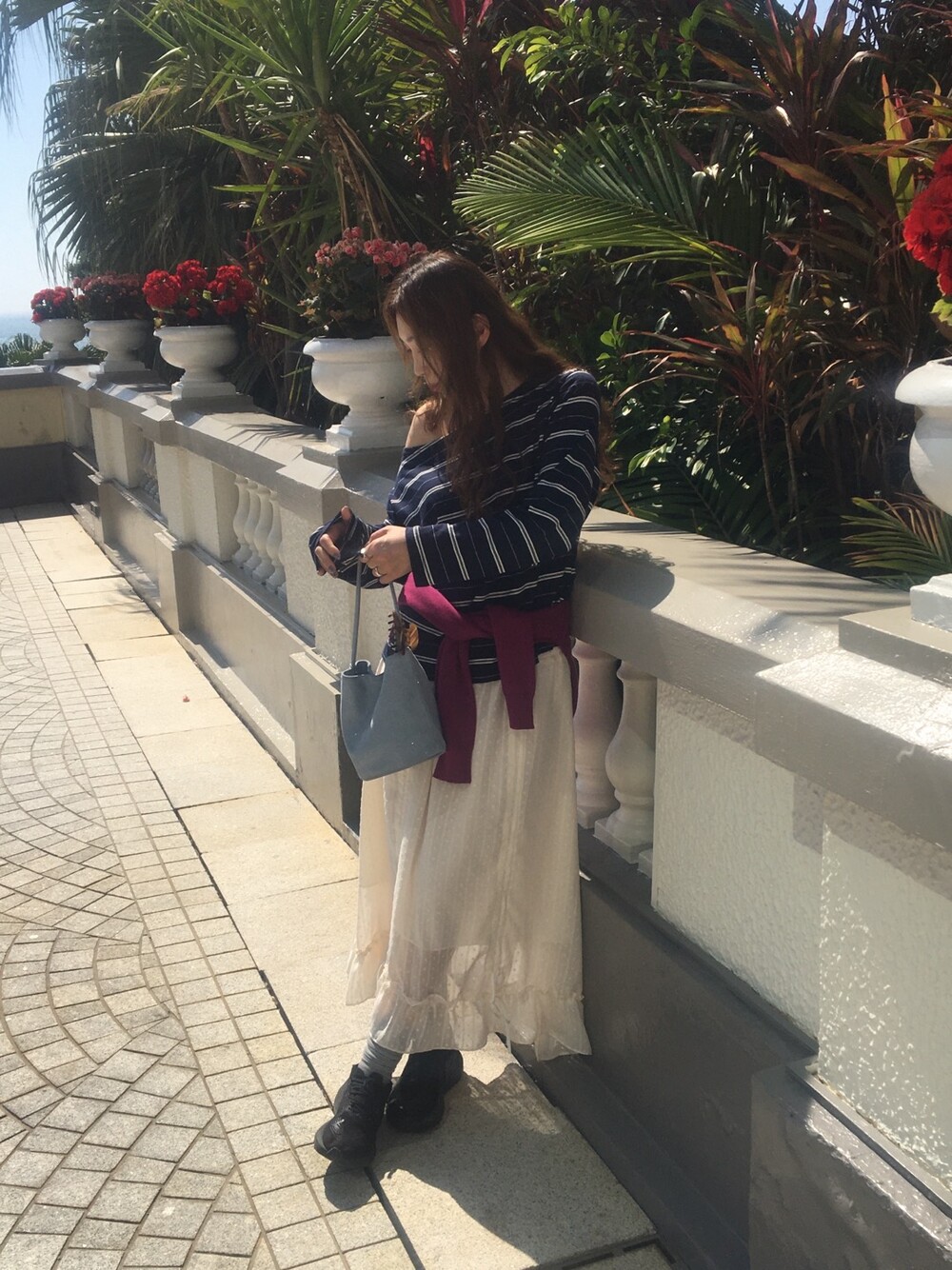 밋밋할 수 있는 아이보리 스커트에 쉬폰 소재로 은은한 고급스러움을 더해주고, 입체감이 느껴진답니다.