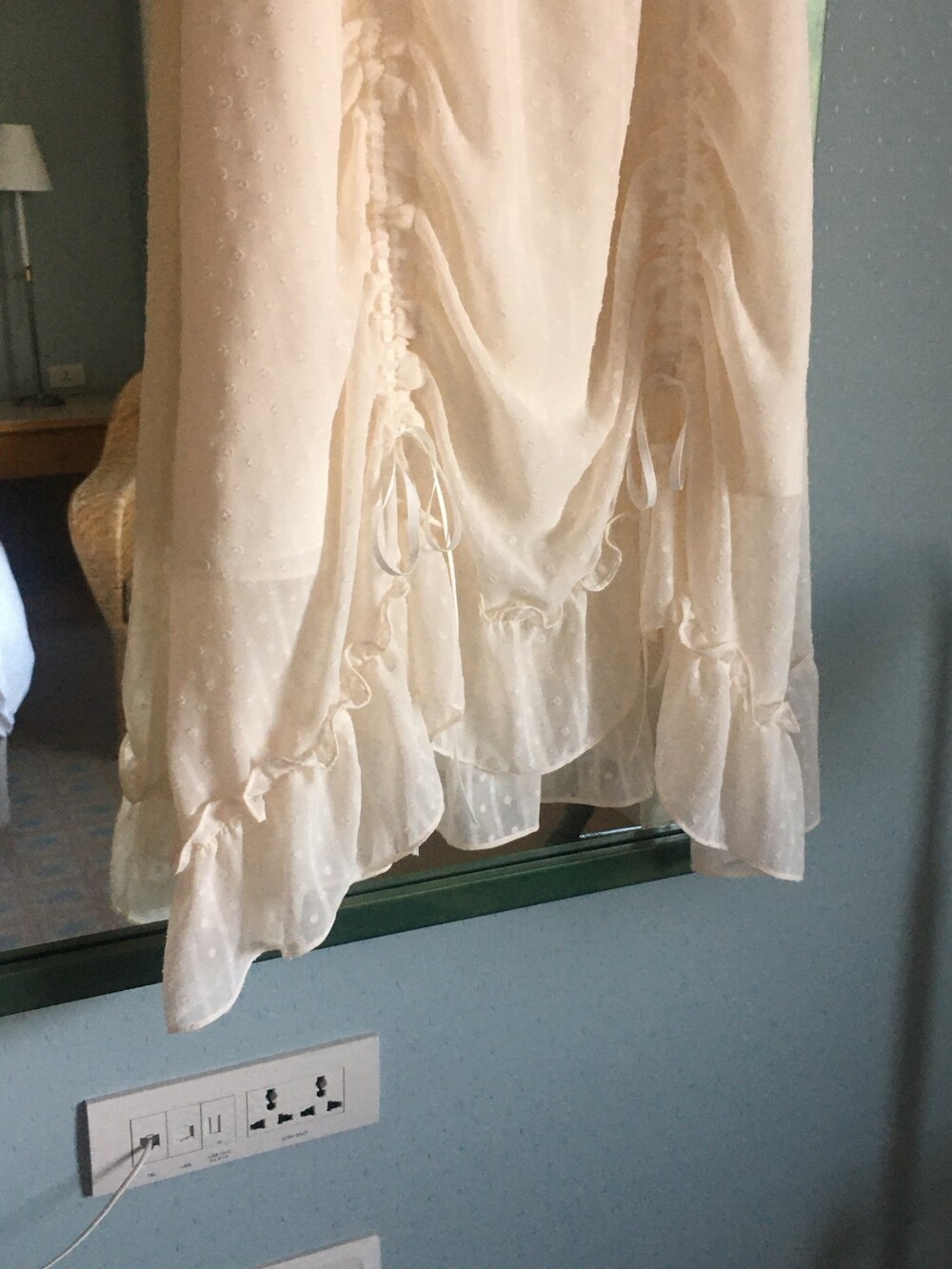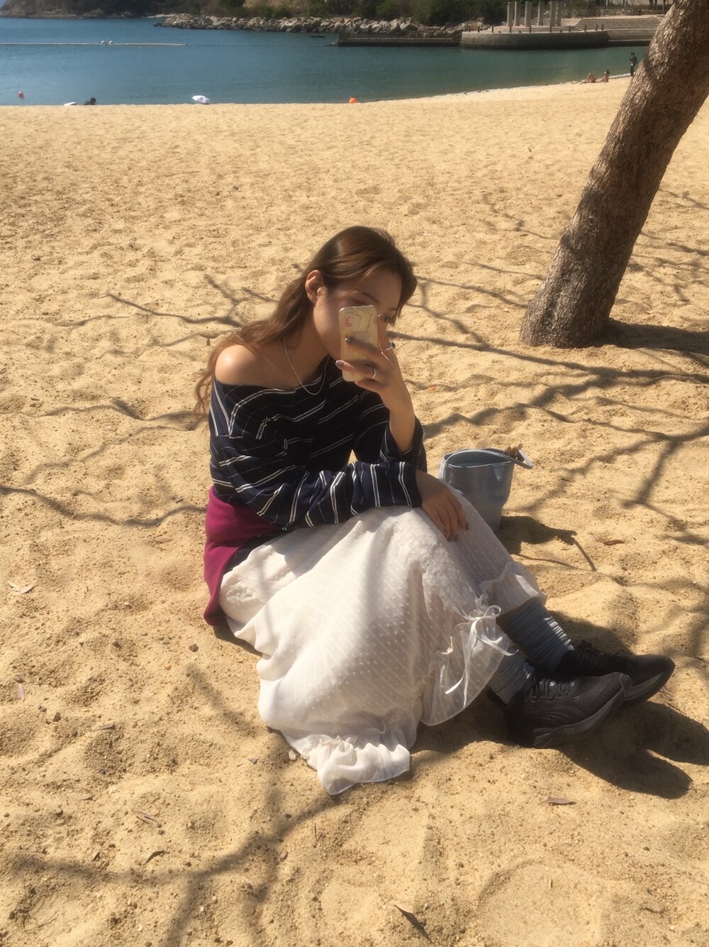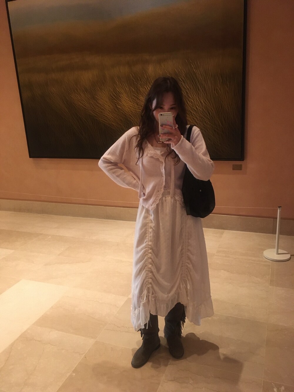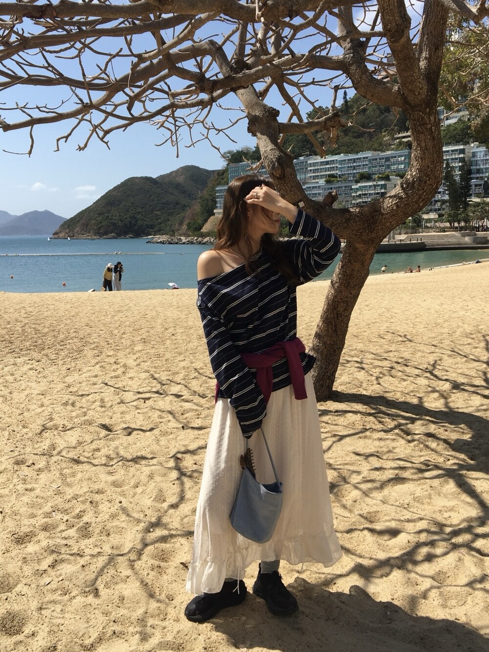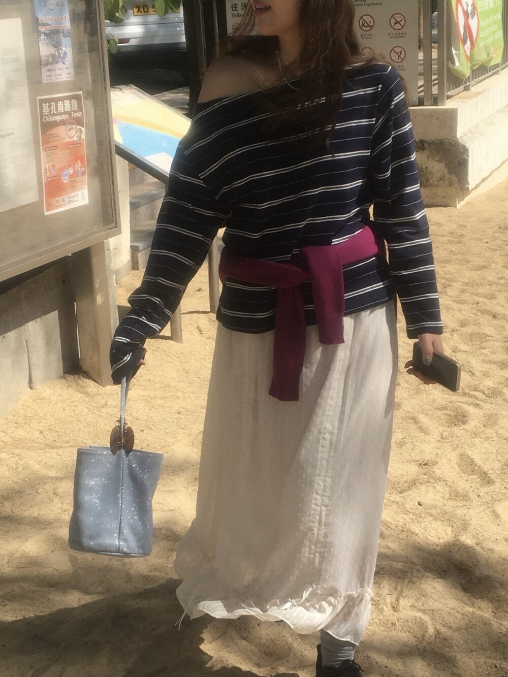밋밋할 수 있는 아이보리 스커트에 쉬폰 소재로 은은한 고급스러움을 더해주고, 입체감이 느껴진답니다.