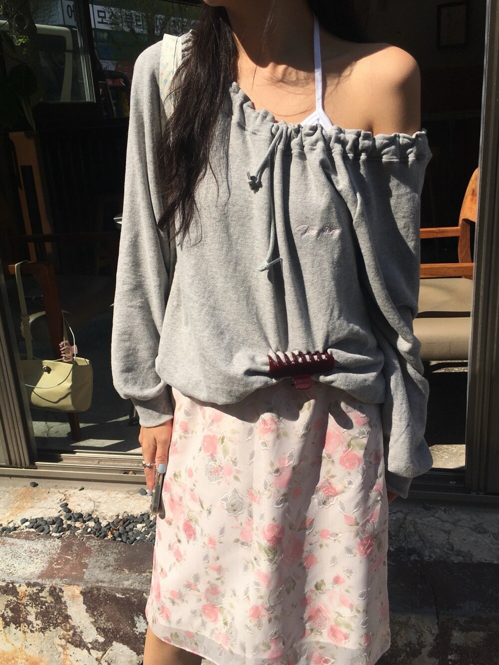 모델처럼 단독으로 여리하게 착용해도 예쁘지만, 데님 팬츠 위에 슬쩍 레이어드해서 발레코어나 코티지코어룩으로 연출해 보시는 것도 강력 추천드려요! 허리 밴딩과 스트랩 디테일로 하루 종일 입어도 편안함을 놓치지 않았고, 톤 다운된 핑크와 화이트의 조합이 얼굴빛까지 화사하게 밝혀준답니다!