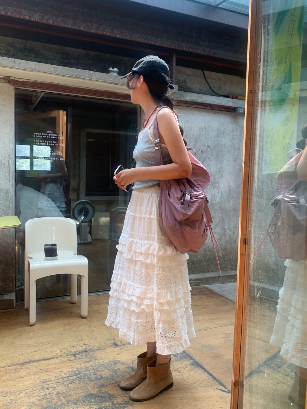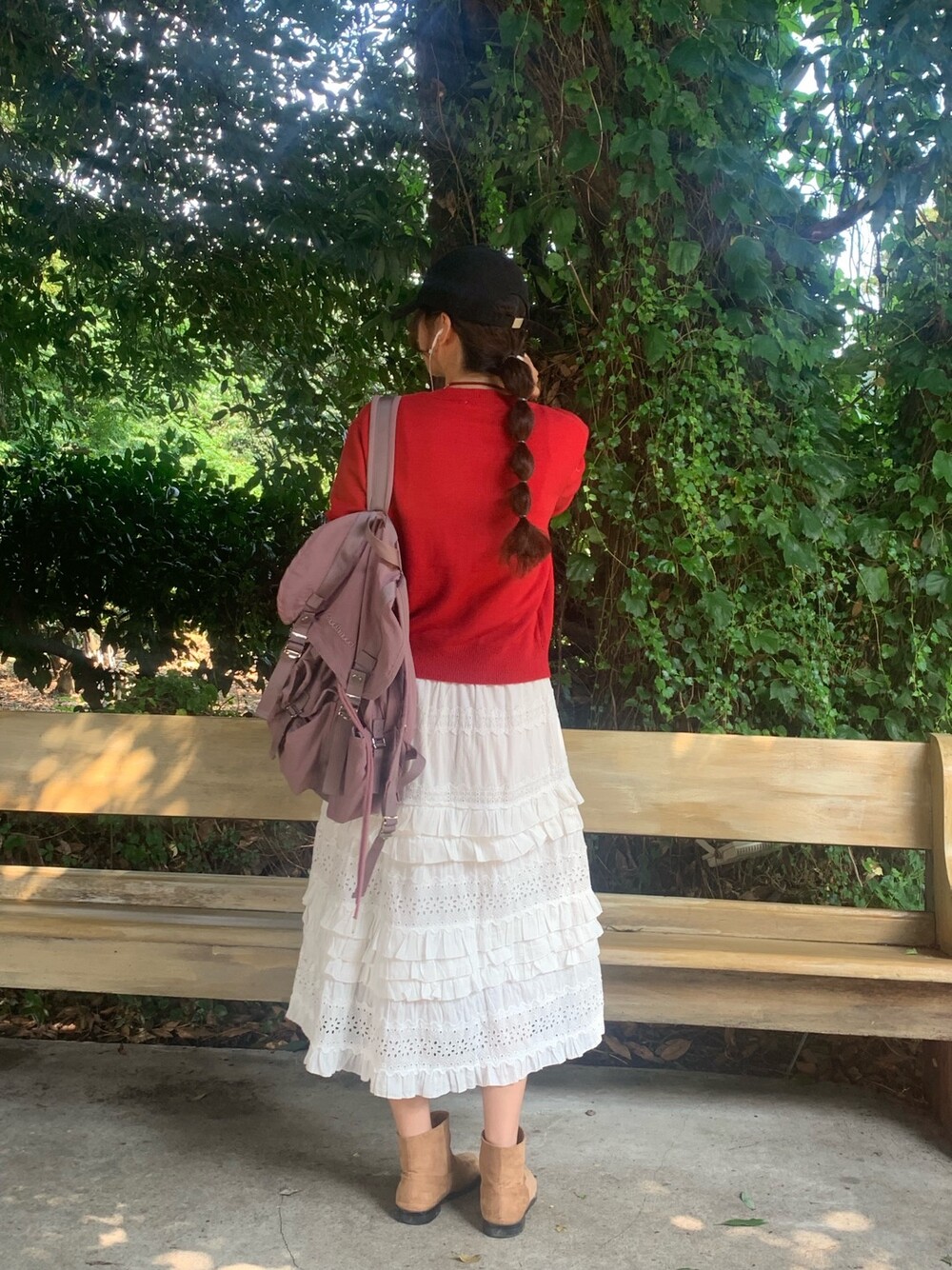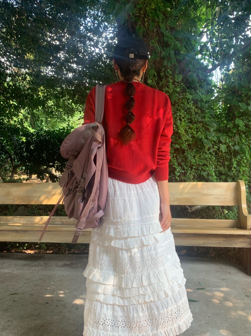 스커트만으로 드레스업! 되는 제품이라 가디건, 블라우스 등 심플한 아이템과 매치했을때