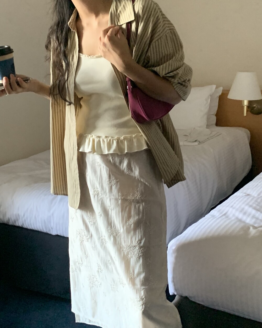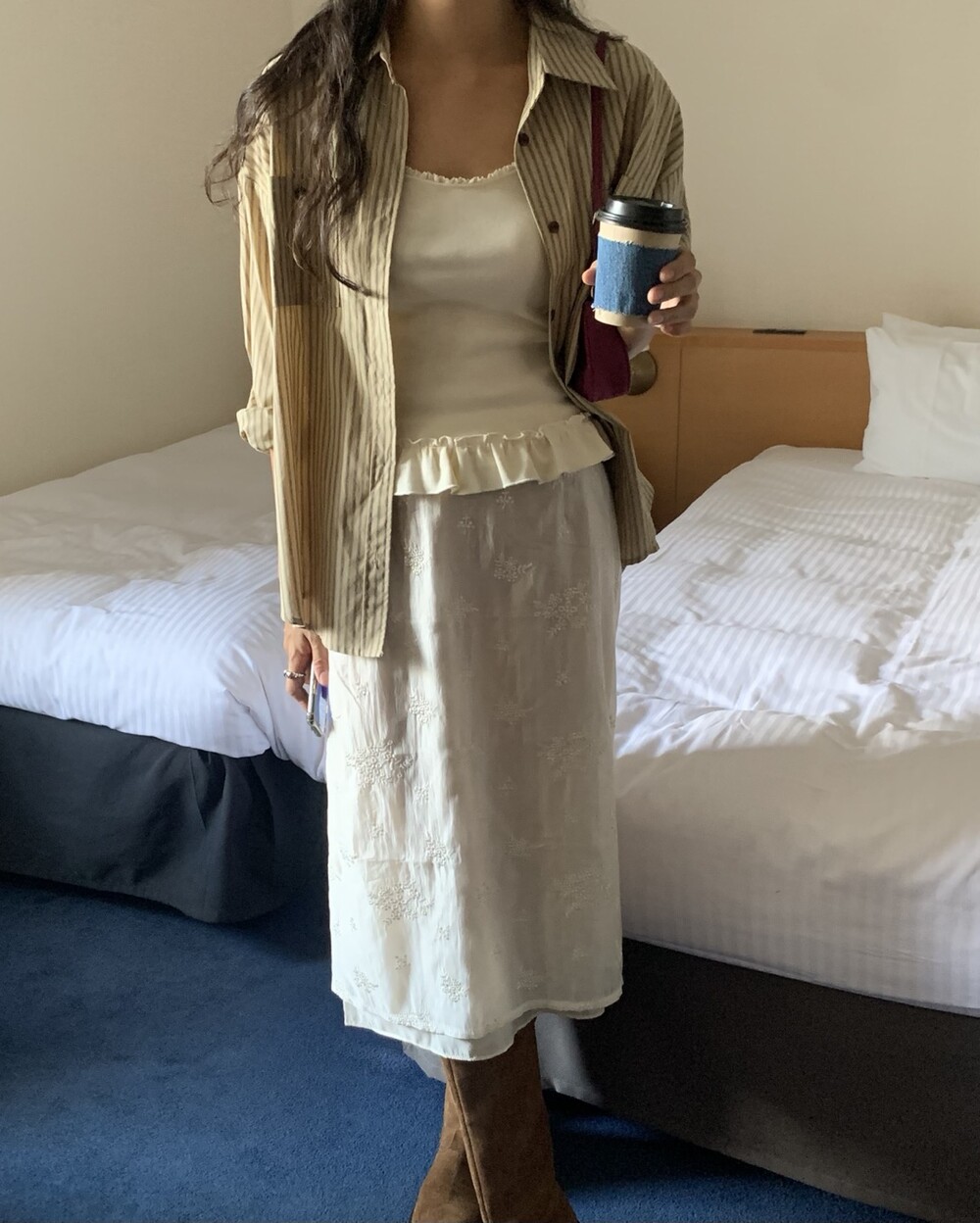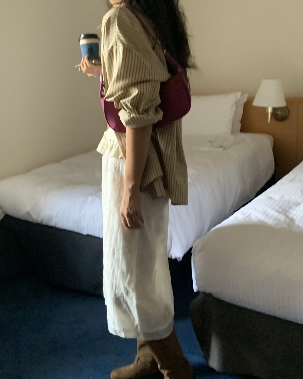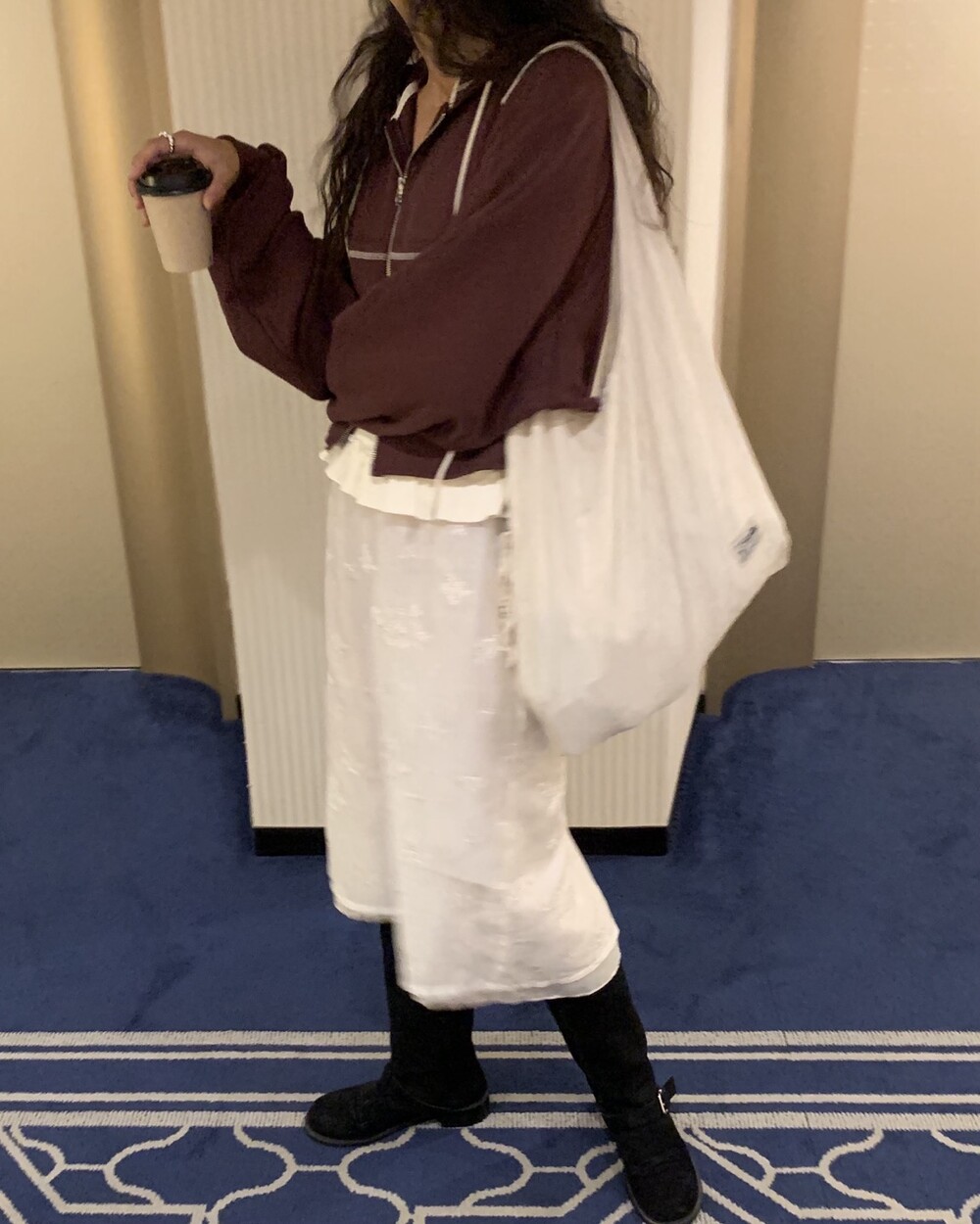 -아이보리 컬러는 특성상 비침이 있어서, 스킨톤 속옷 및 속바지 또는 타이즈 착용 권장드립니다.