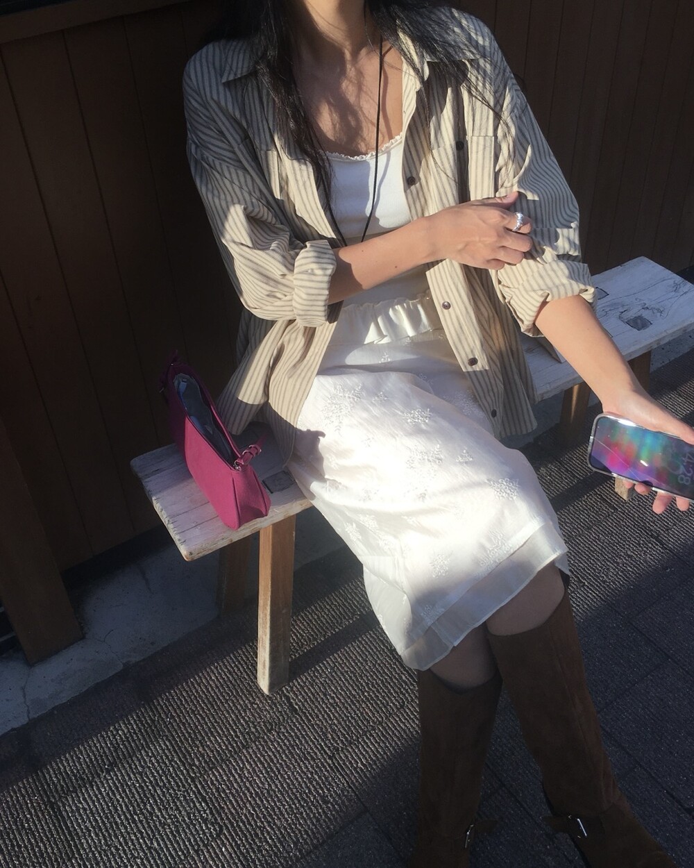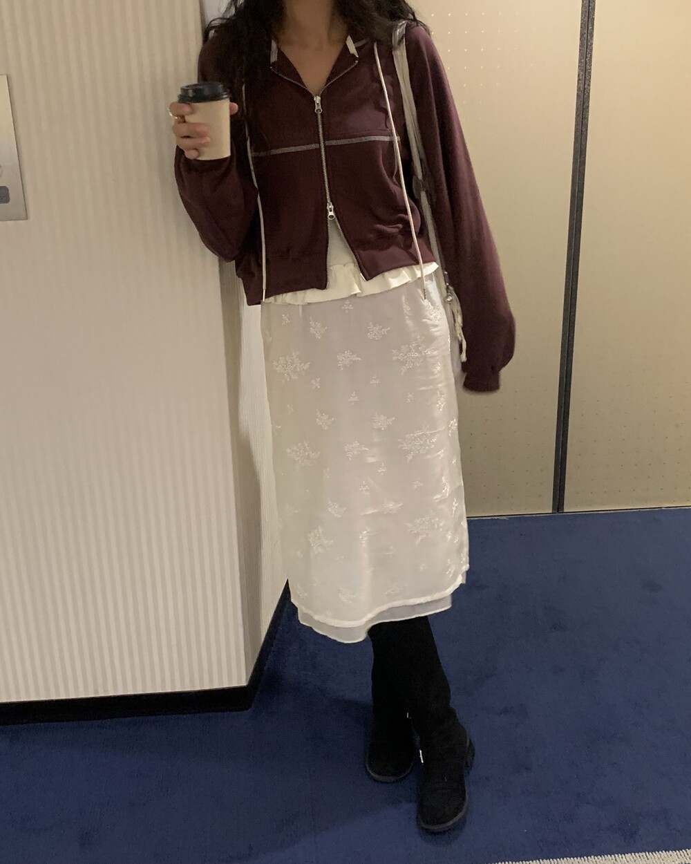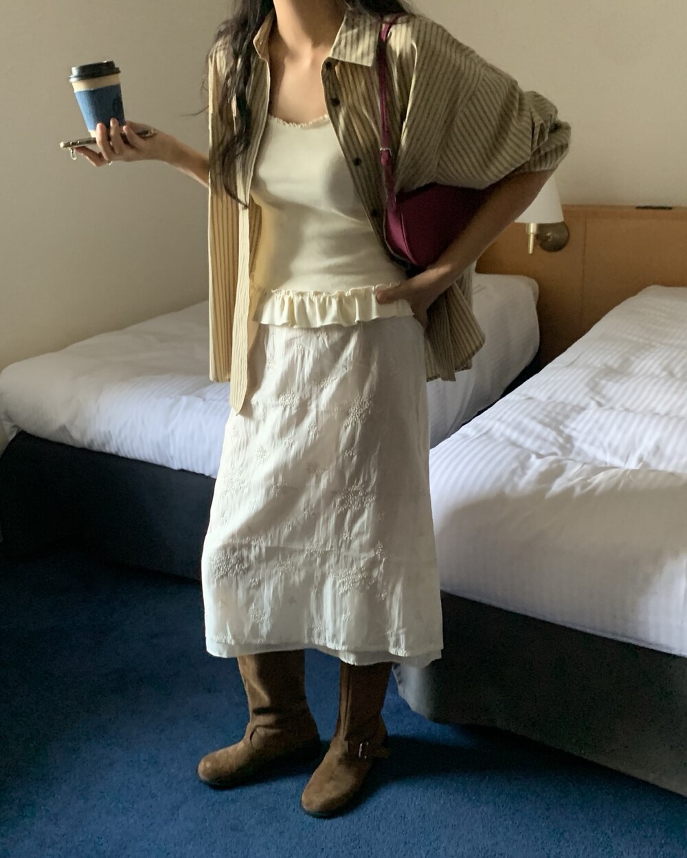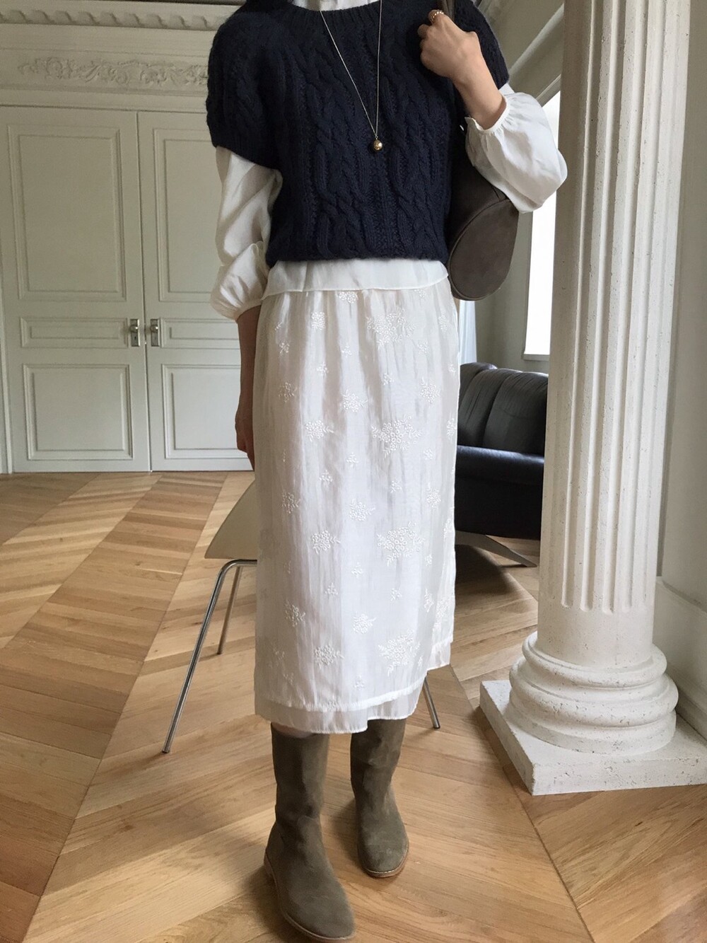 -아이보리 컬러는 특성상 비침이 있어서, 스킨톤 속옷 및 속바지 또는 타이즈 착용 권장드립니다.