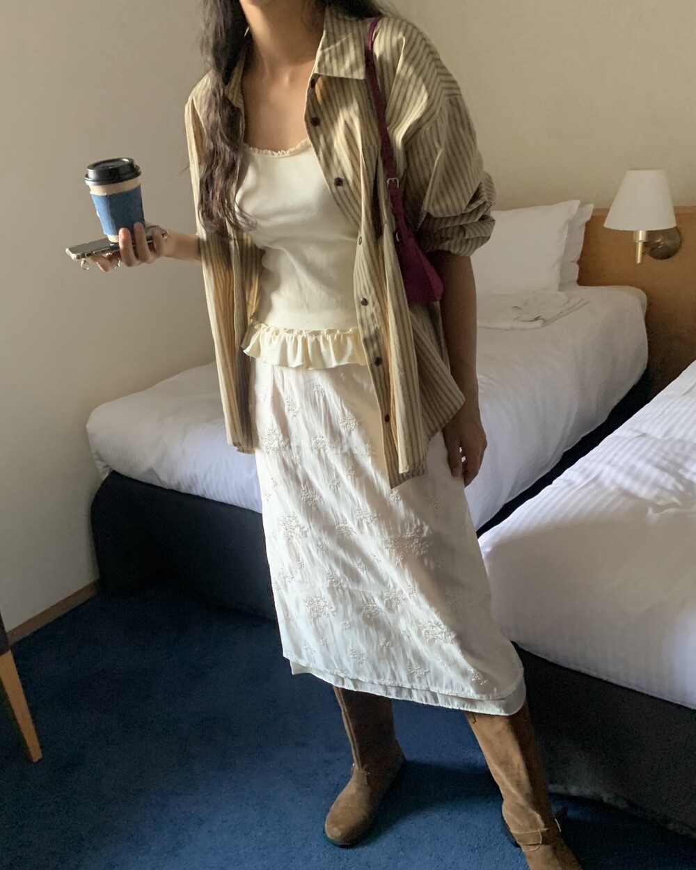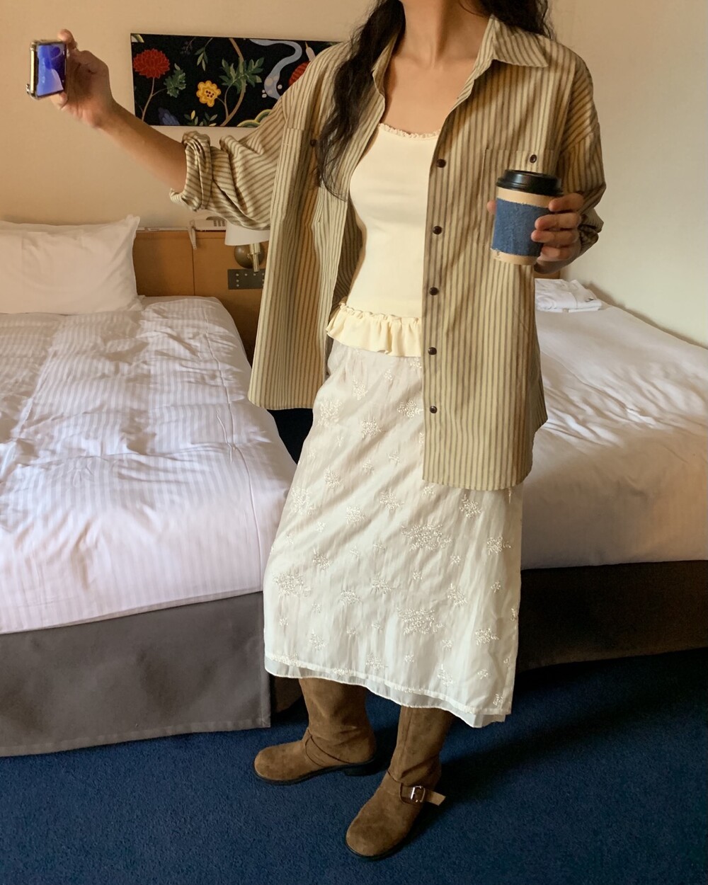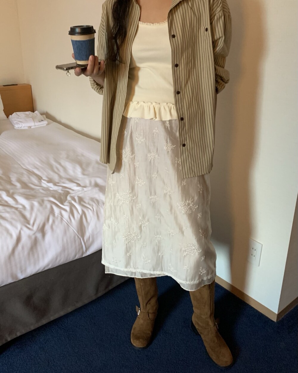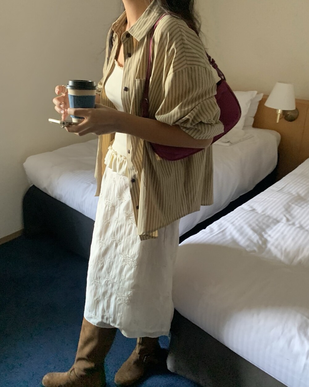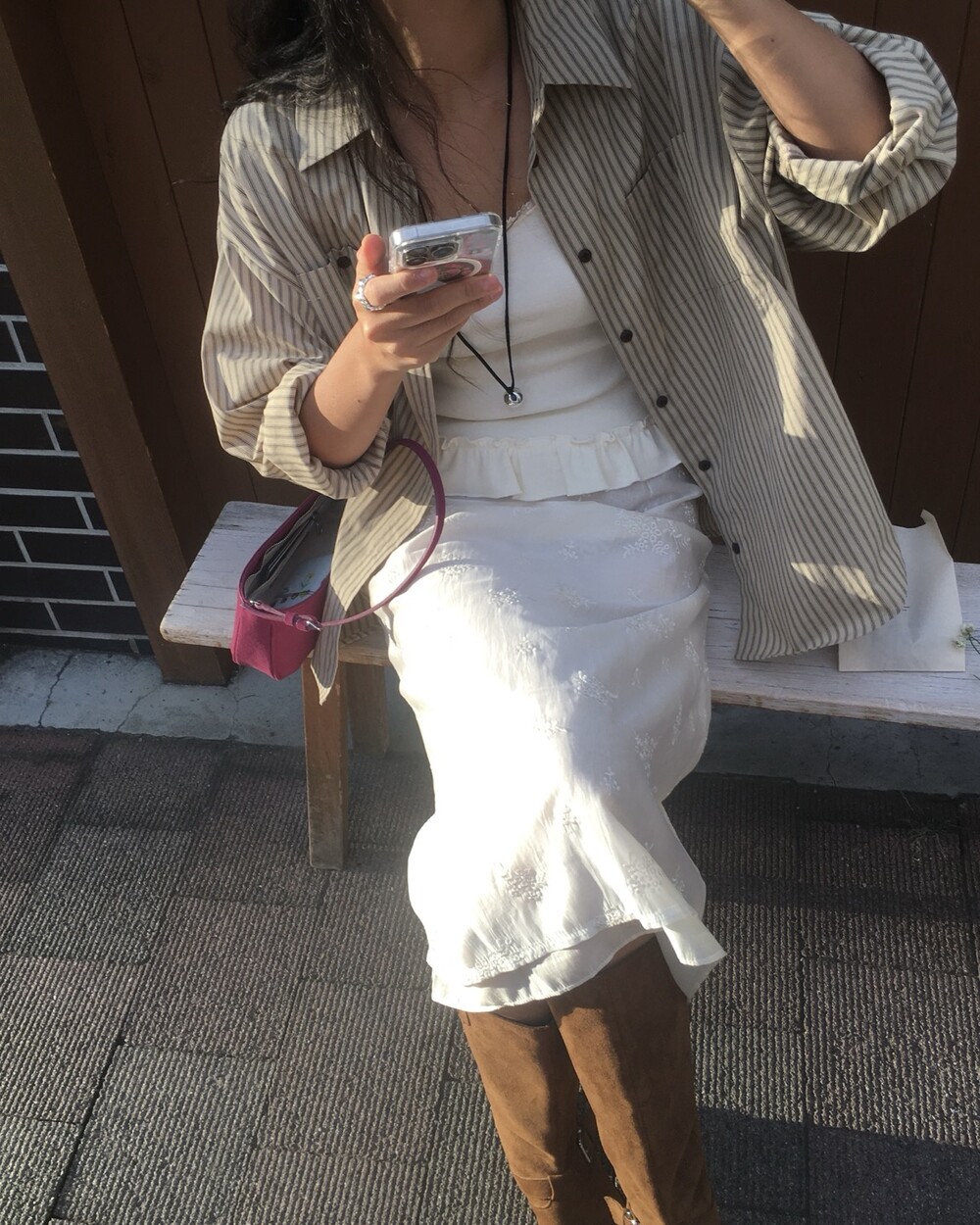 -아이보리 컬러는 특성상 비침이 있어서, 스킨톤 속옷 및 속바지 또는 타이즈 착용 권장드립니다.