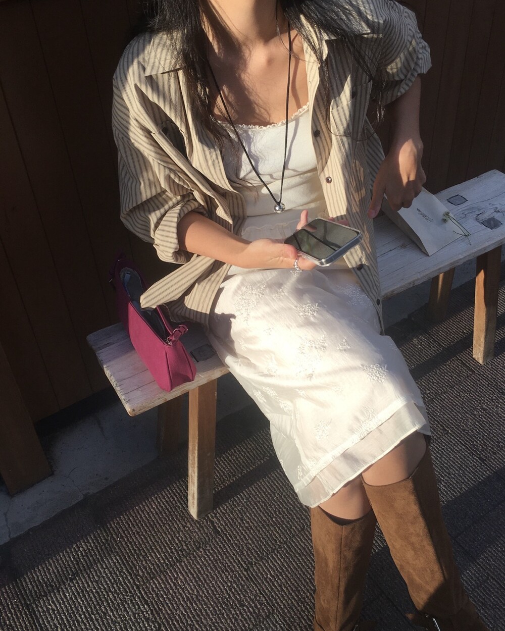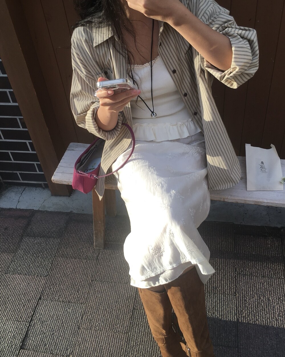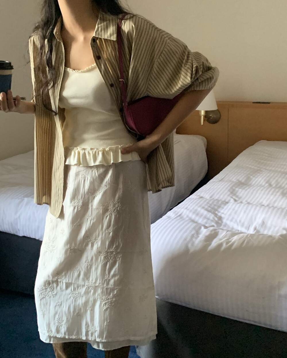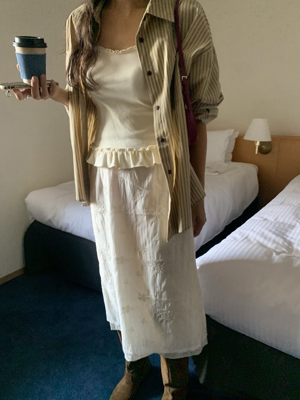 -아이보리 컬러는 특성상 비침이 있어서, 스킨톤 속옷 및 속바지 또는 타이즈 착용 권장드립니다.